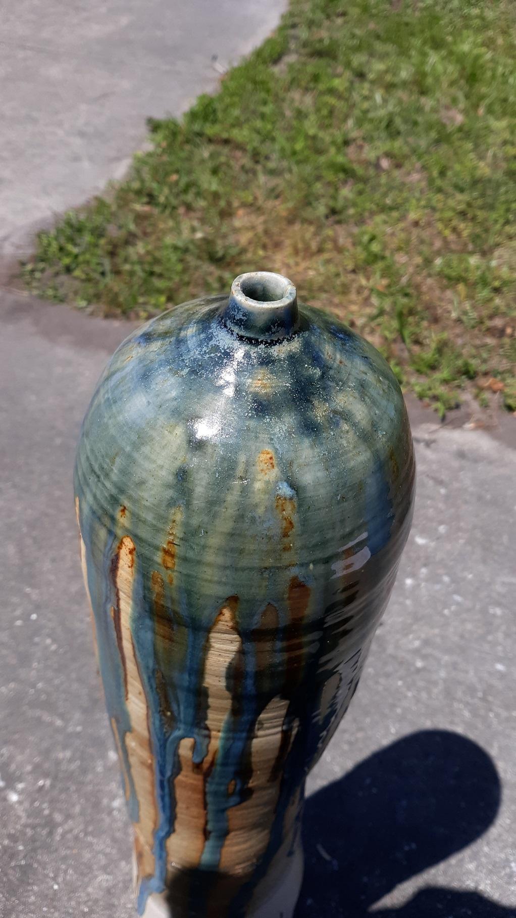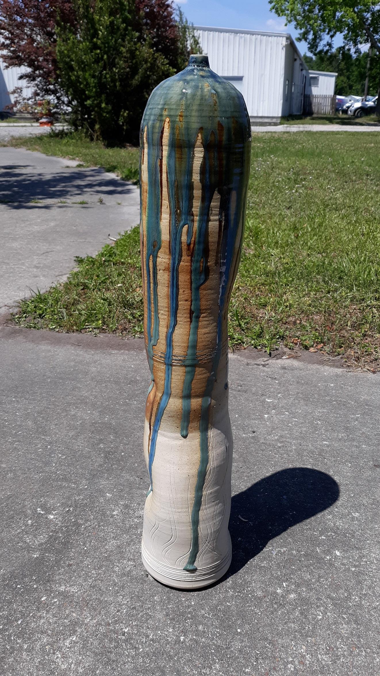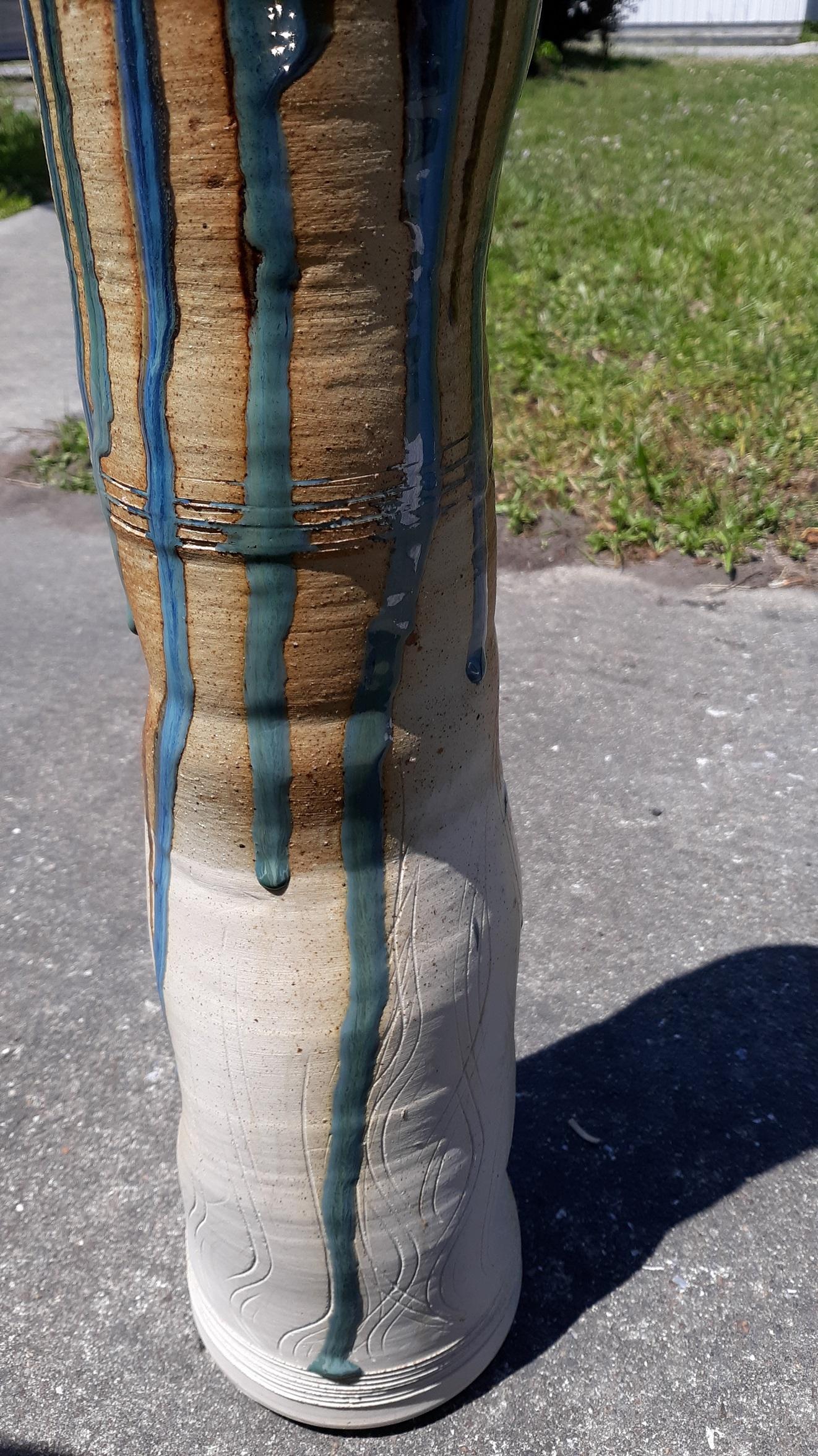 beautiful floor pottery vase great glazing signed on the bottom Gufford 1999 no damage 27″ tall see pics