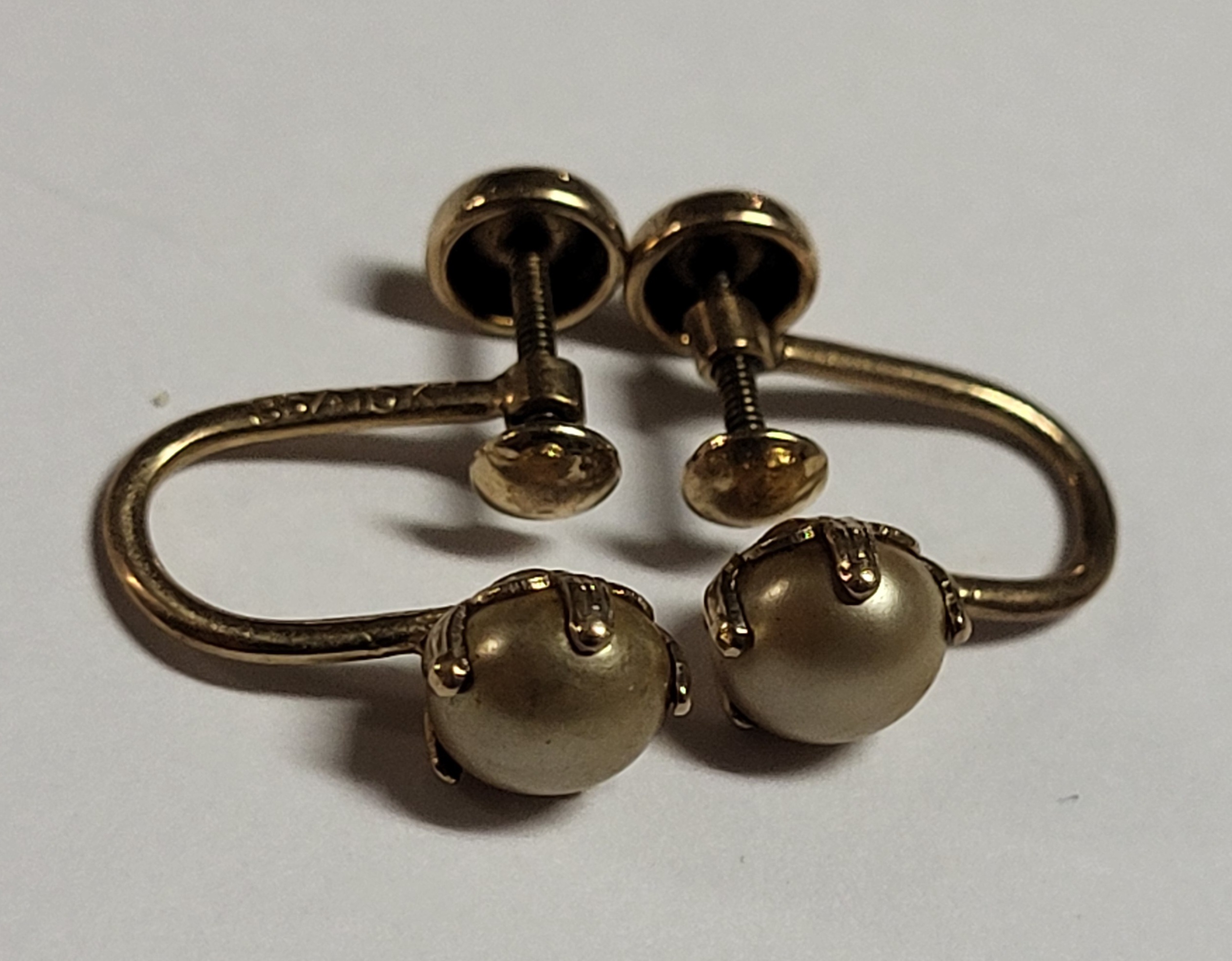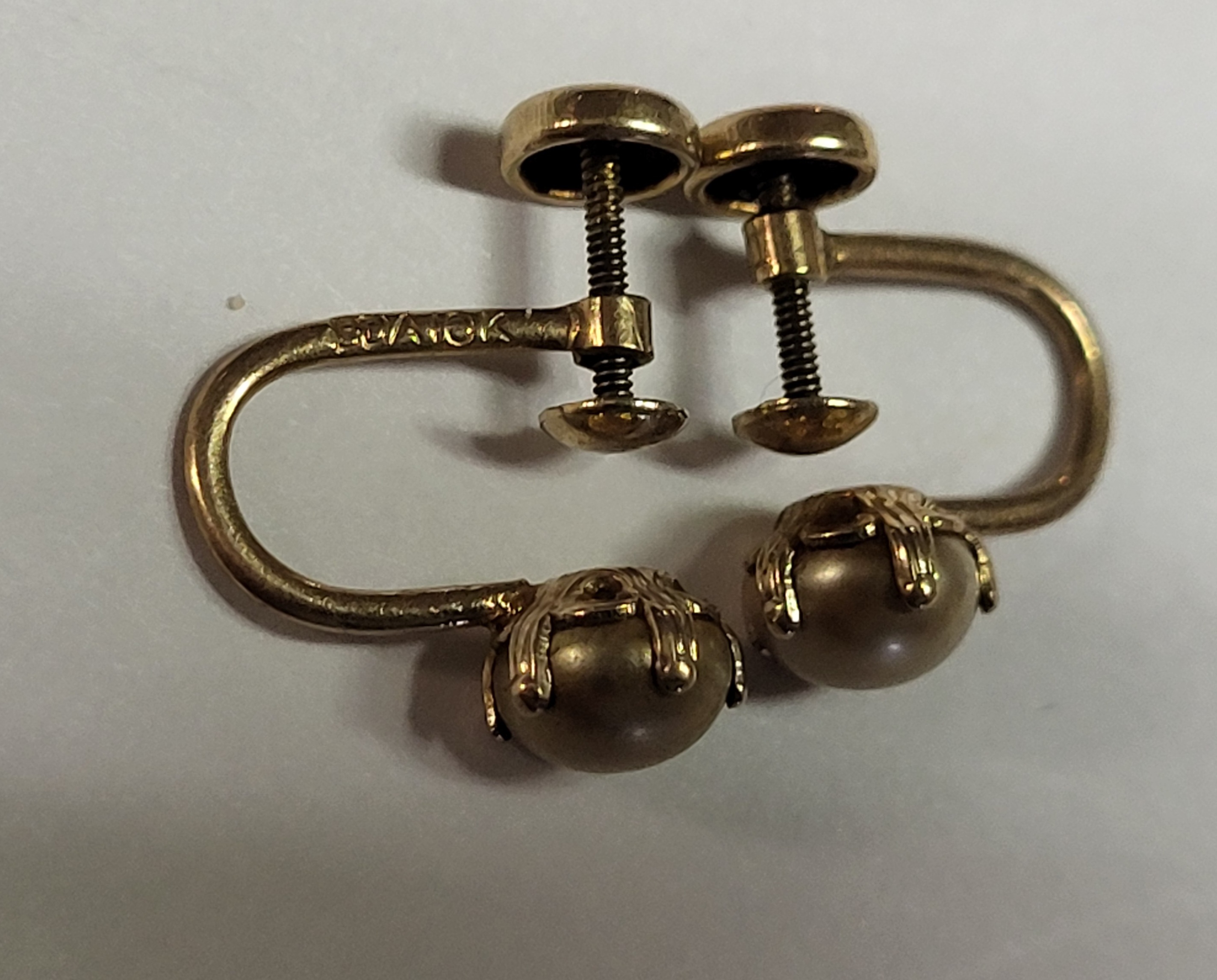 signed BOA for budlong, docherty & armstong, 10K solid yellow gold w/ champagne color pearls! 1.7 grams see pics