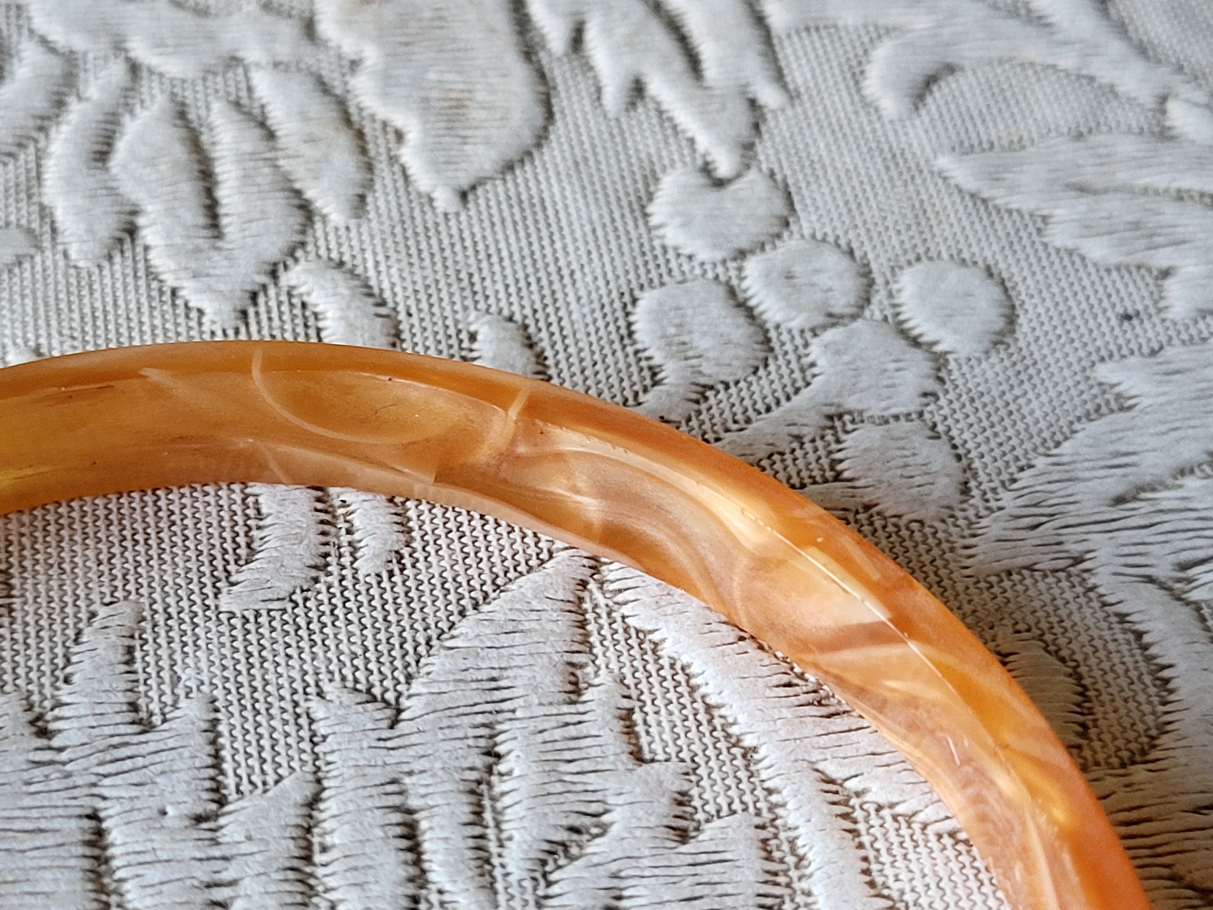 beautiful vtg bangle bracelet reminds me of a cream sickle ice cram pop 2 1/4″ inside width seepics