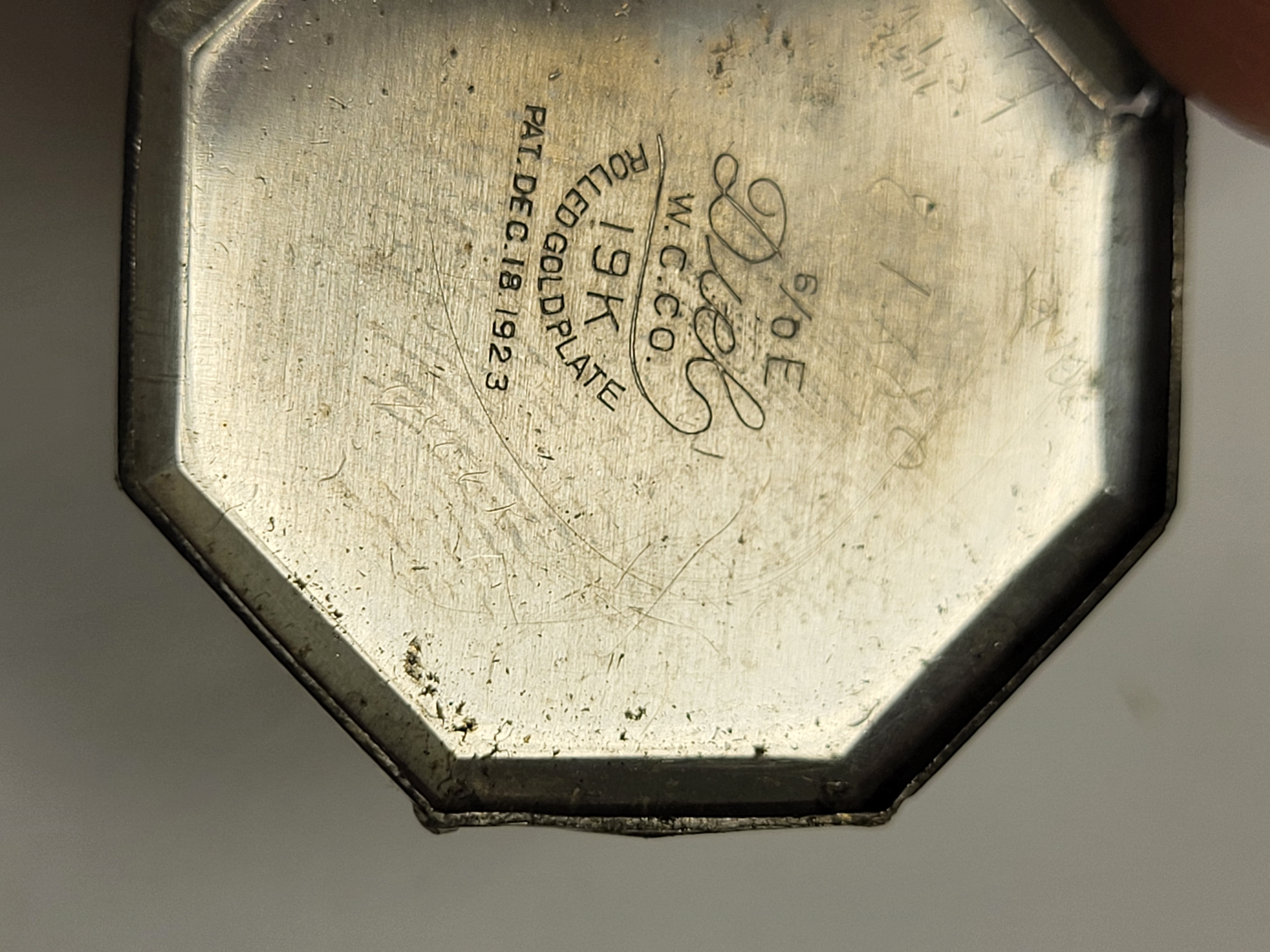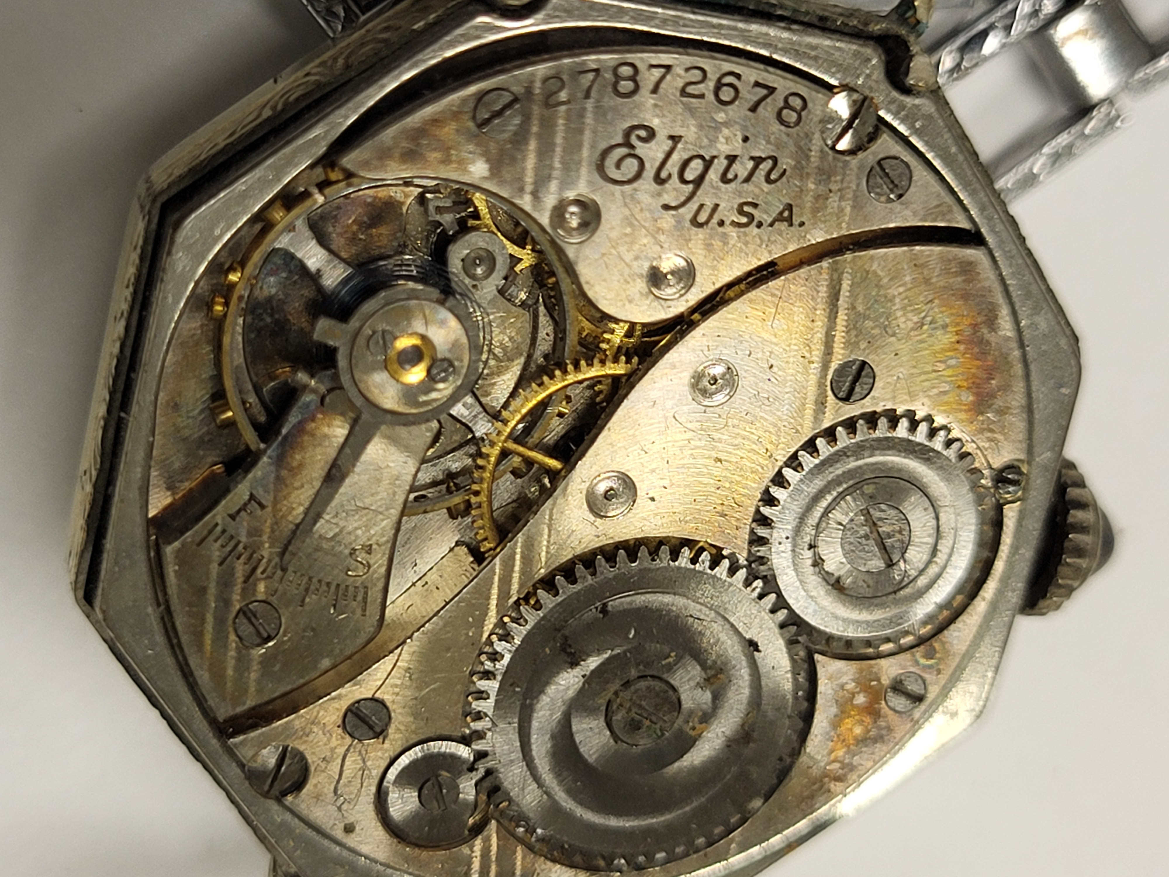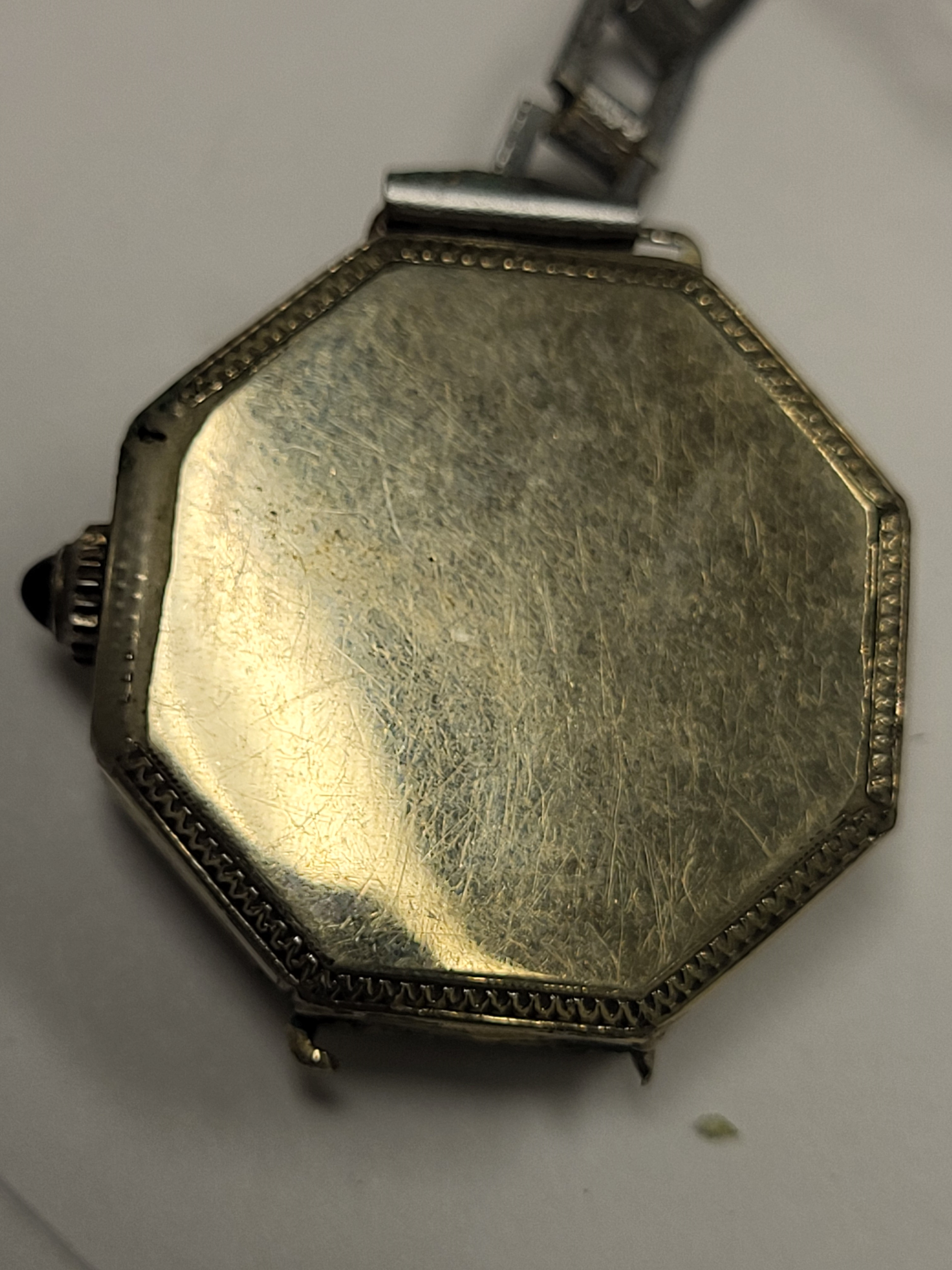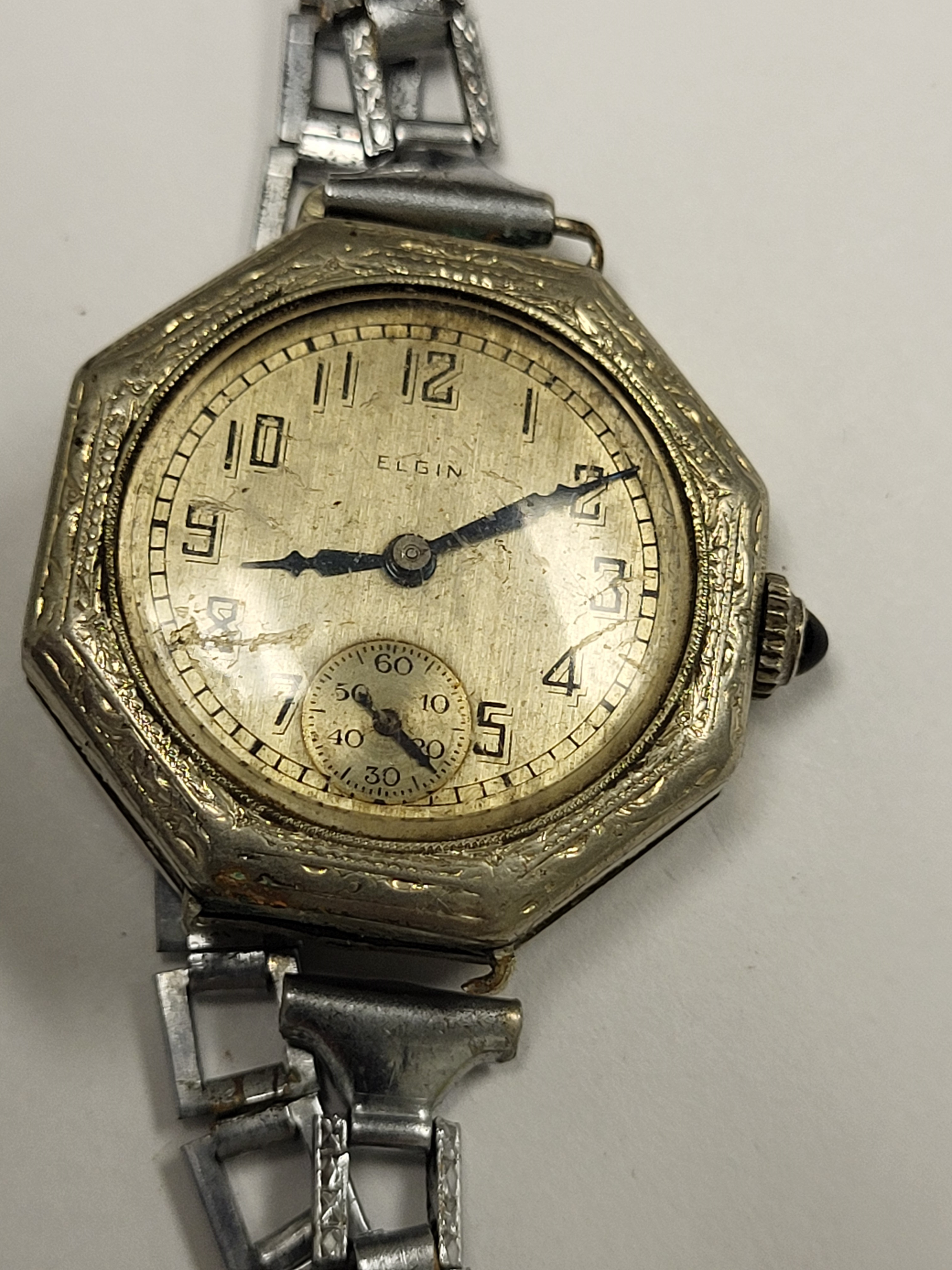 rare 1925 art deco elgin watch 19K white gold filed case