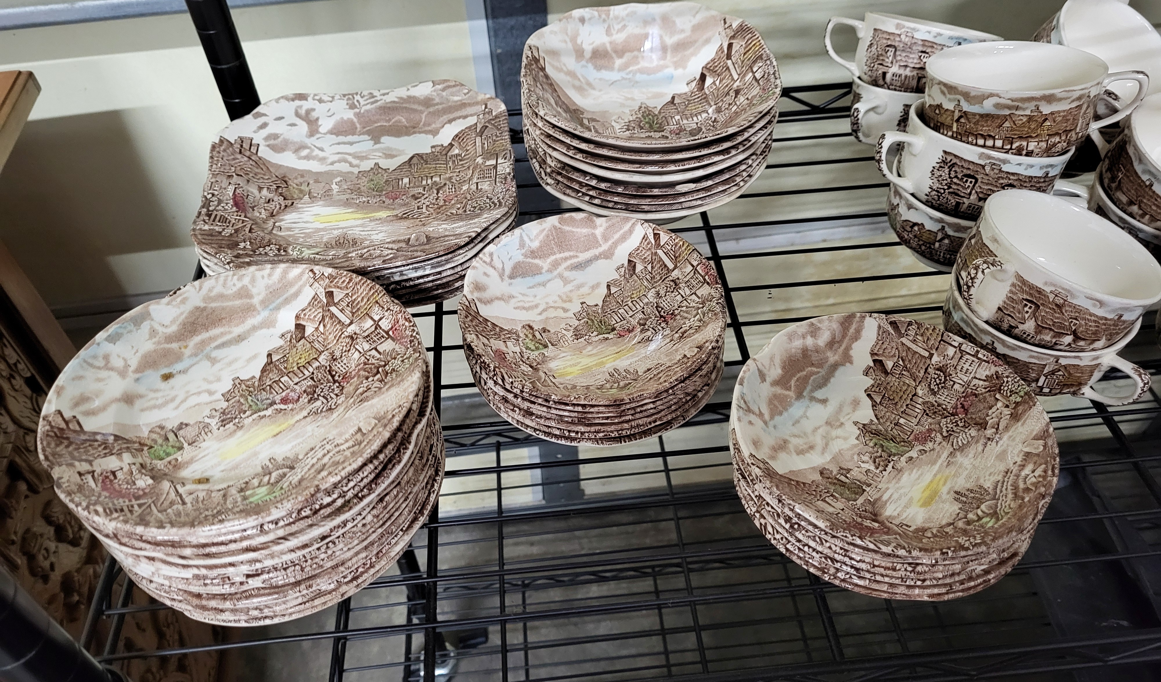 beautiful a total of 74 pcs , 12″ platter, creamer and sugar w/lid, 13 teacups, 16 6″ plates, 7 8″ luncheon plates, 8 6 1/2″ desert bowls, 14 6″ saucers, 11 10″ dinner plates all for one bid see pics a very nice vintage set