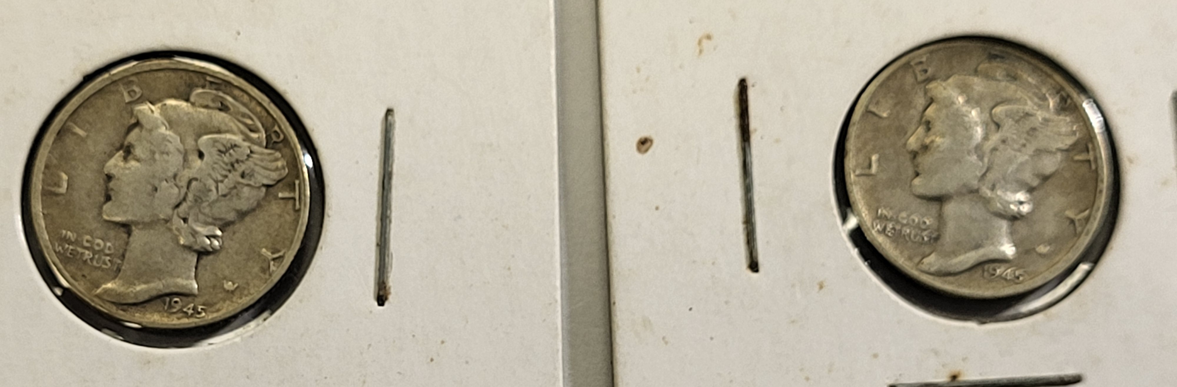 silver 1945 mercury dimes EF+ lot of 2 coins
