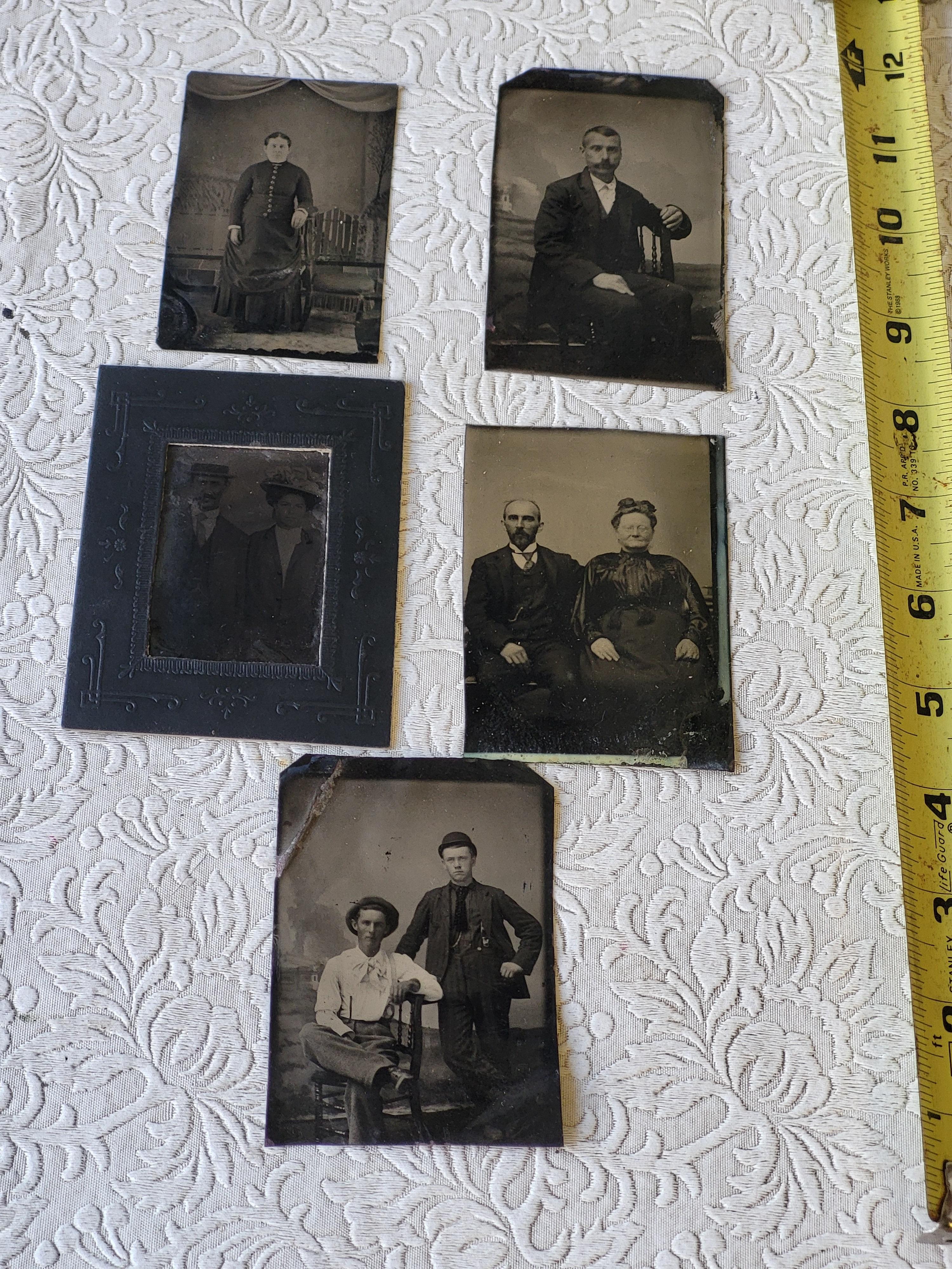 nice early tin type photos all 5 for one bid see pics 3 1/2″ x 2 1/4″