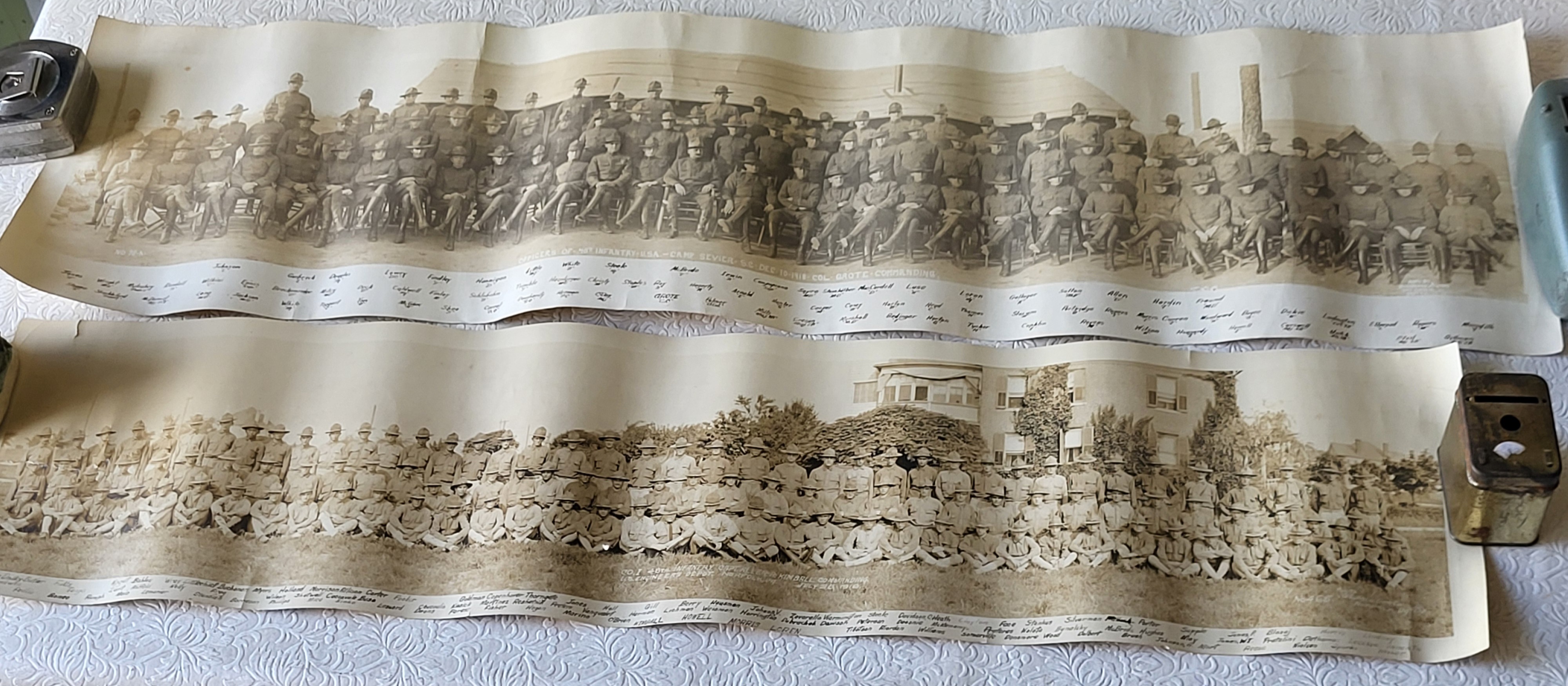 military panoramic photos lot of 2 1918 34″ & 37 1/2″cam sevier scdc10 1918 and 48th infantry 1918 both forone bid both very nice 1 is 34″ long and the other is 37 1/2″ see pics “