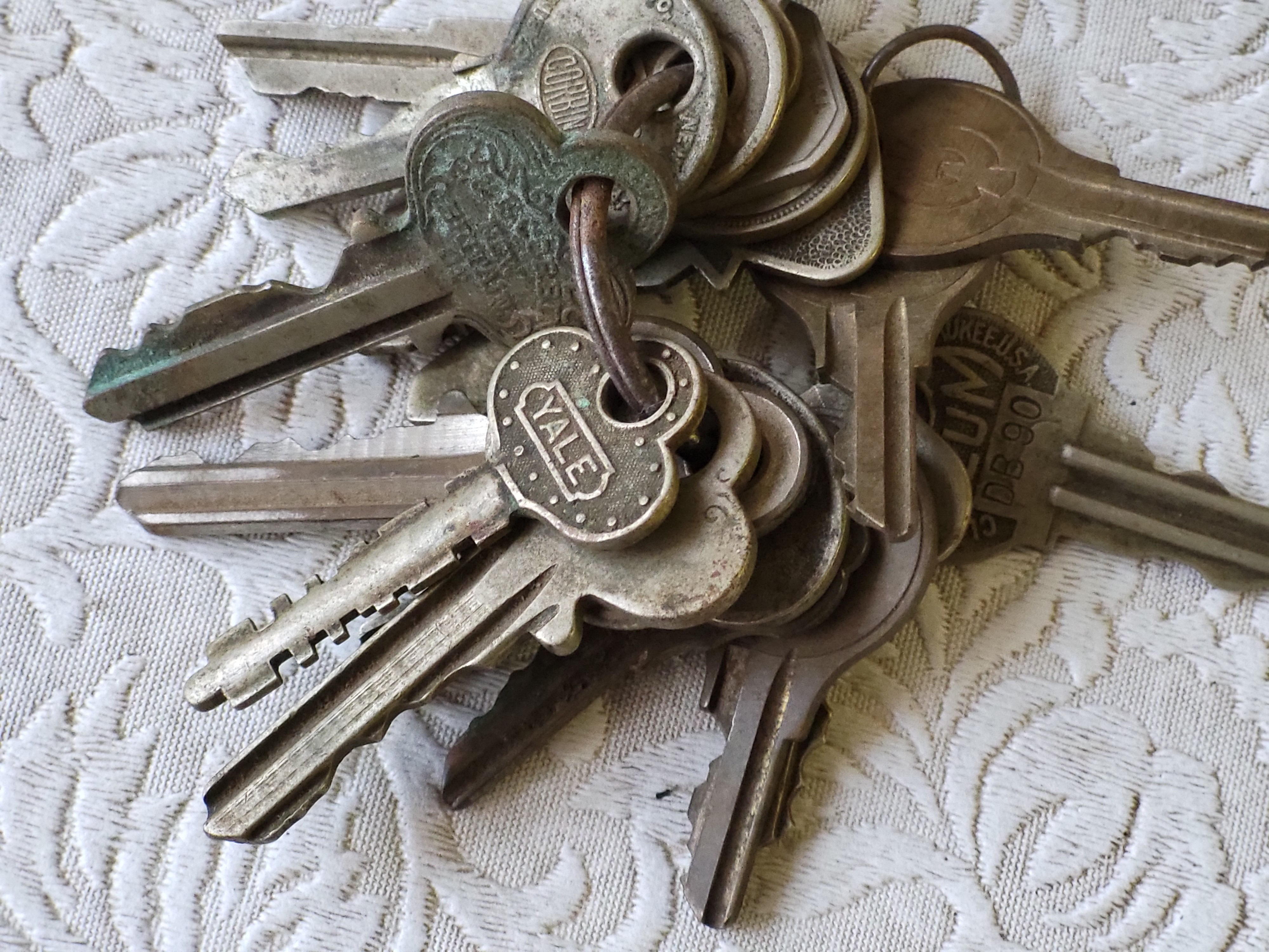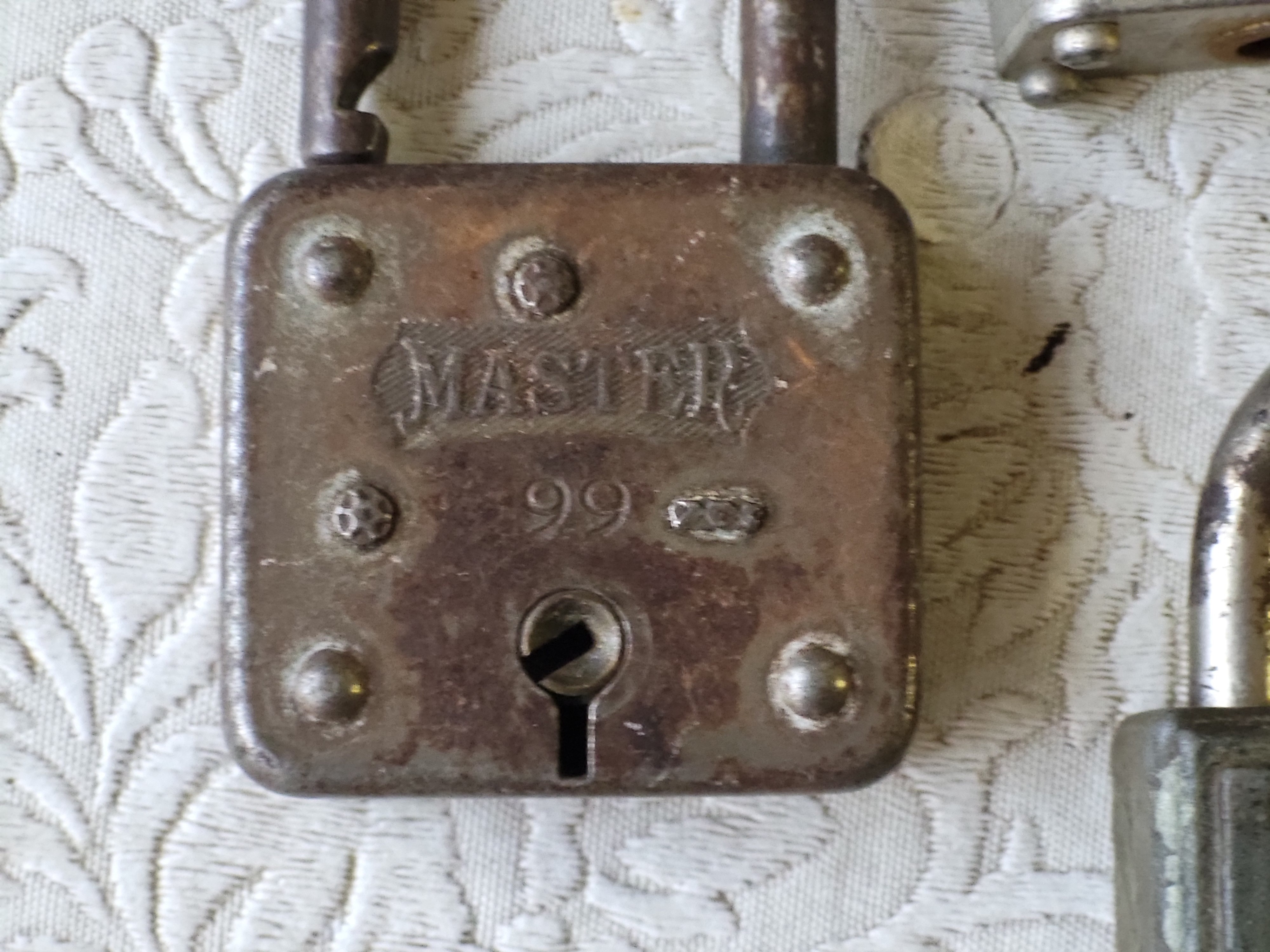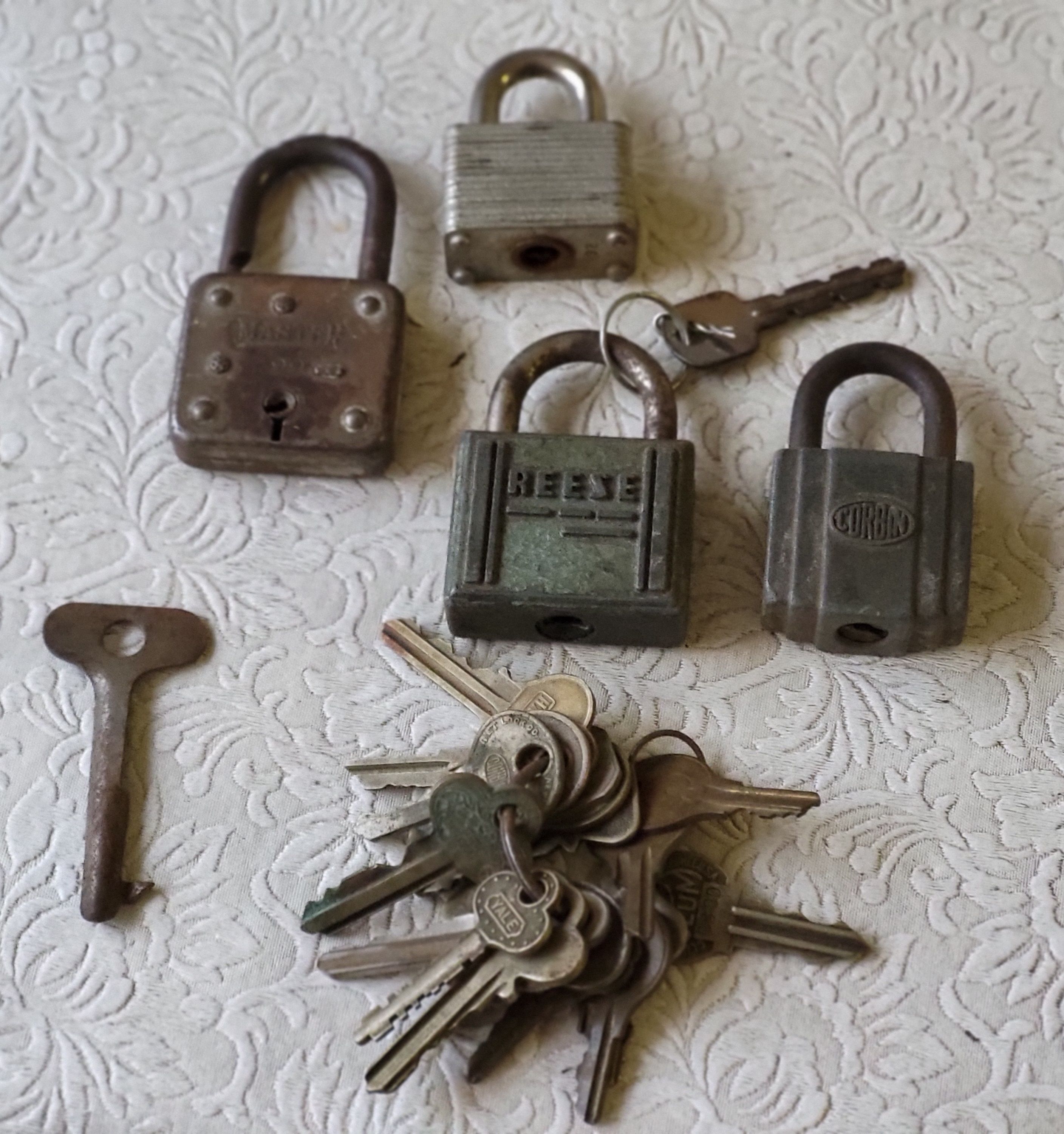 antique padlocks& keys 1950’s master, reese, corbin and lots of keys 4 nice early padlocks and appx 20 keys all forone bid see pics