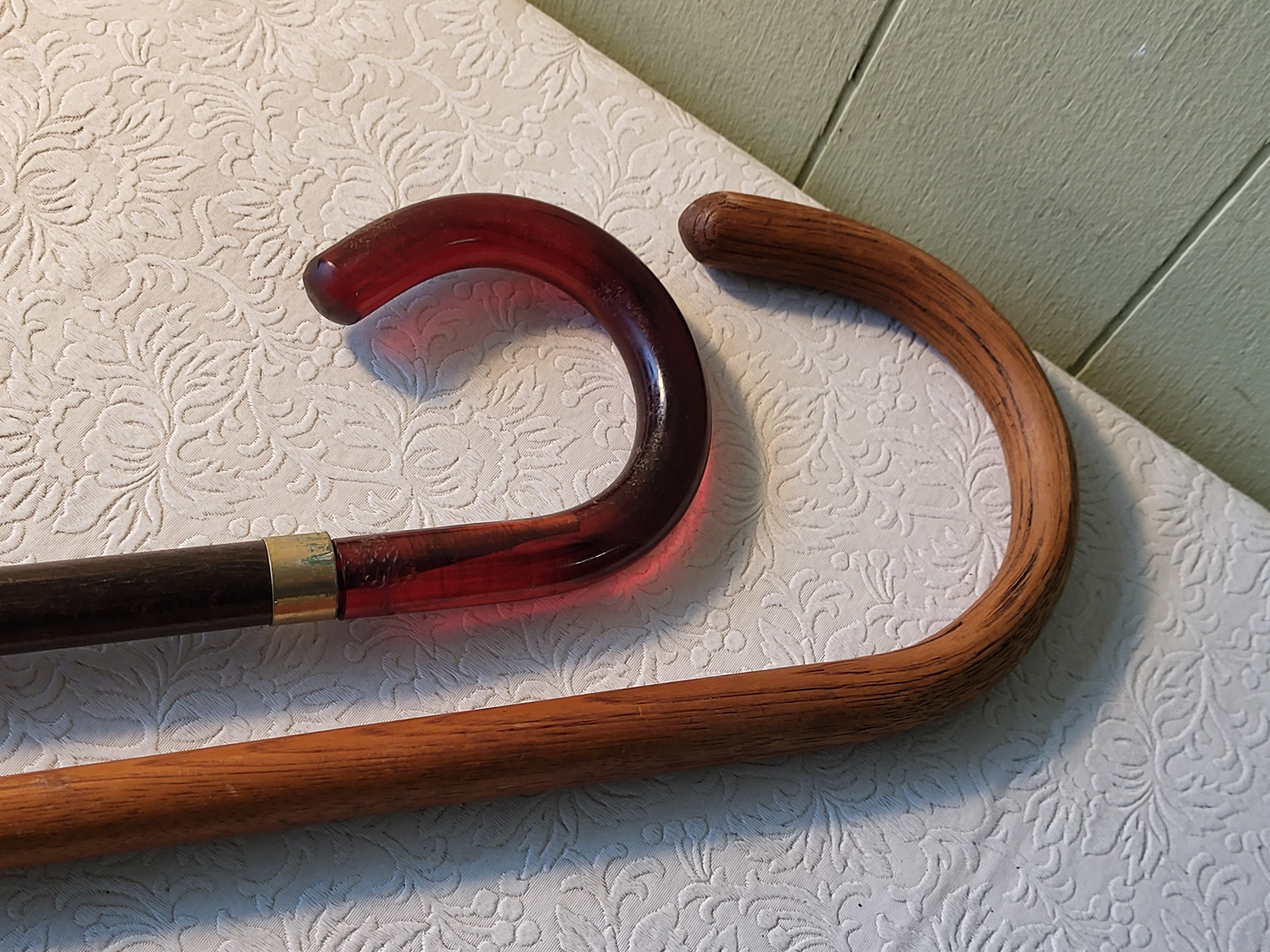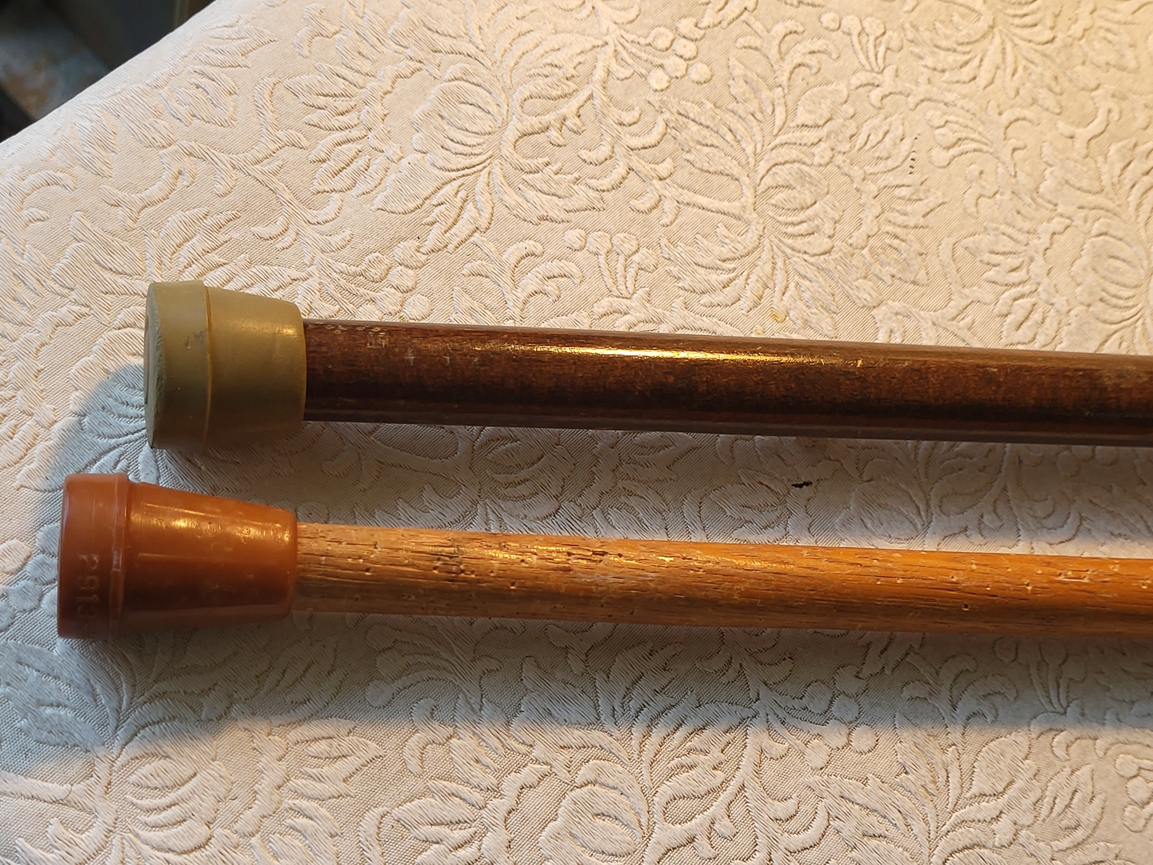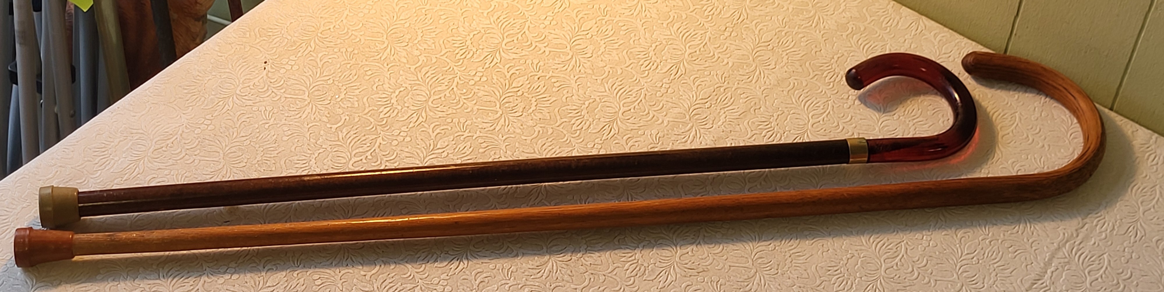 Bakelite handled one is 30″ long oak one is 34″ long both for one bid