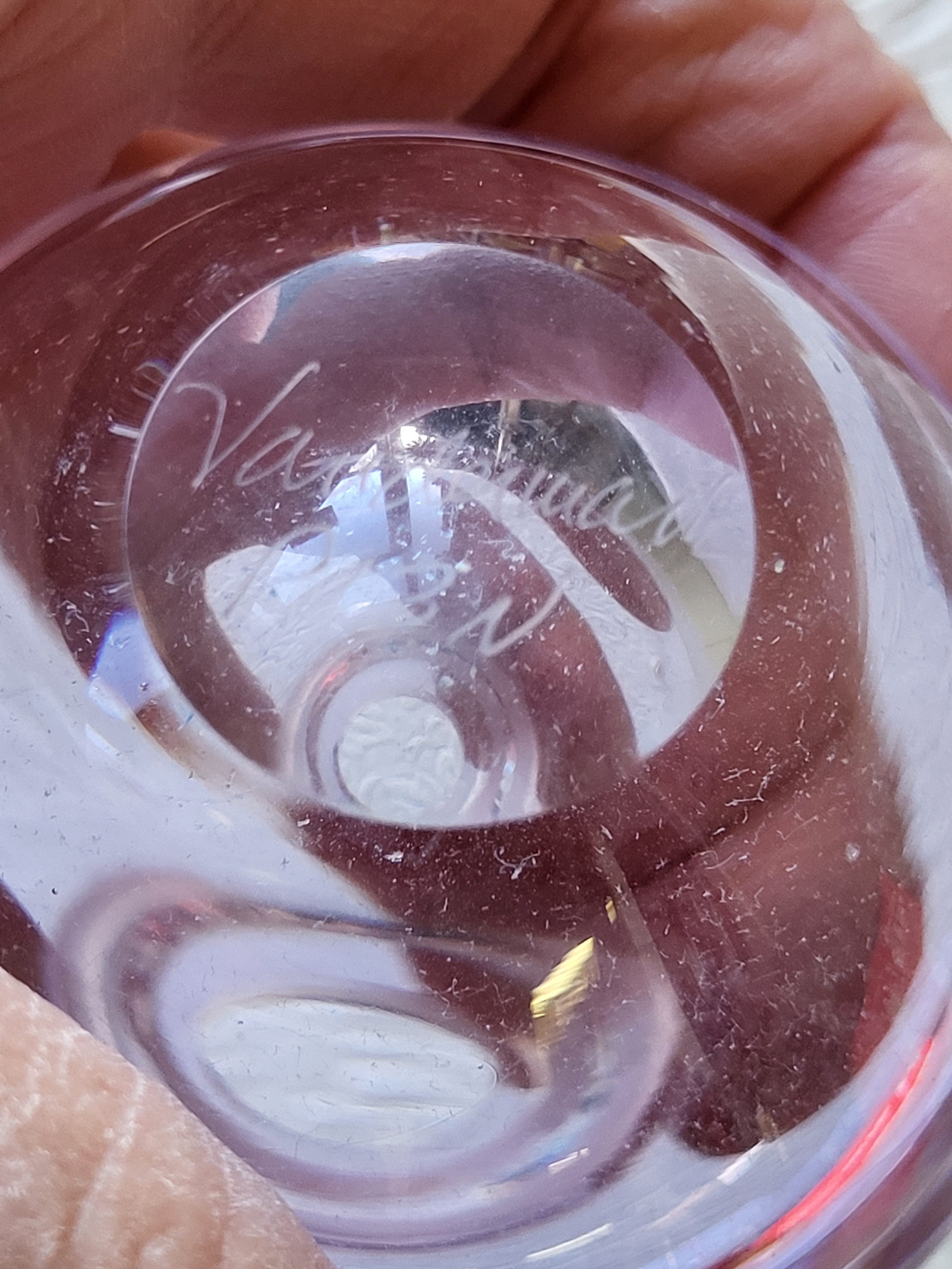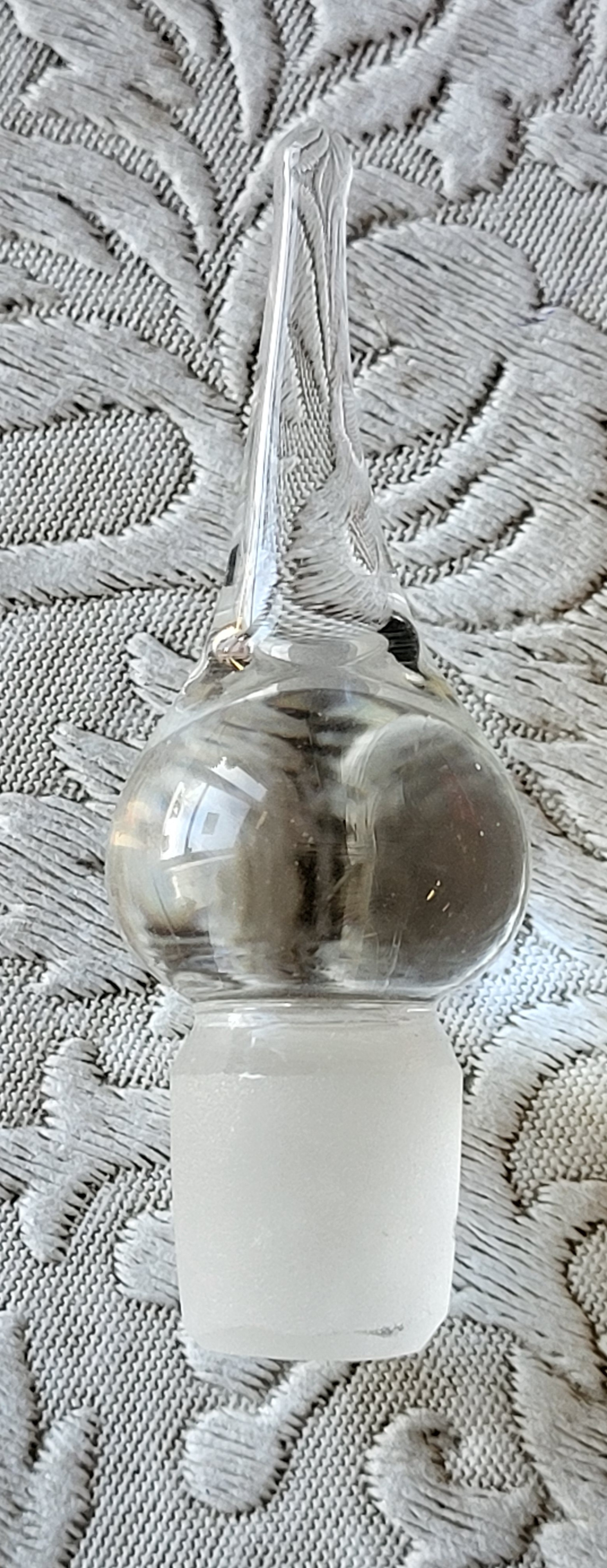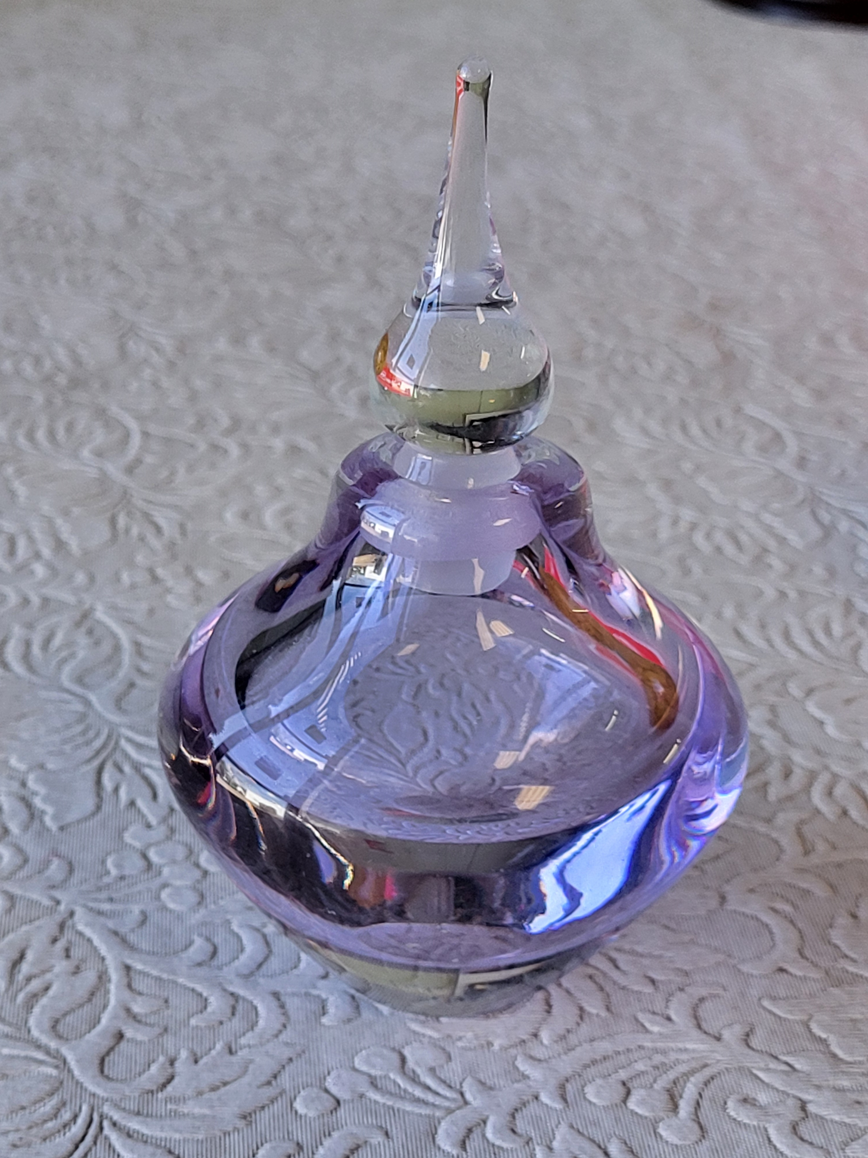 from estate collection nice medium lavender color 4 3/4″ w/ stopper n0 damage noted see pic