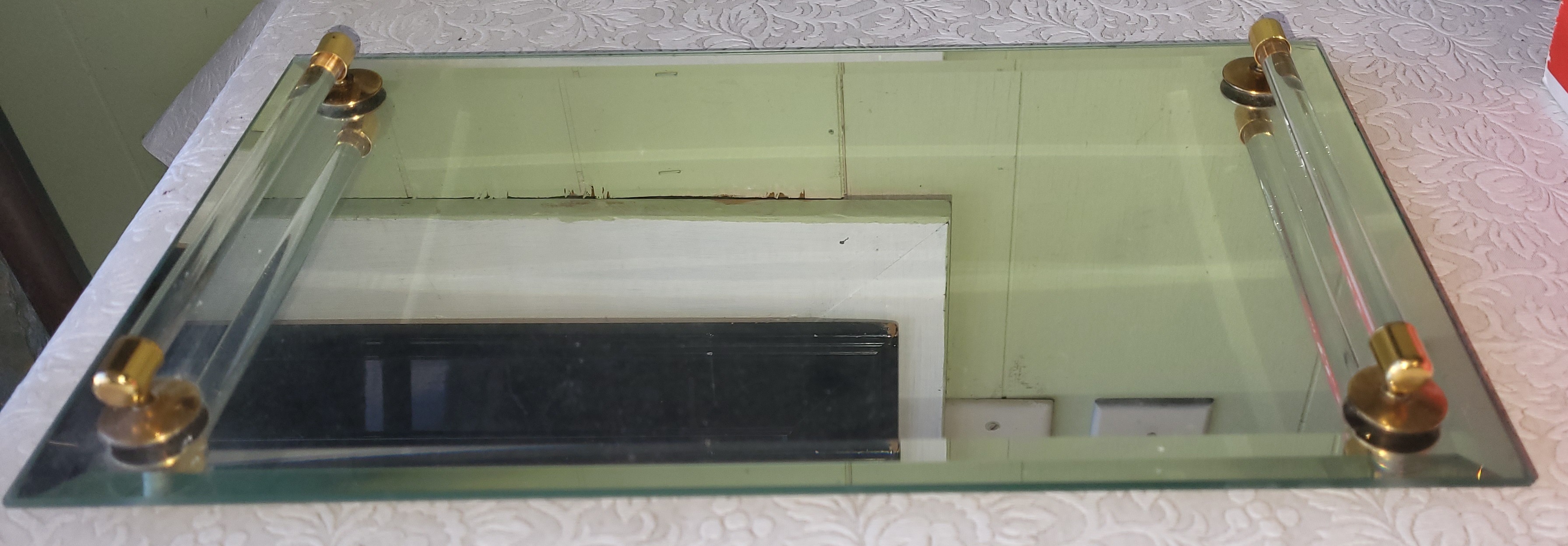 8″ x 14″ nice beveled edge very good conditon perfect for the dresser or hall table display see pics