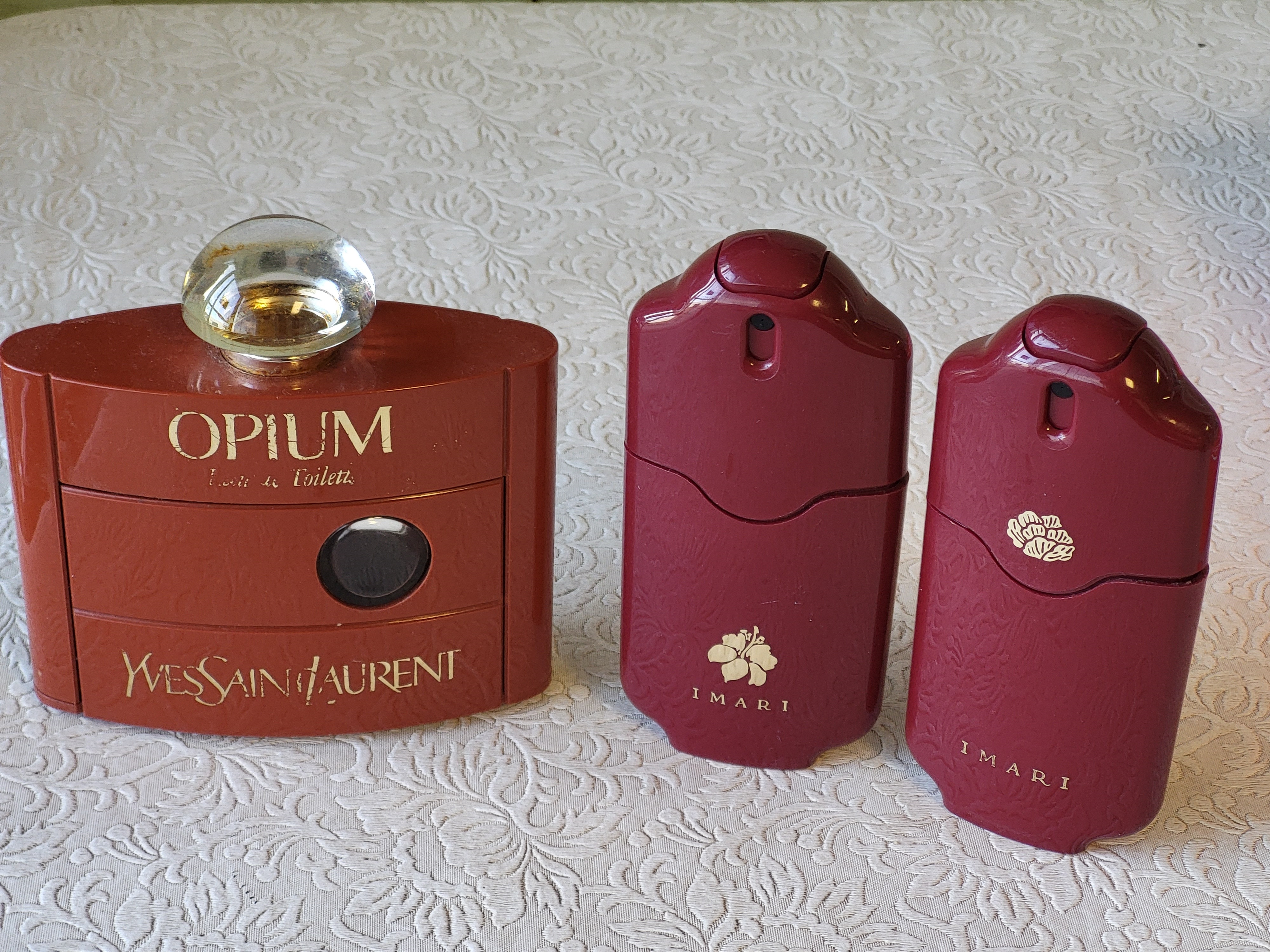 yves saint laurent bottle is empty the 2 imari seem to have some left all 3 bottles forone bid see pics