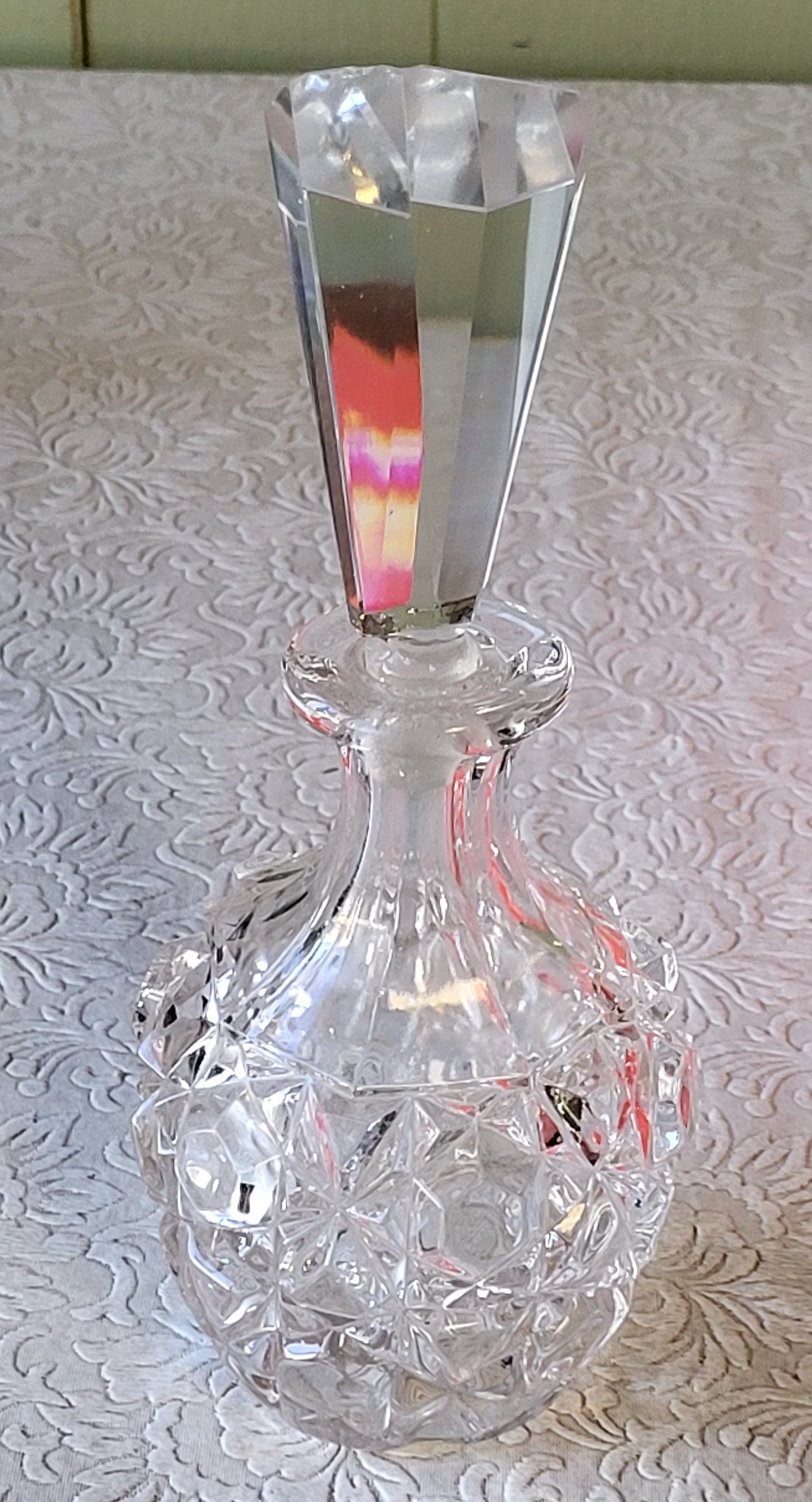 from estate collection 9″ tall w/stopper teeny chip on stopper see pics