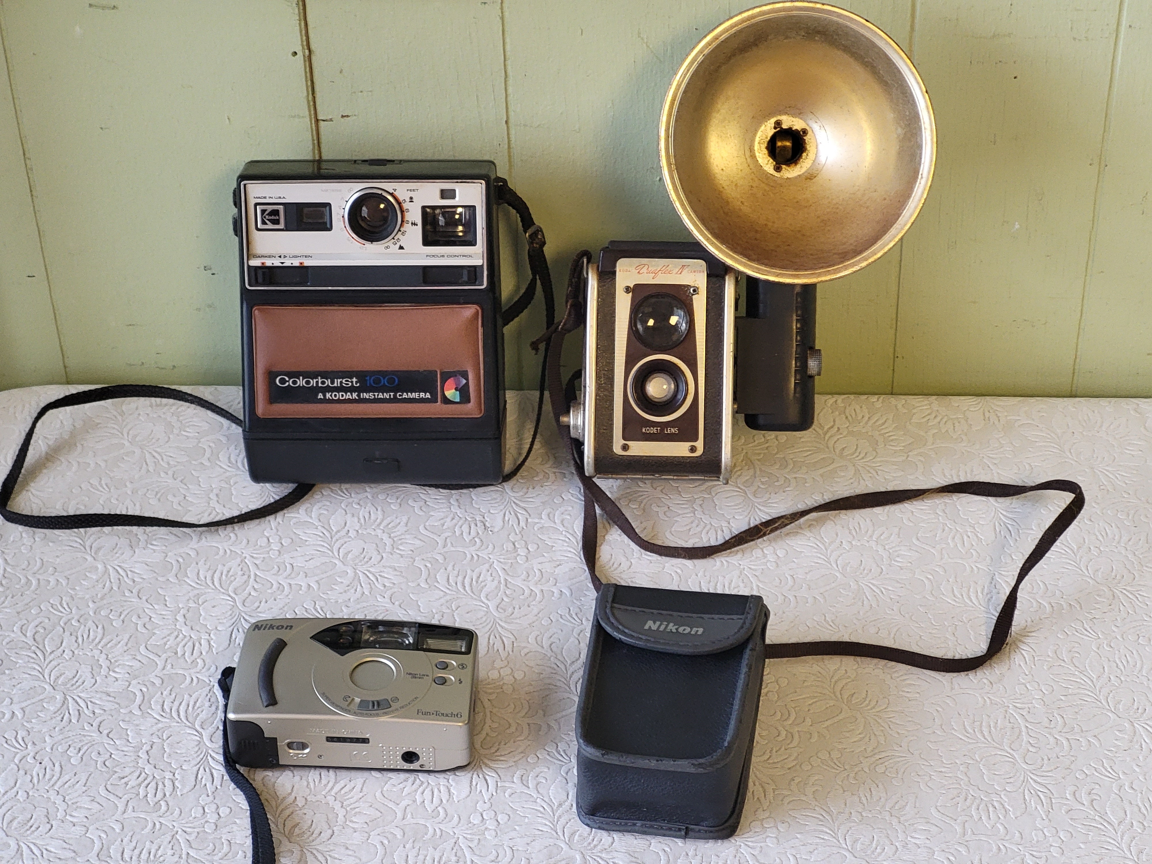 duaflex 4 with rare side mount flash ploaroid style kodak 100 and nikon fun touch all 3 camera for one bid see pics
