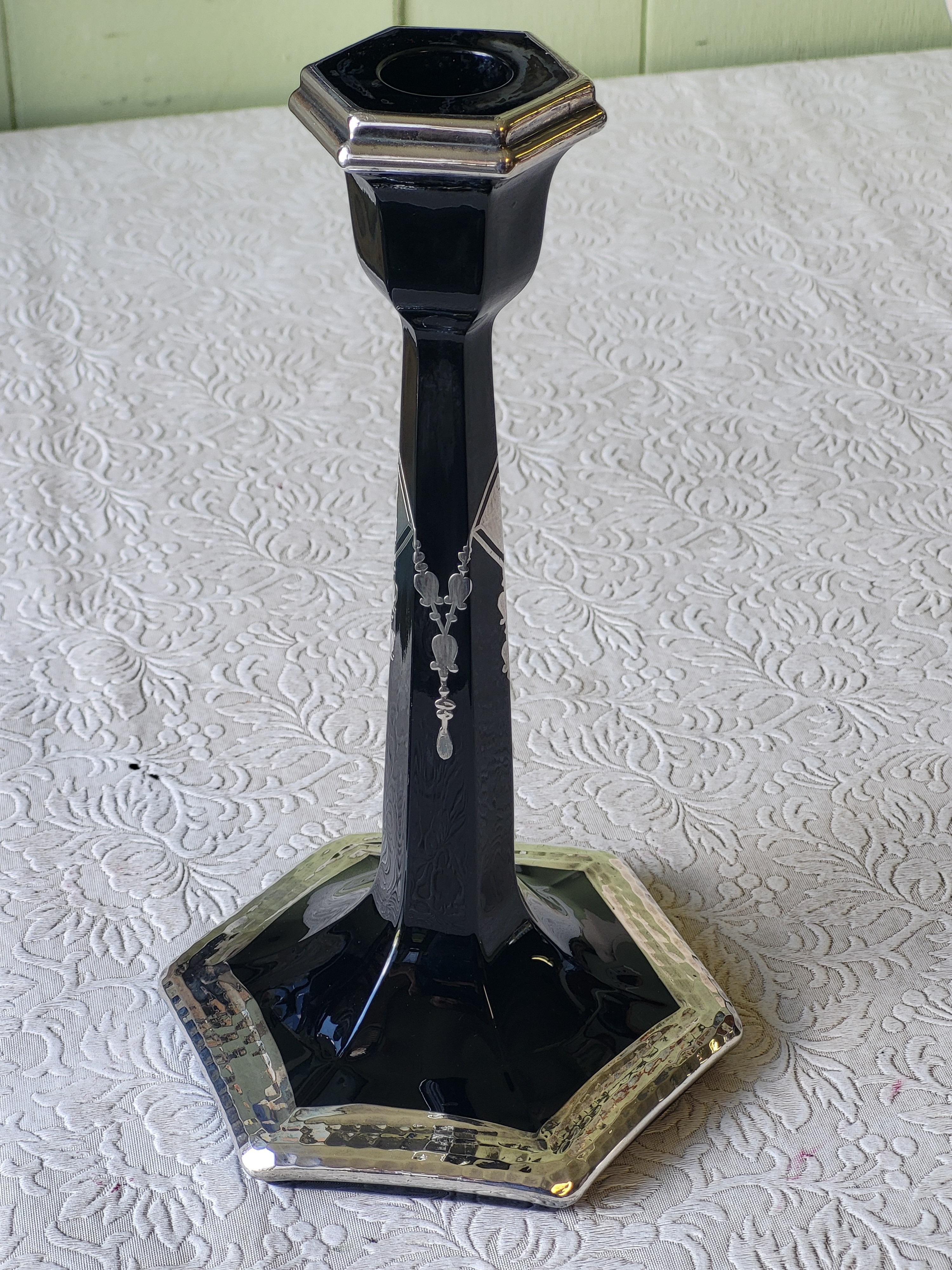 elegant glass 1950’s era 9″ tall sterling is excellent no chips noted seepics