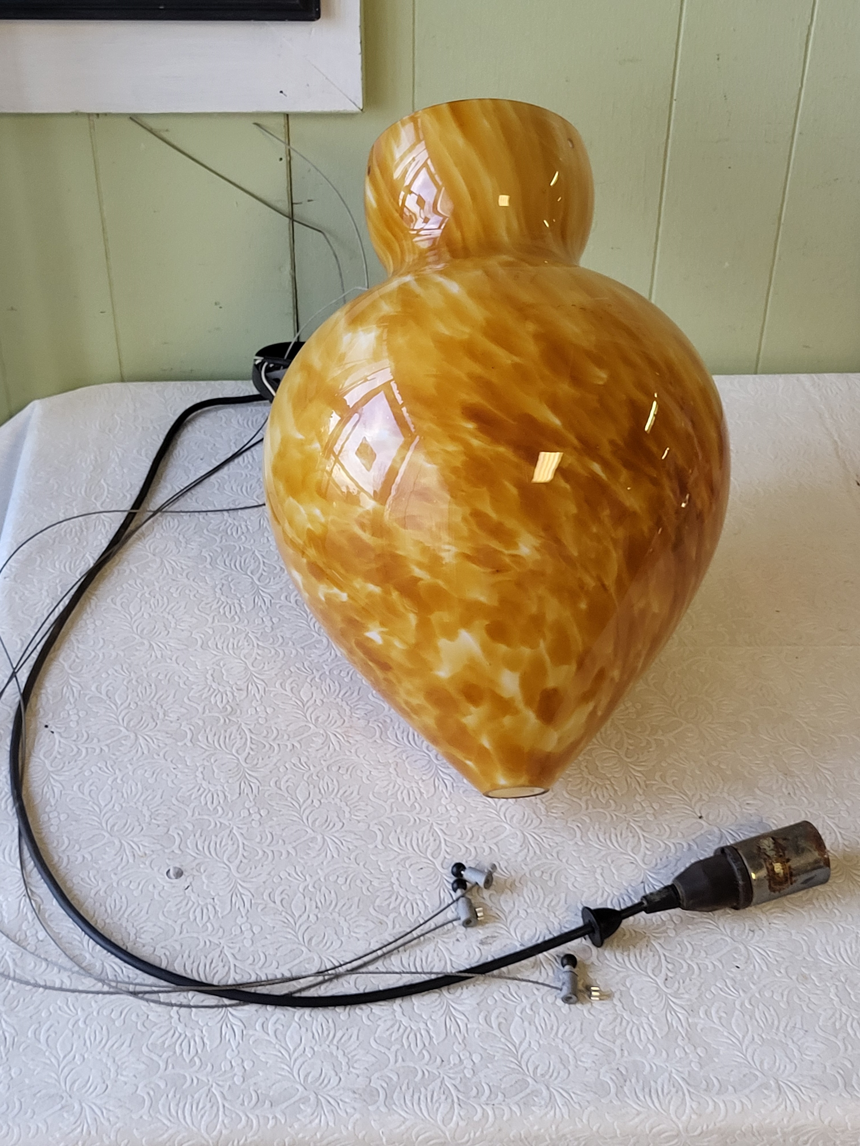 with wires and fixture ready to wire up and use 18″ long x 11″ widest point no damage noted see pics