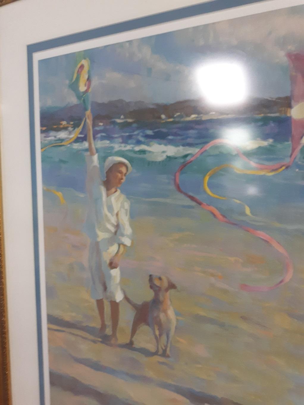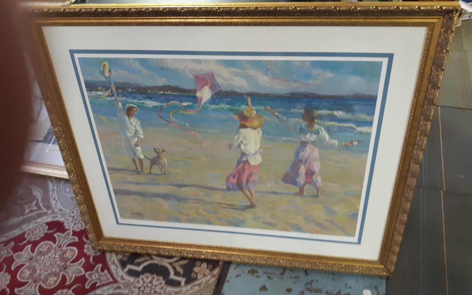 beach scene of children at the beach litho signed alexander averin impressionist style. #242/395 framed nicely 47″ x 38″ signed by artist See pics