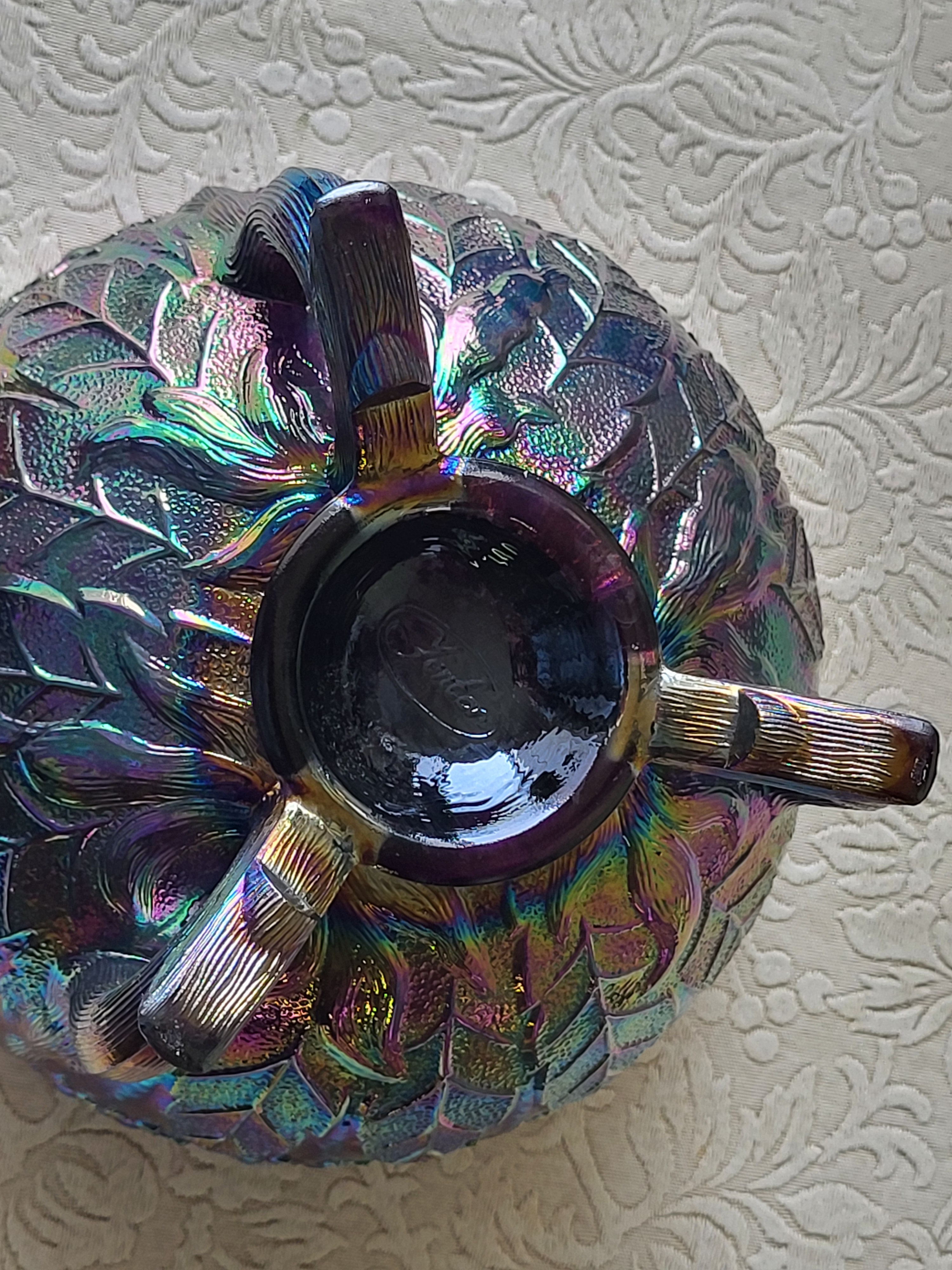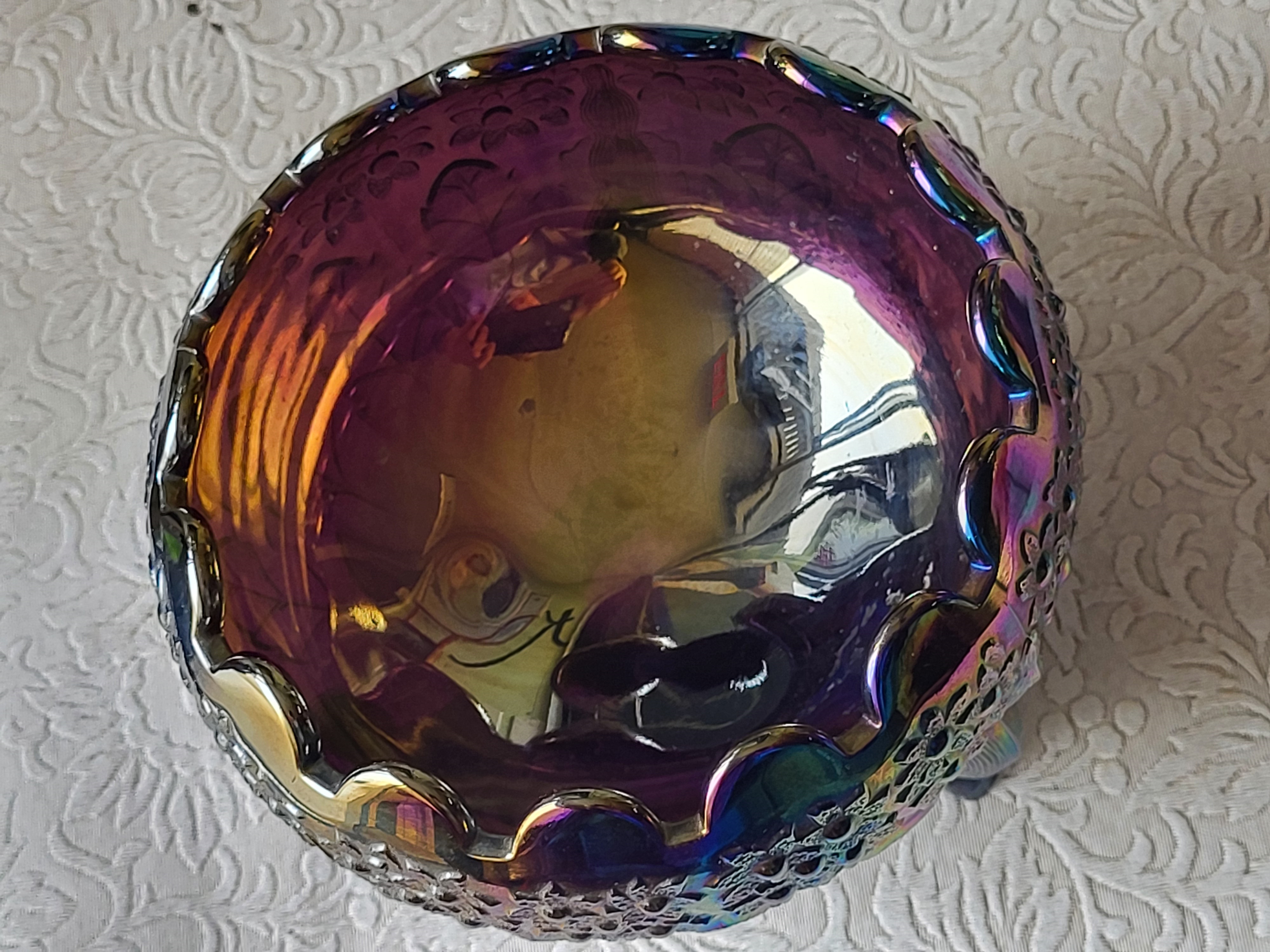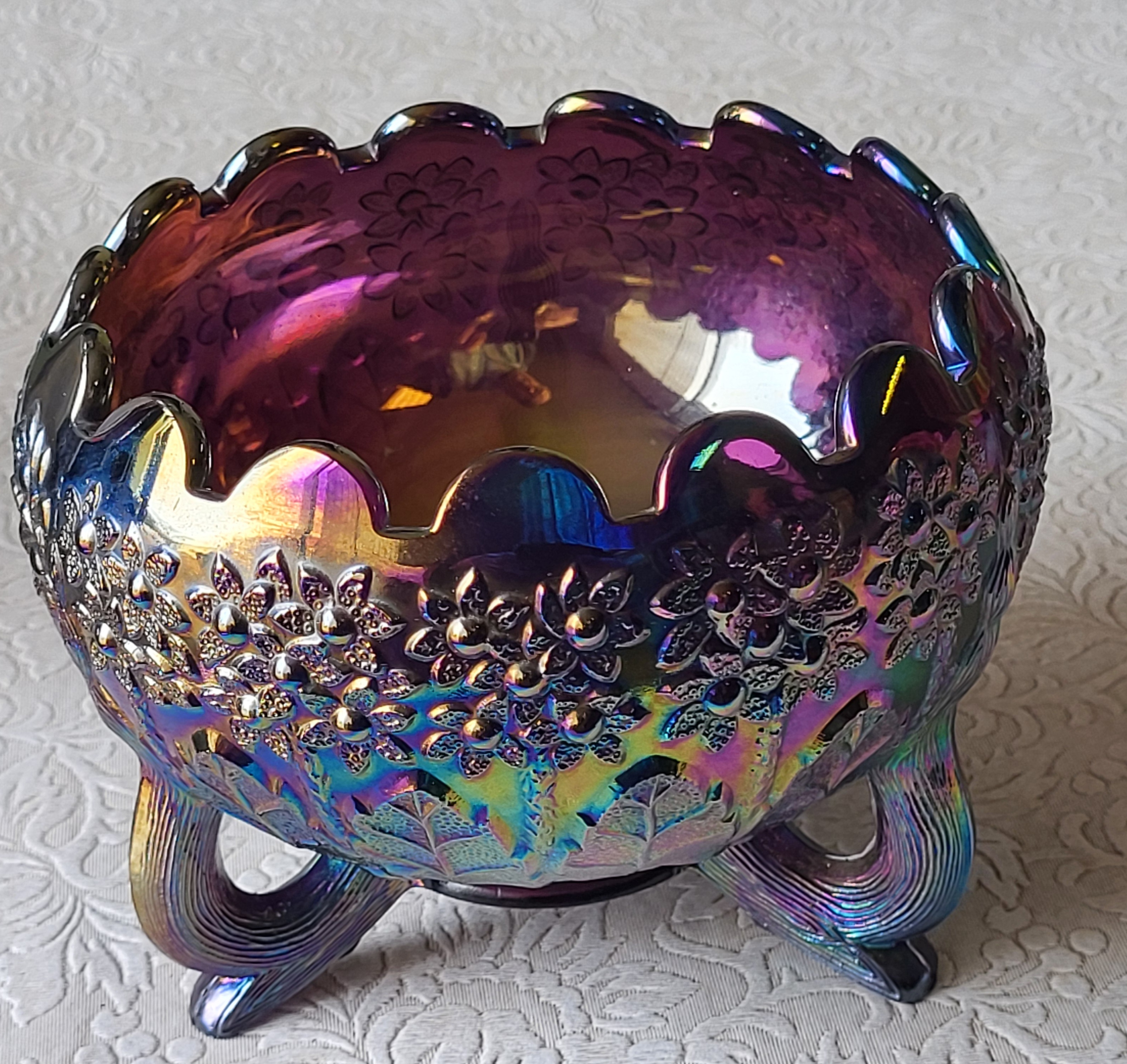 Fenton amethyst carnival glass footed bowl orange tree
