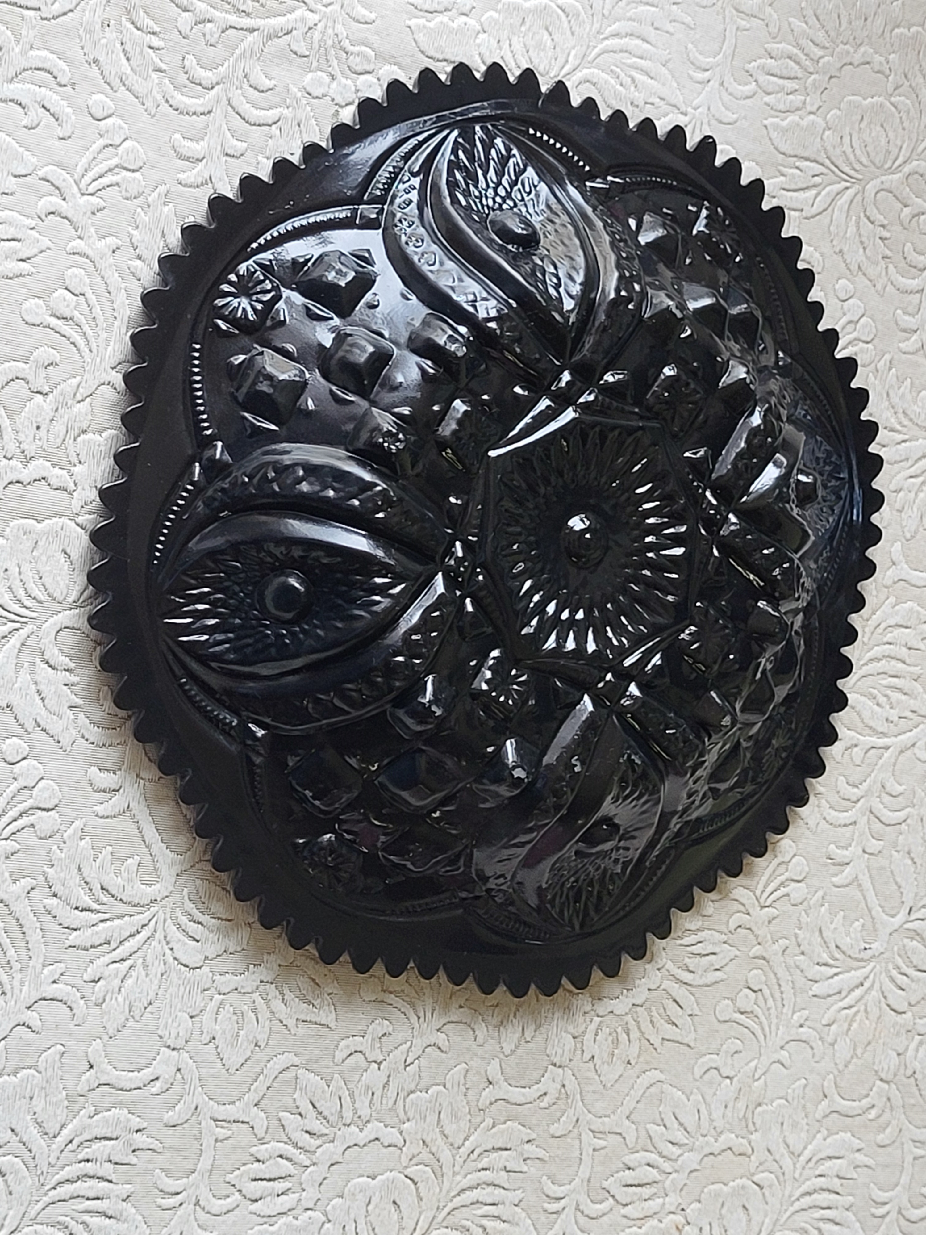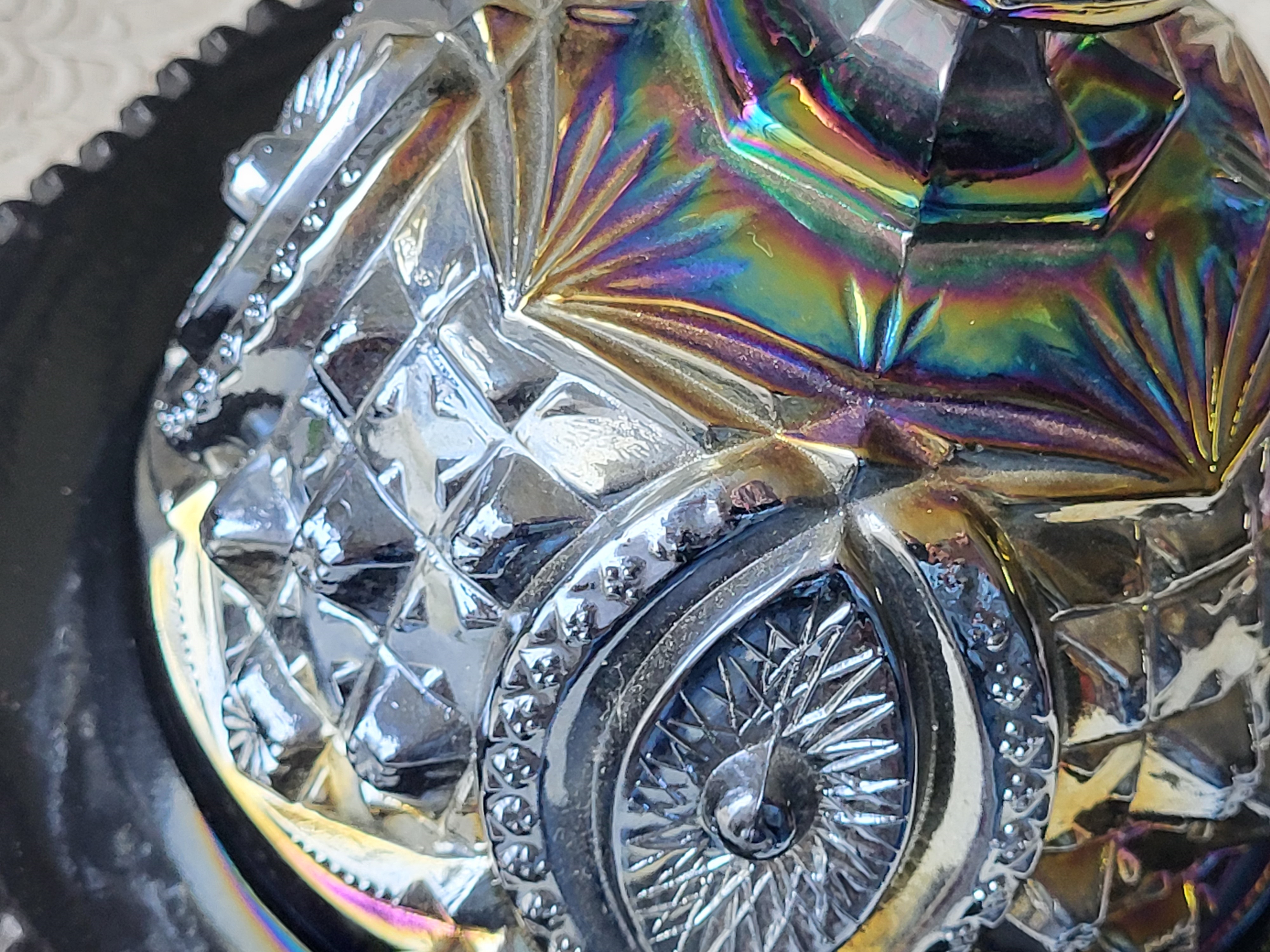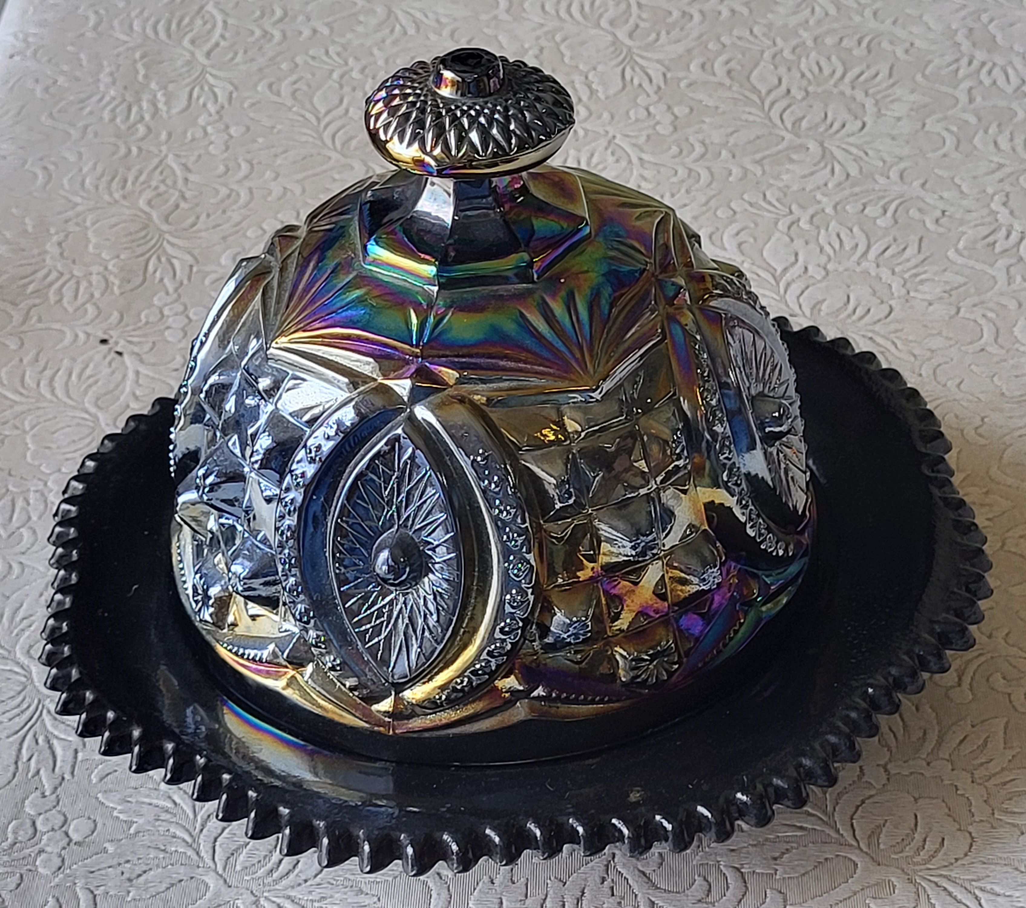 6″ tall x 7 1/2″ wide at base no chips noted see pic very pretty