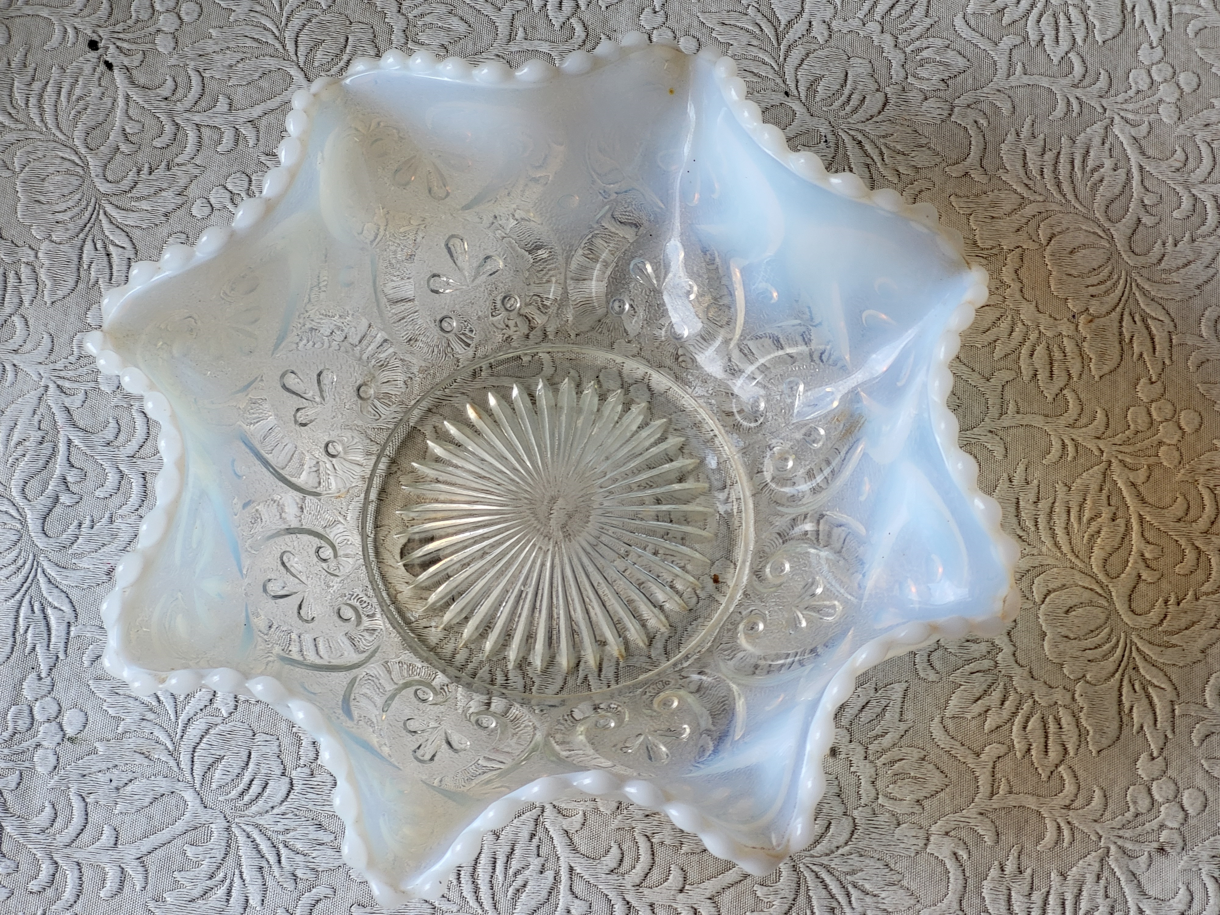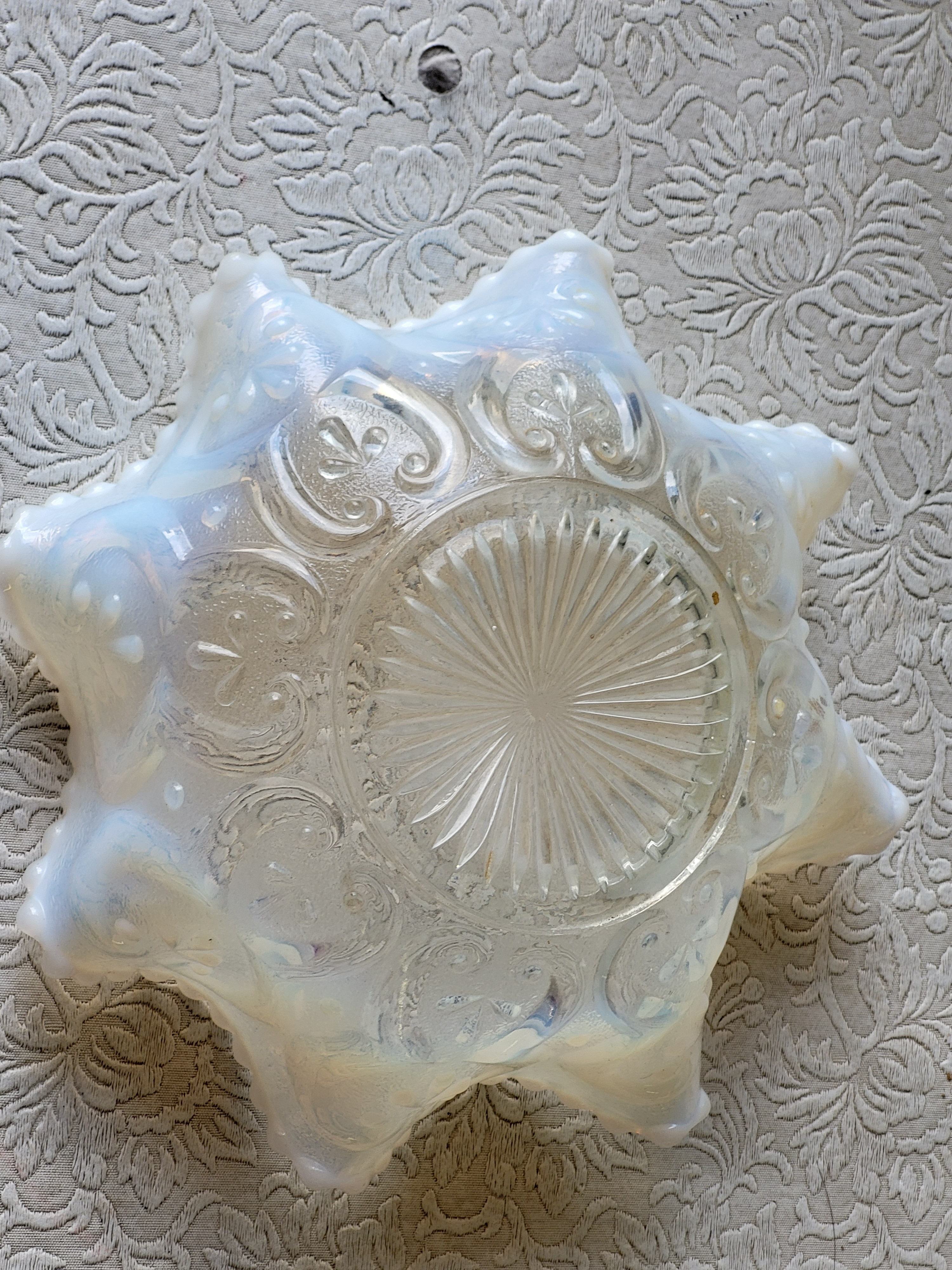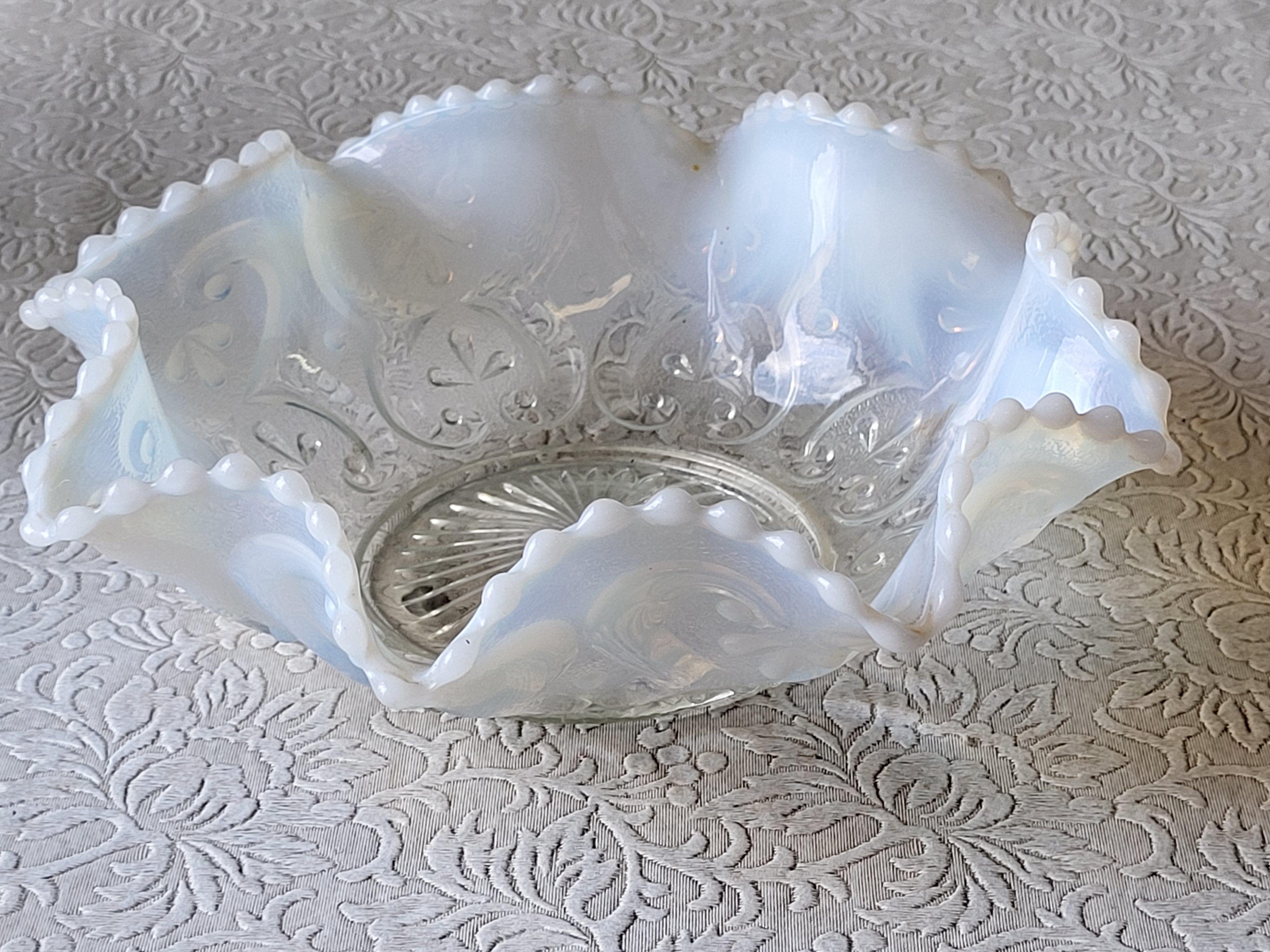 rare dugan opalescent carnival glass jeweled heart bowl