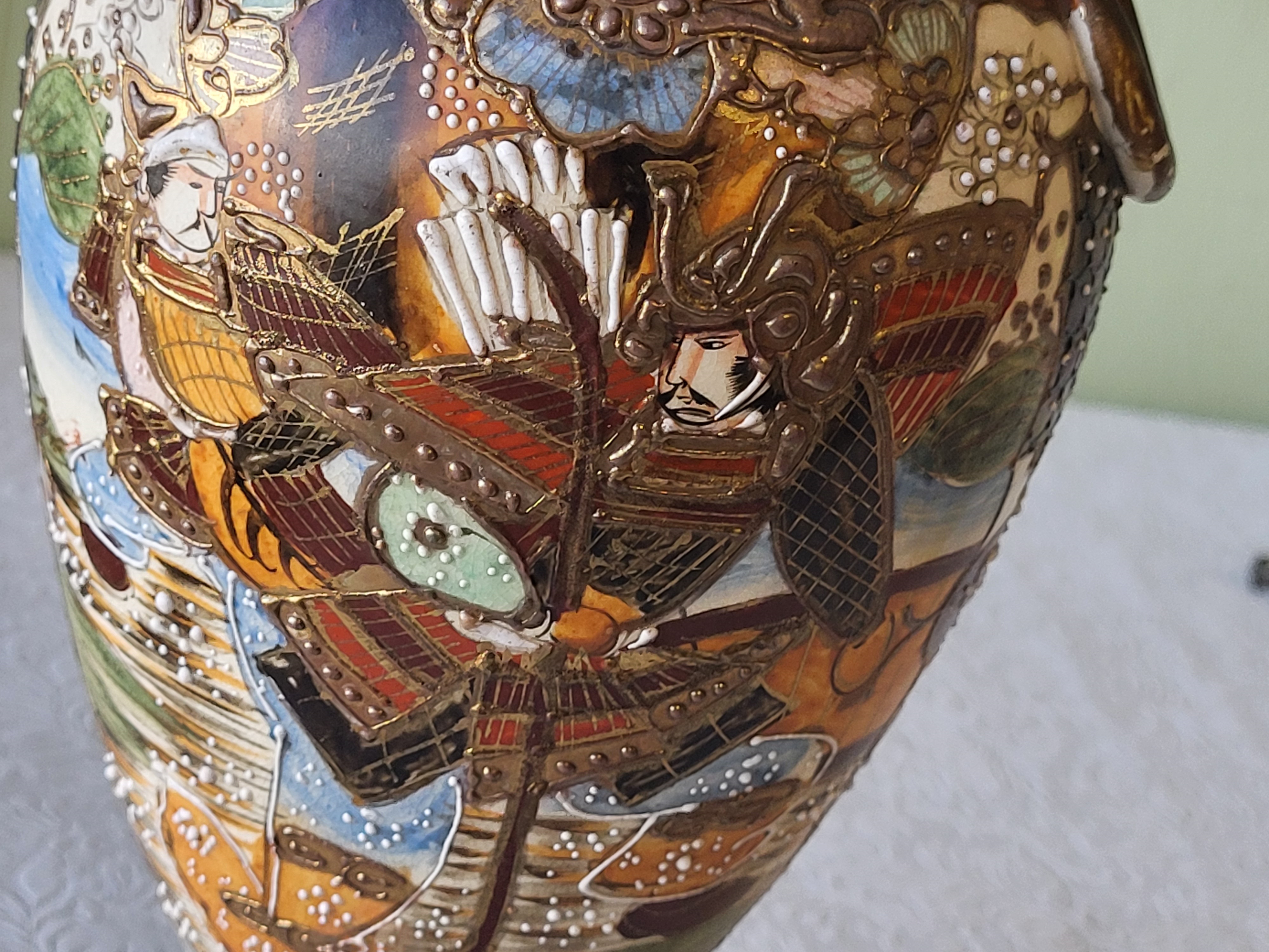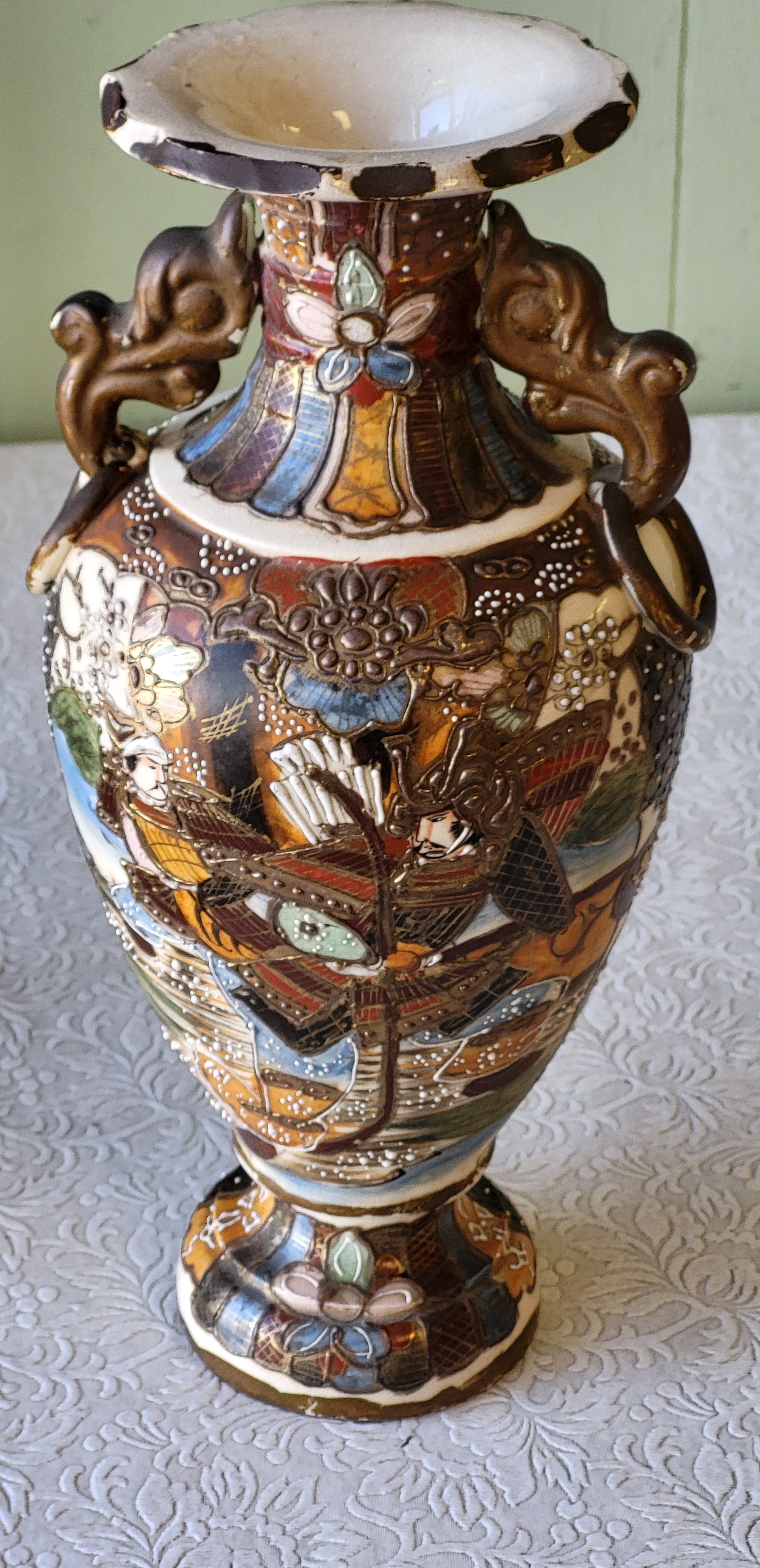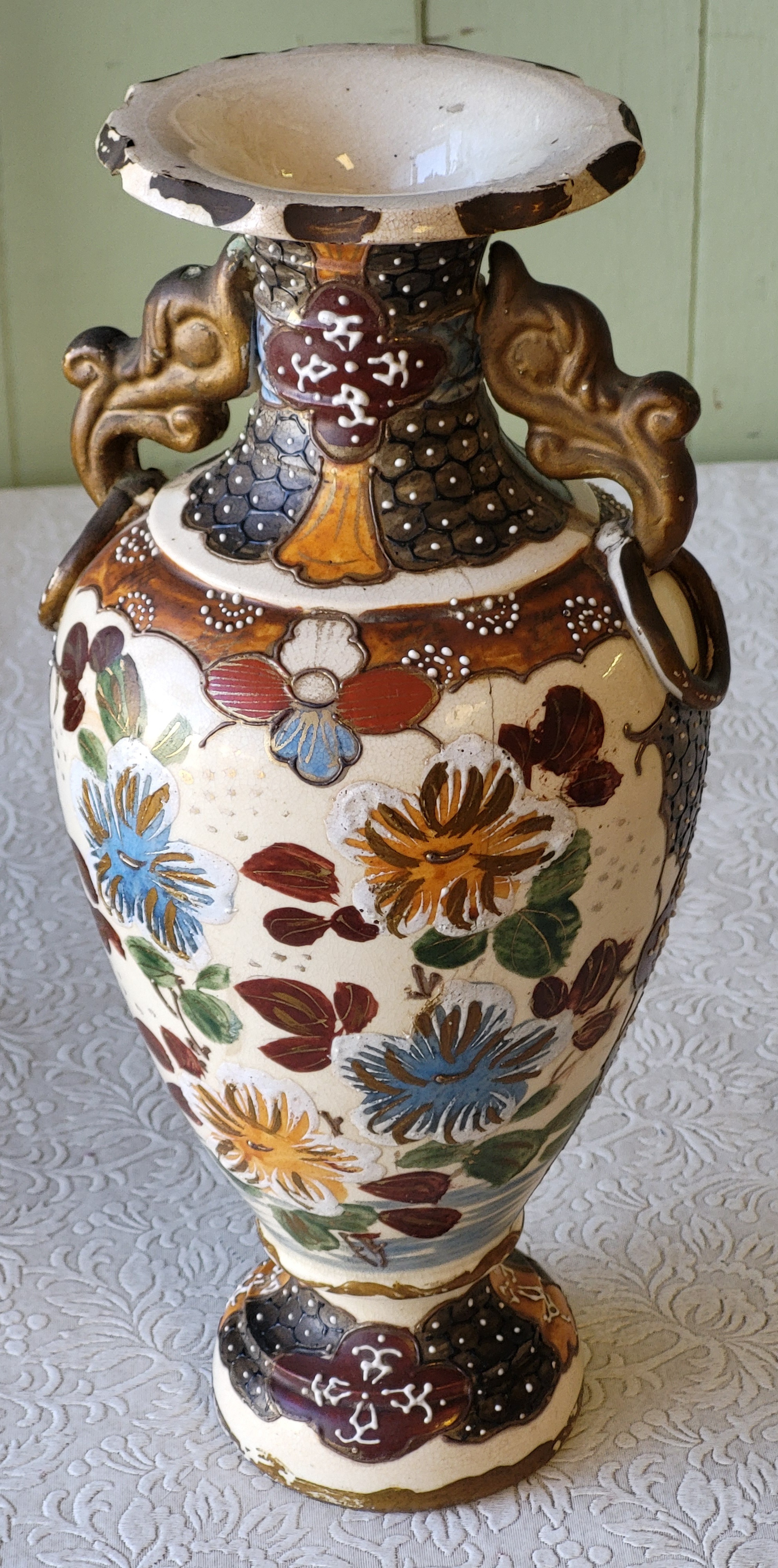 1868-1912! likely 1870’s moriage decoration & koi? handles 12 1/4″ tll see pics