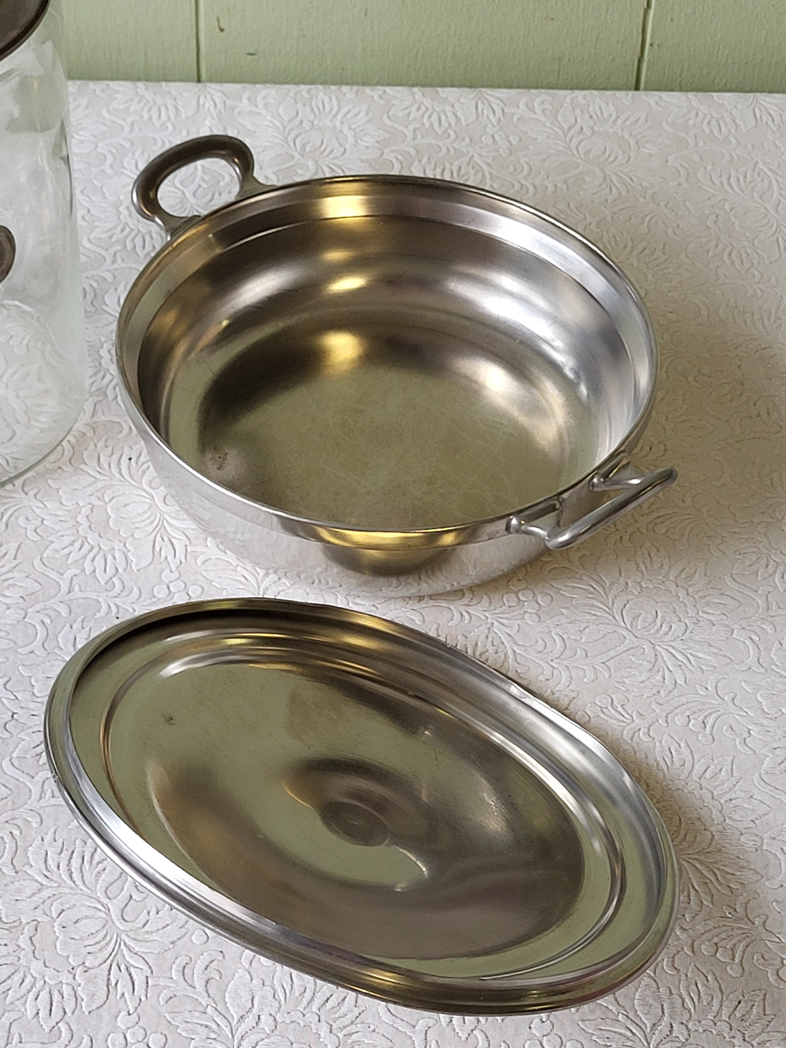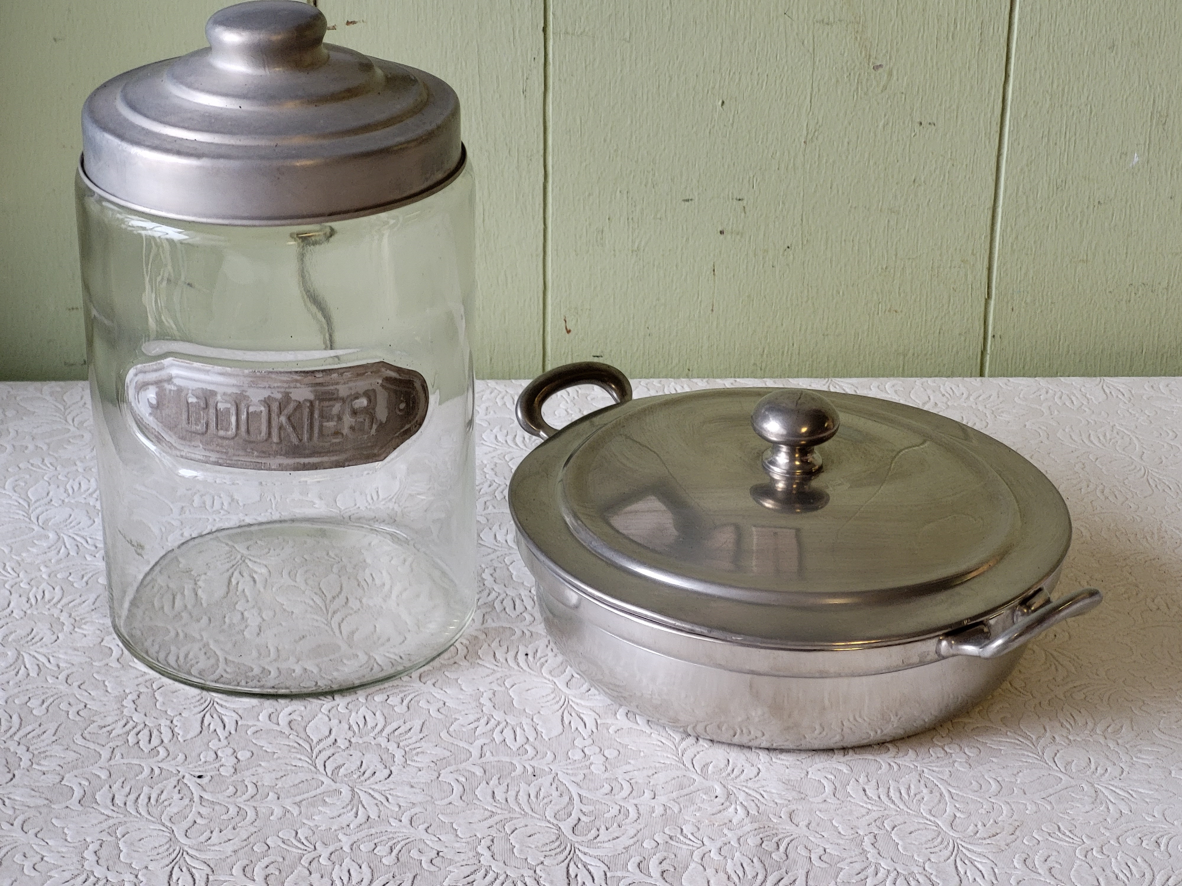 9 1/2″ tall jar w/lid and 3″ wide pewter by holland pewter both for one bid see pics