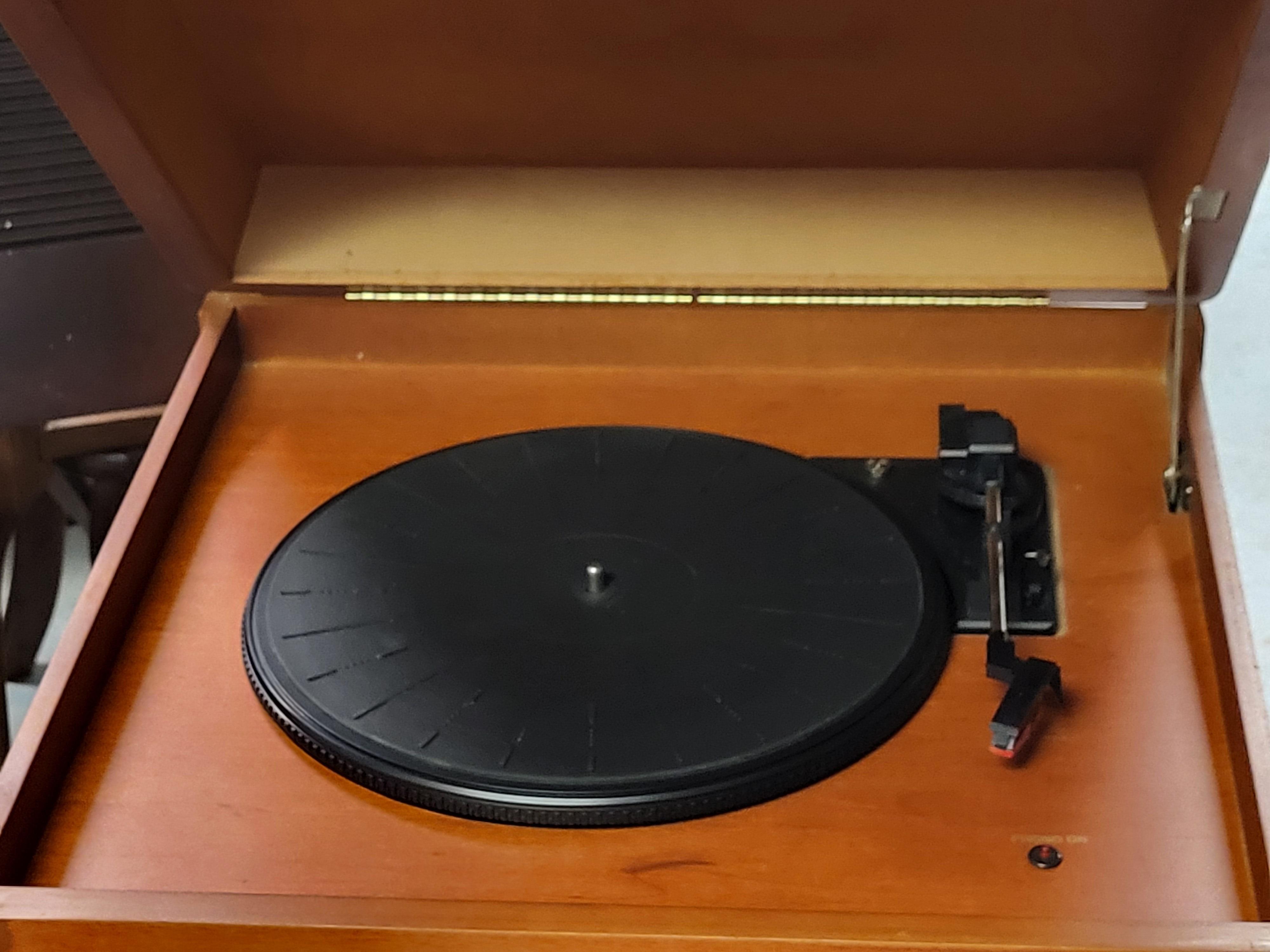 vtg lift top crosley stereo, record player, dvd, cassette radio works great sounds good record player powers up, cassette and dvd not tested 35 1/2″ tall x 19″ x 19″ in very good conditions see pics