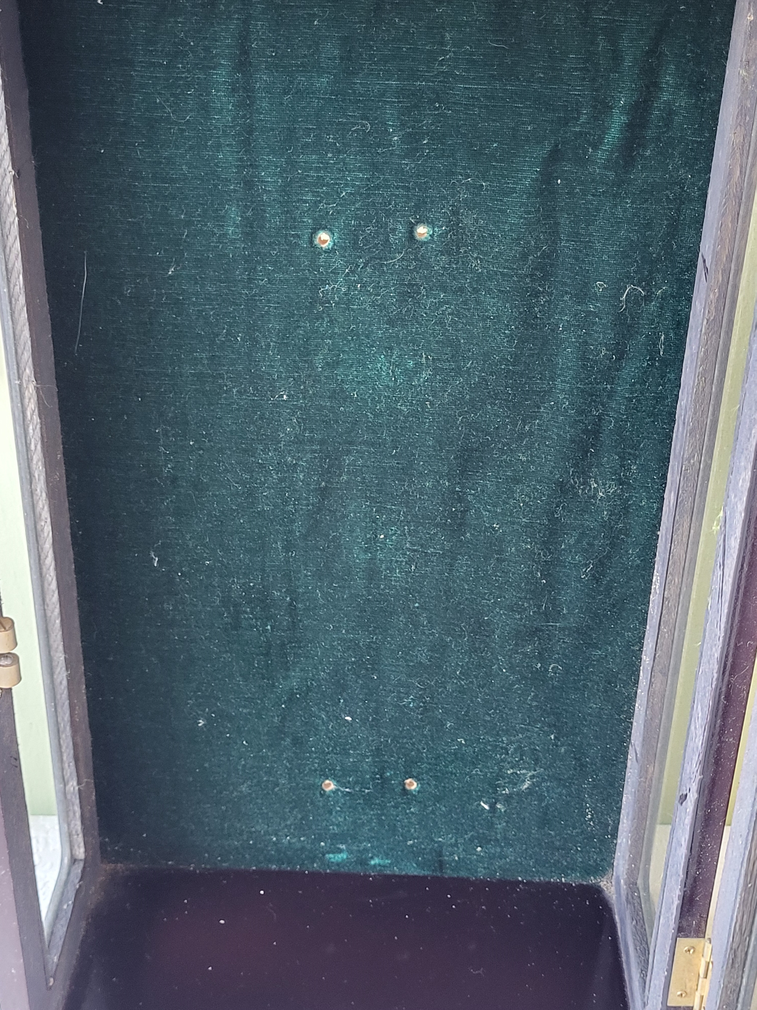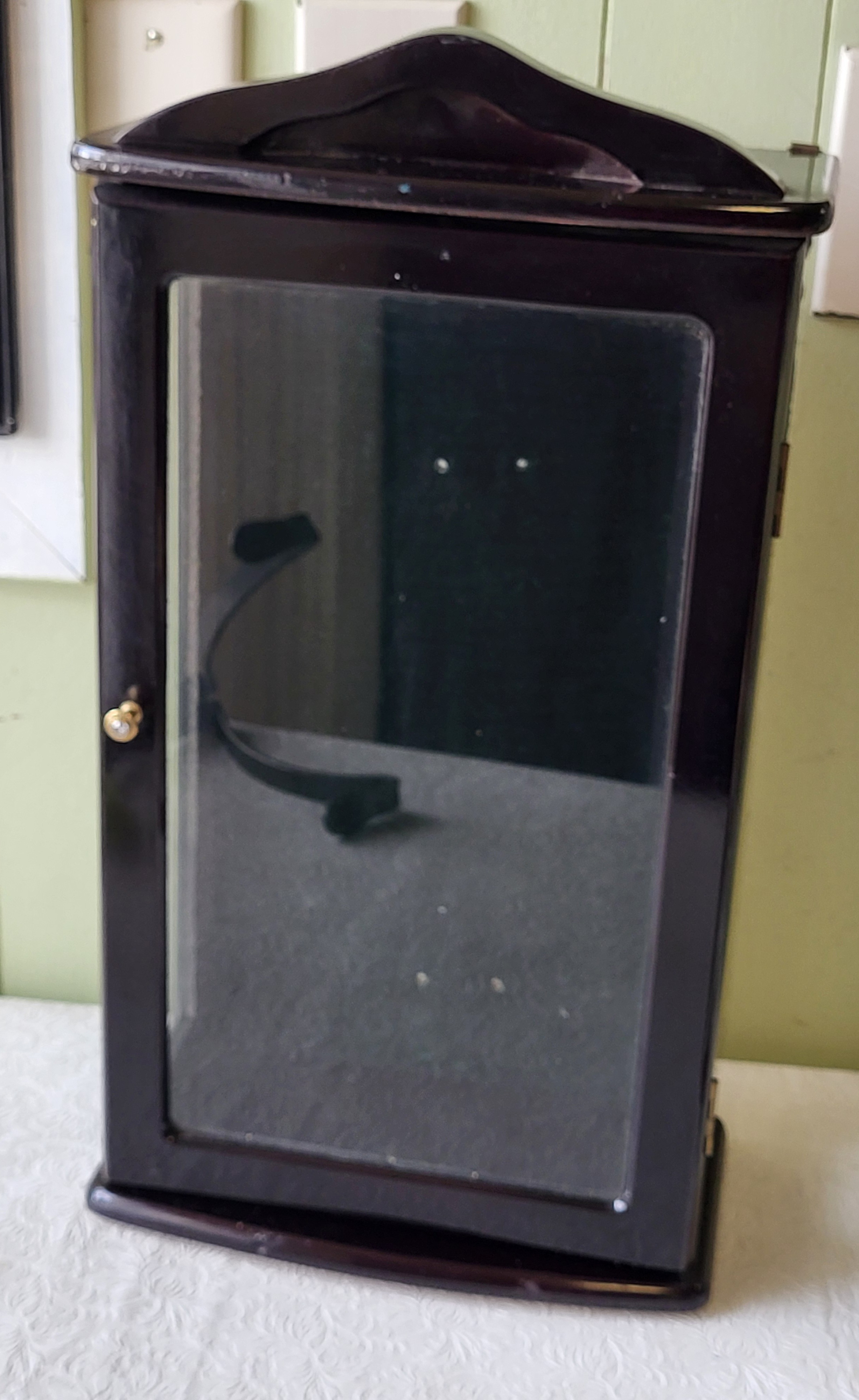 19″ tall x 11 12″ x 6″ in very good condition green felt in back with black lacquer great for that collectible or doll seepics