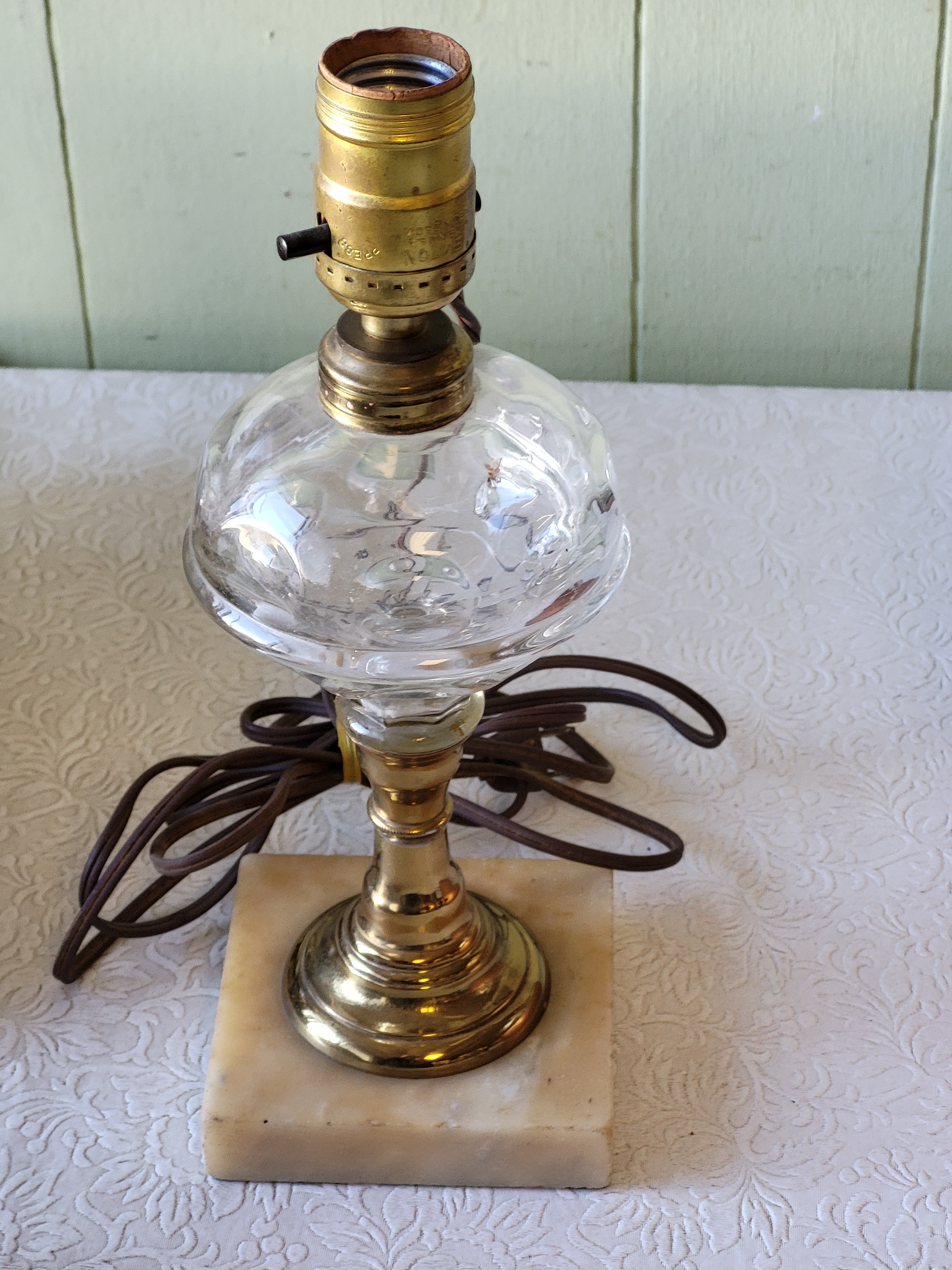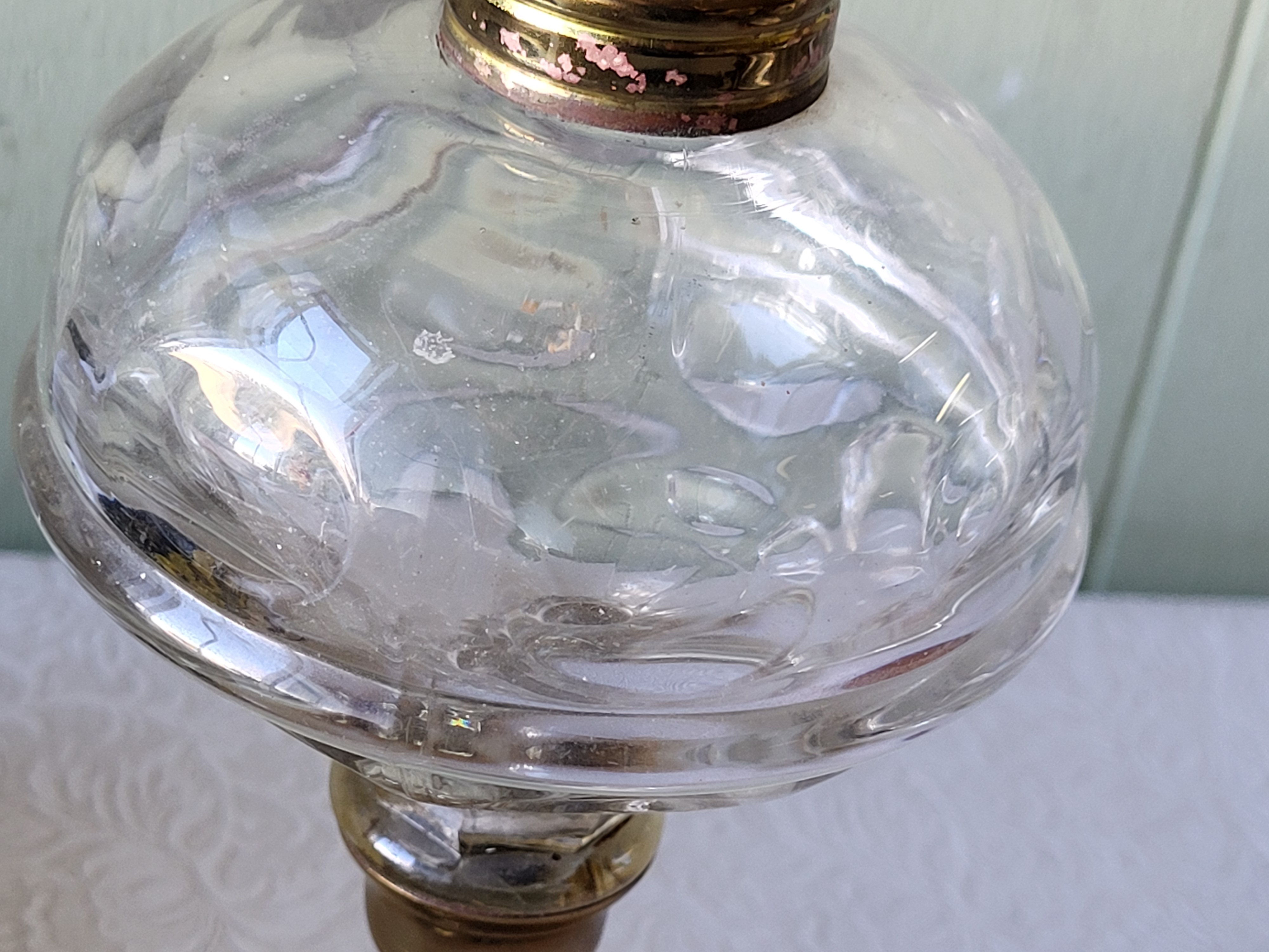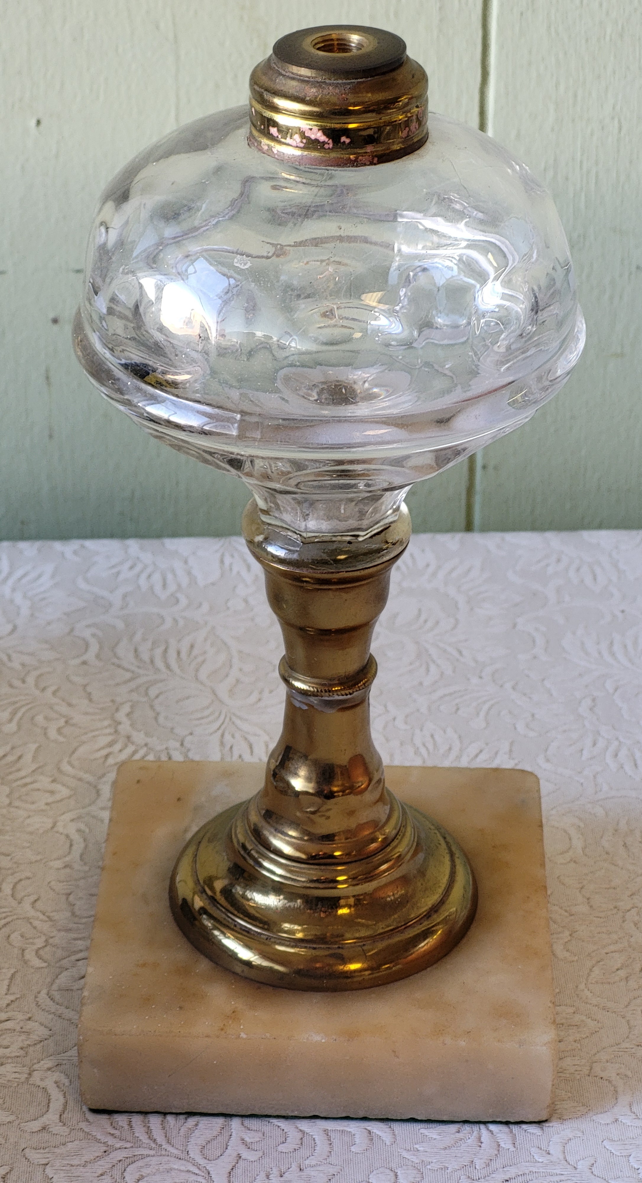 very nice lamp glass globe can use electric top or add your own burner 11 1/2″ see pics