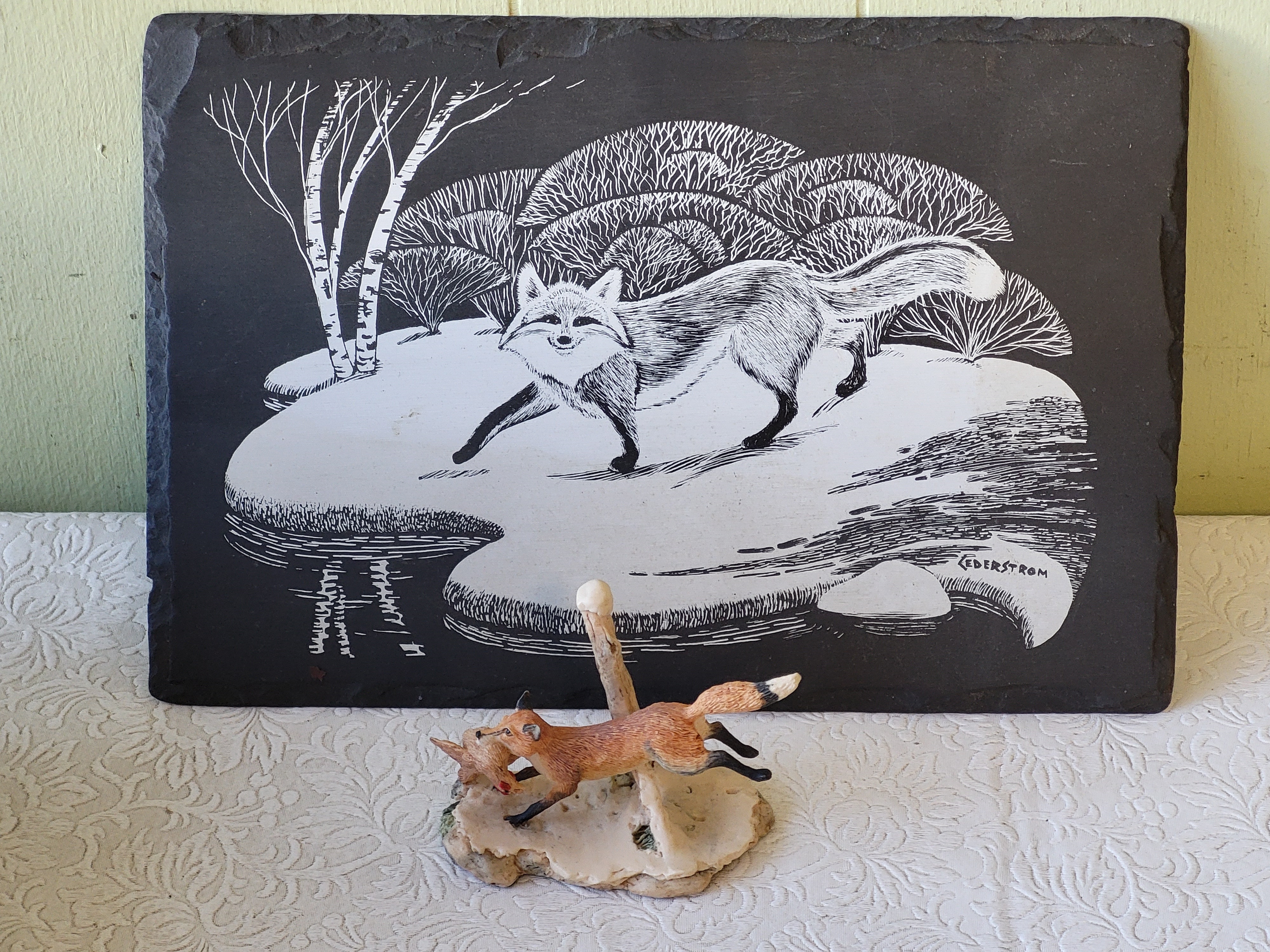 both forone bid tile 8″ x 12″ and signed cederstrom border fine arts, and schmid fox Scotland both forone bid see pics