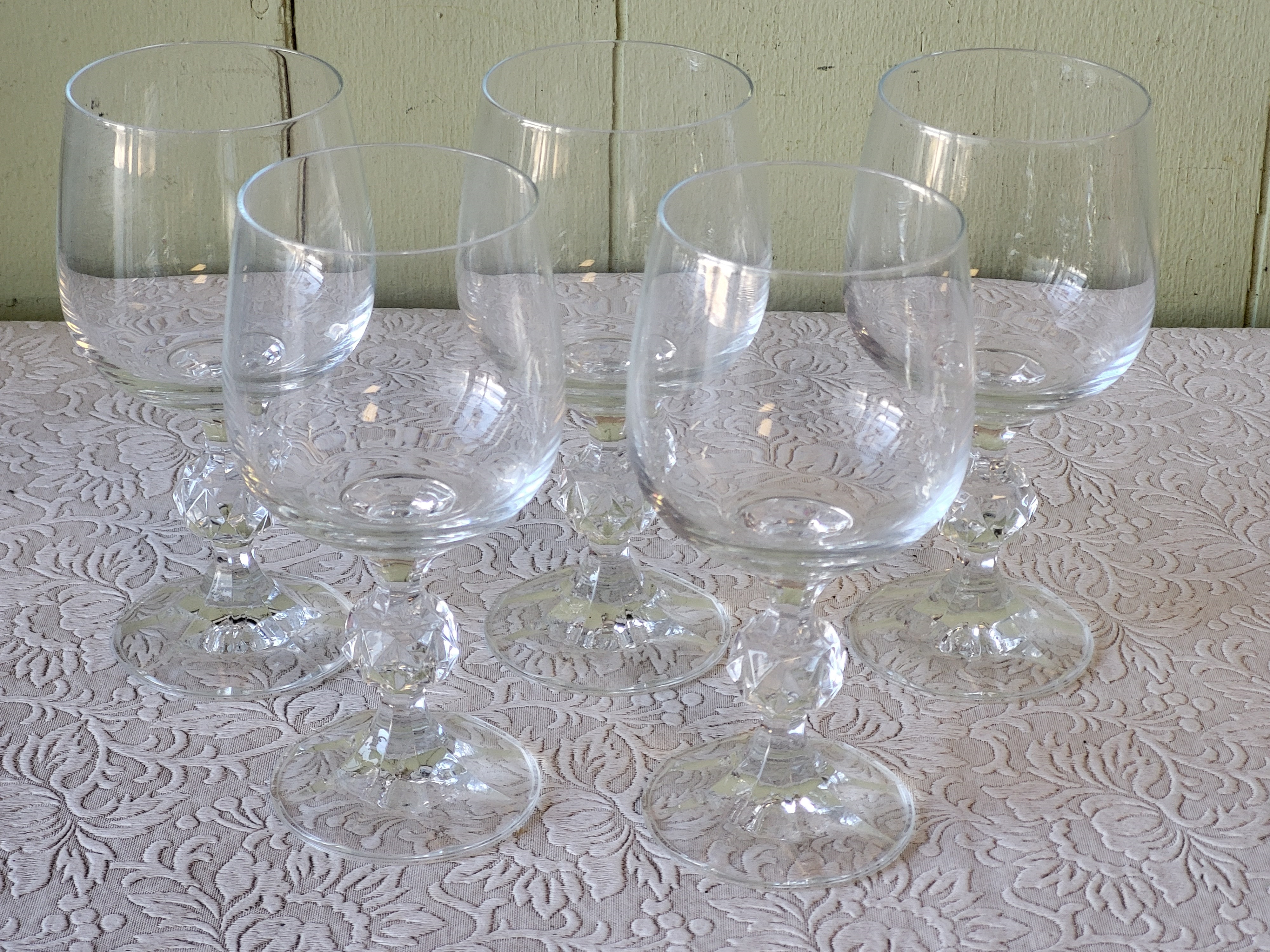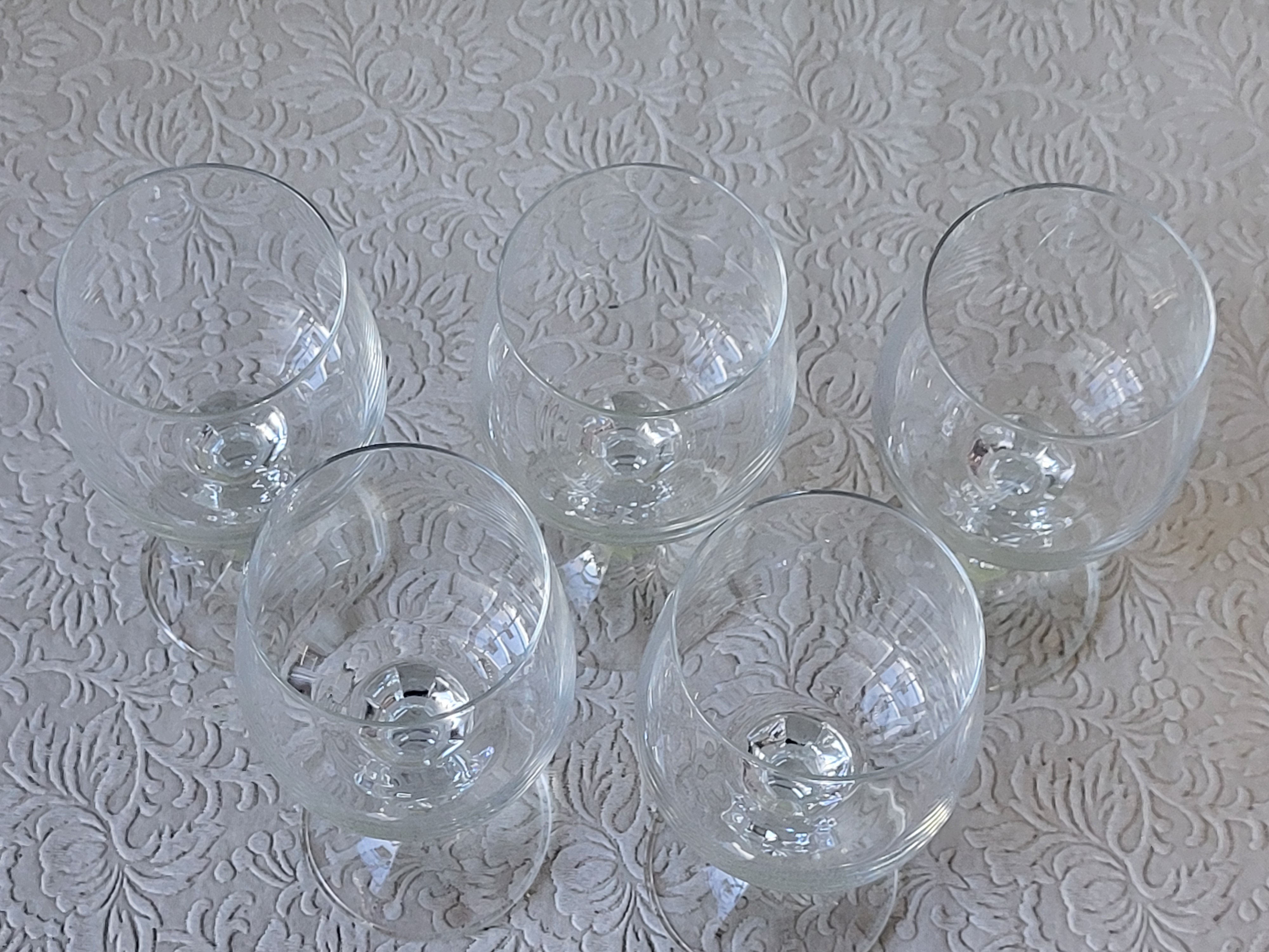 5 3/4″ tall no chips noted all 6 for one bid see pic we have 5 pictured but found another one so there is a total of 6