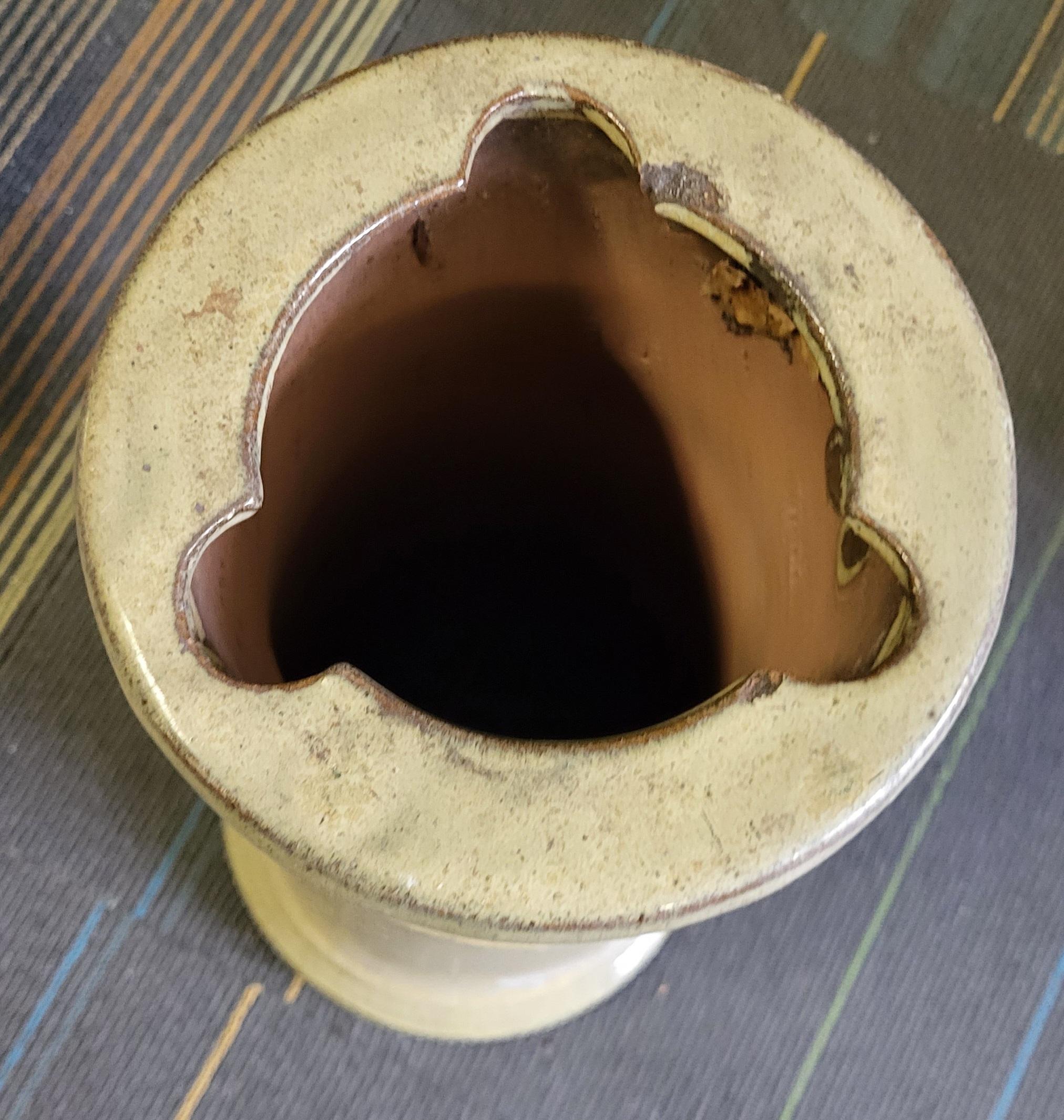 beautiful red clay glazed jardinere stand no repairs noted 20 1/2″ tall 7 1/2″ wide top see pics