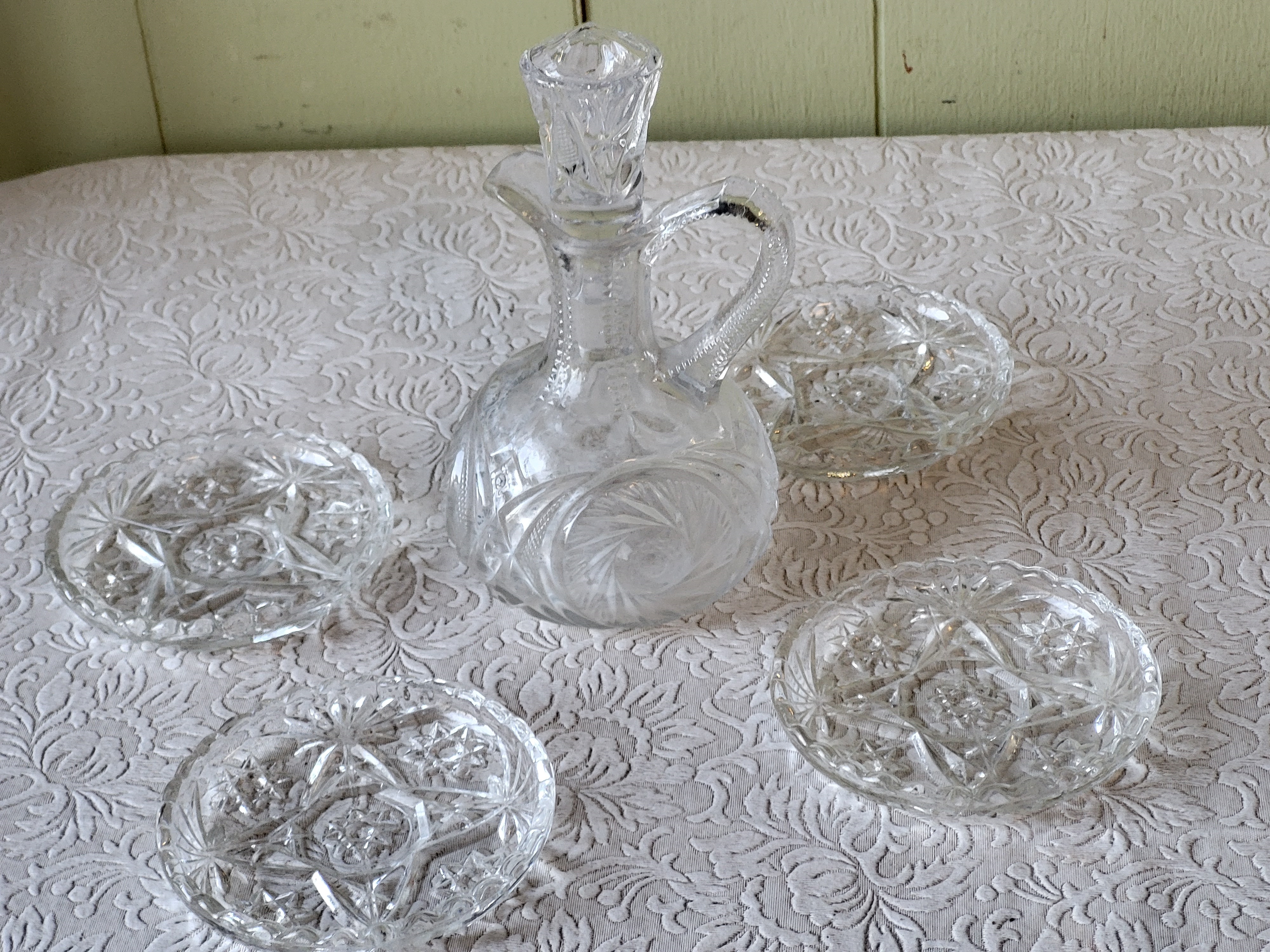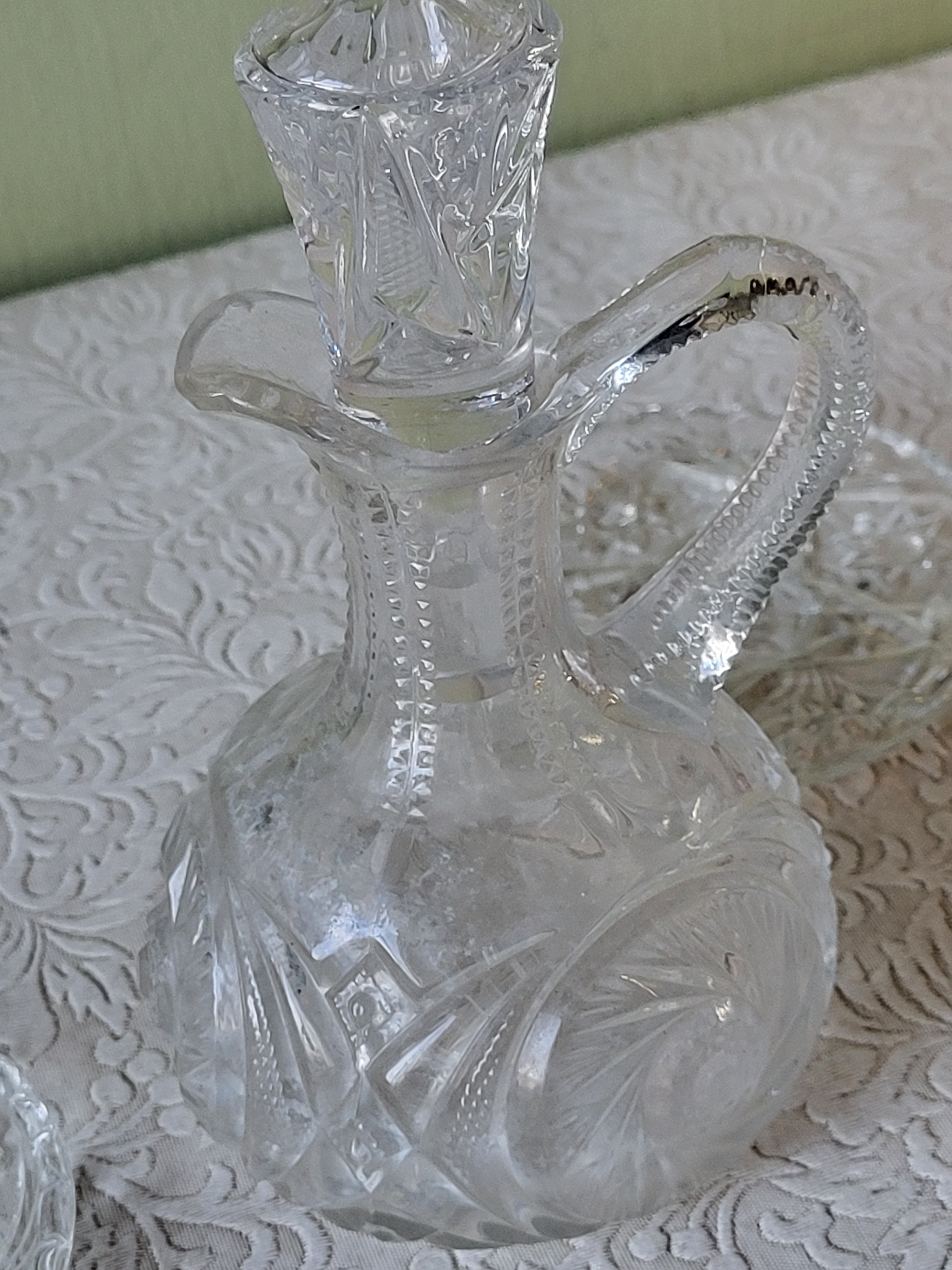 cruet is nice unsure about stopper not perfect fit? and 4 gorgeous star of david crystal coasters all for one bid seepics