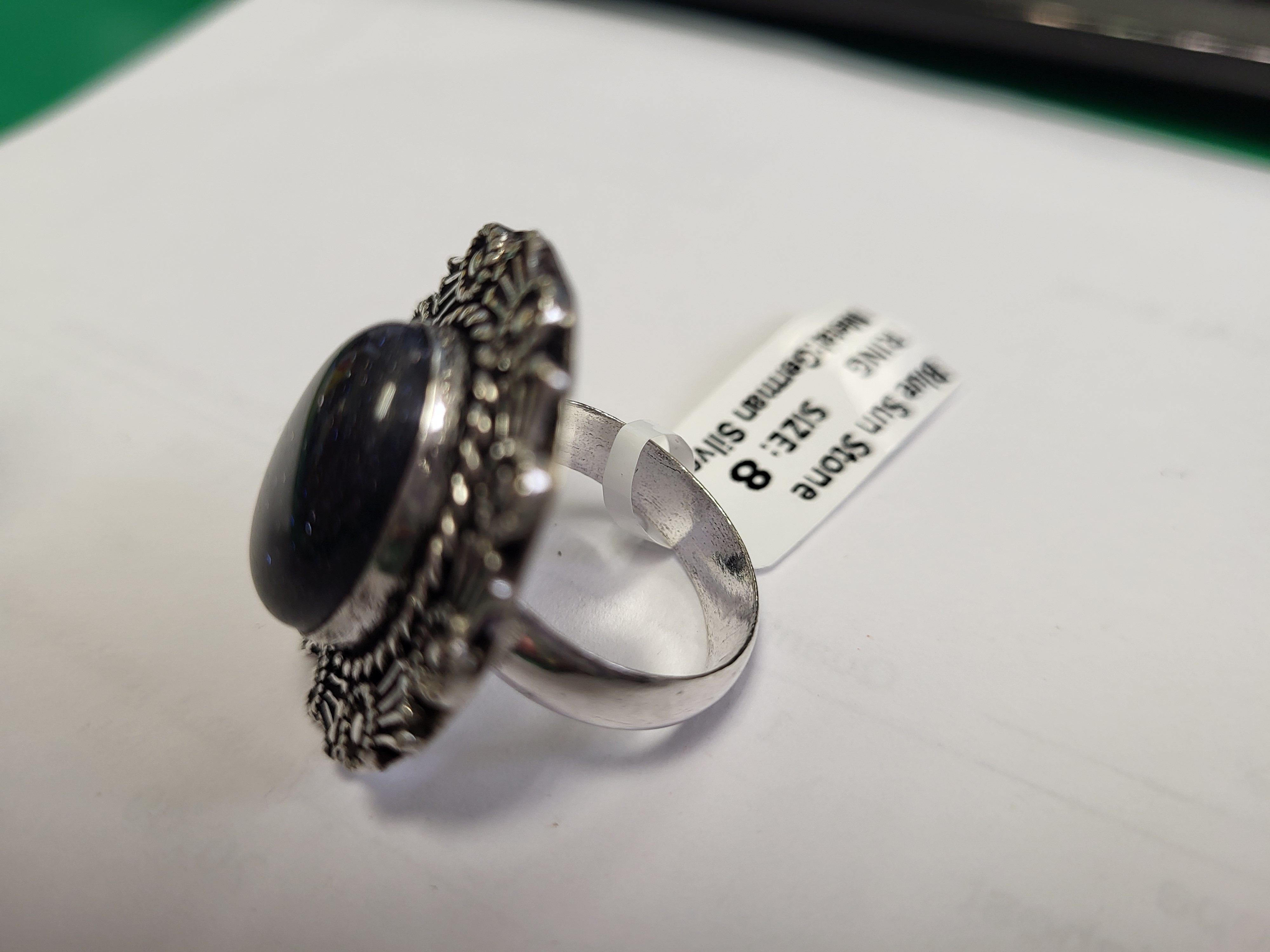 Blue Sun Stone german silver ring nwt sz8 ring unmarked seepics
