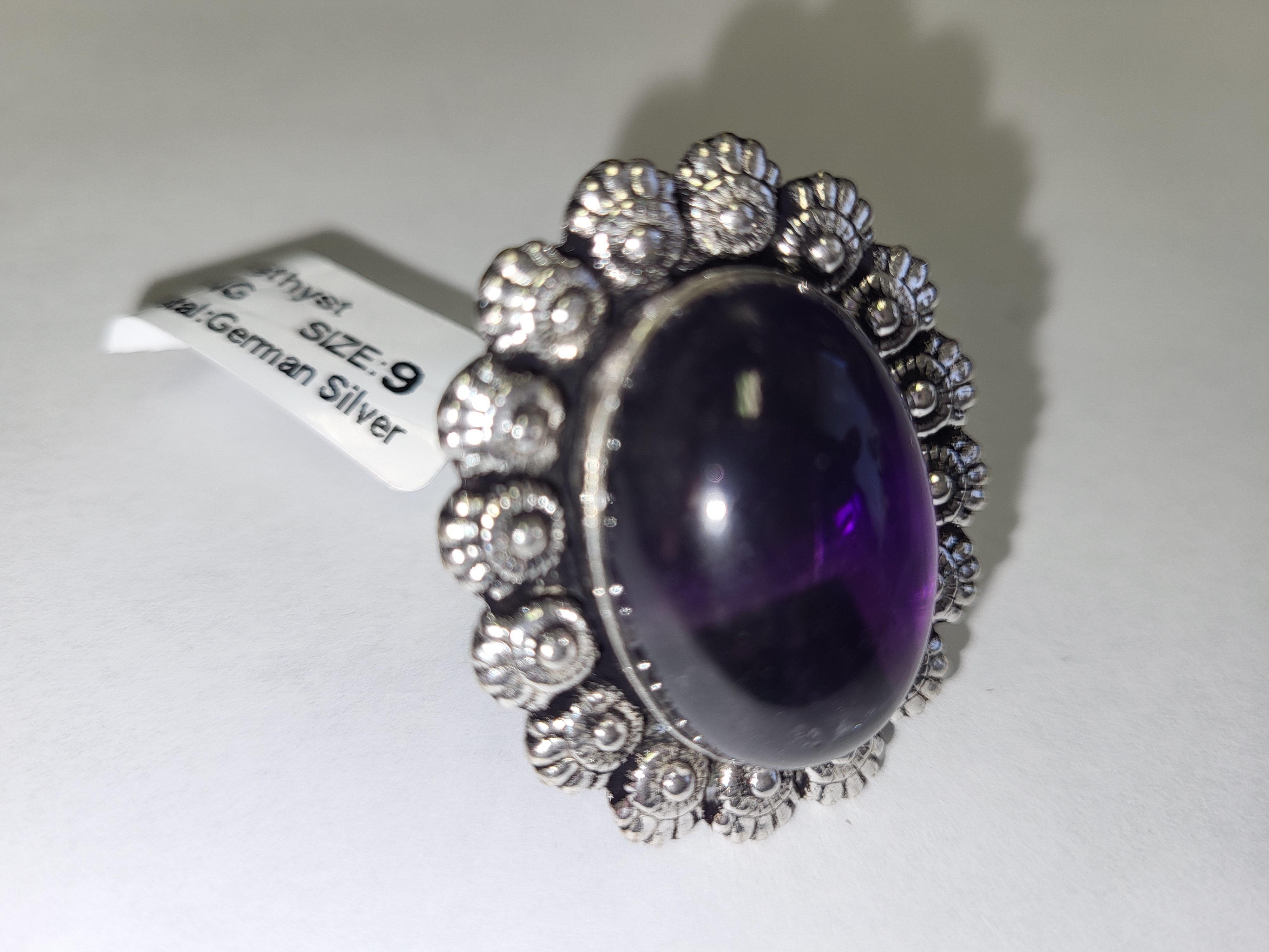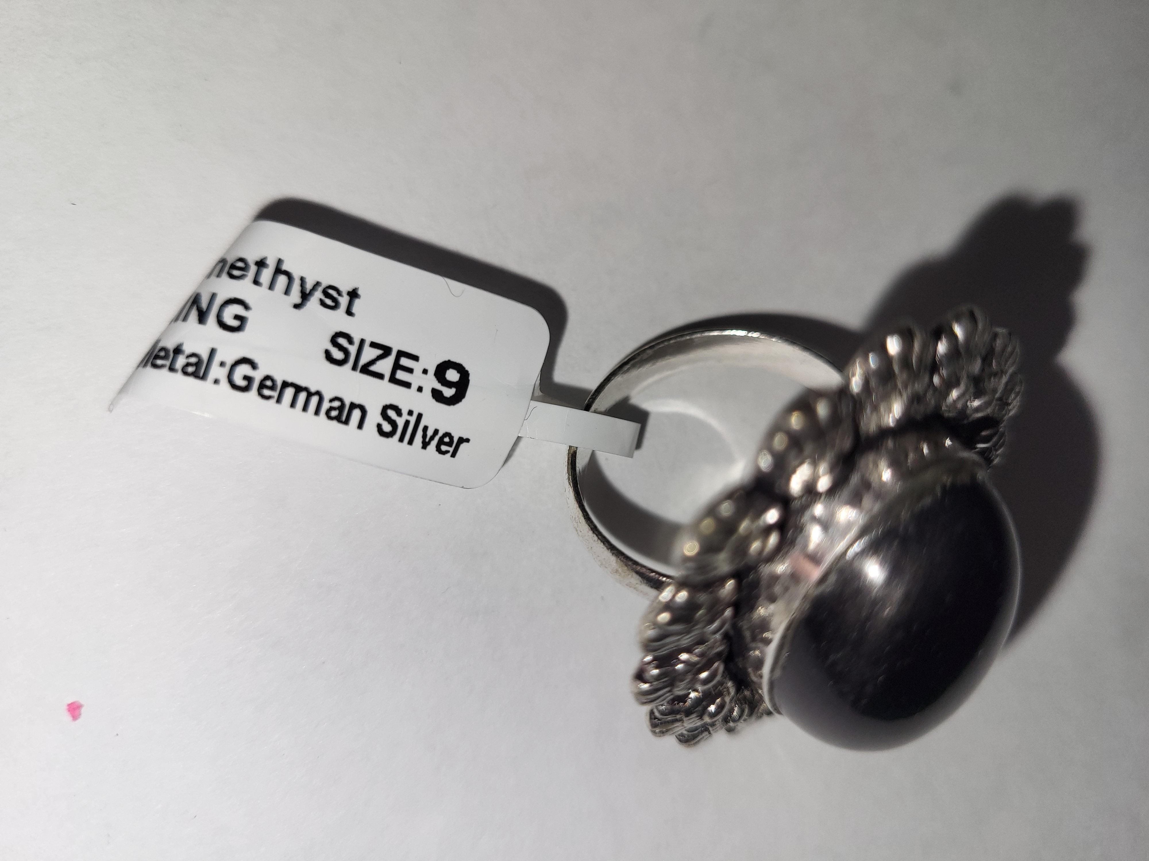 nwt german silver amethyst ring, ring unmarked non magnetic see pics