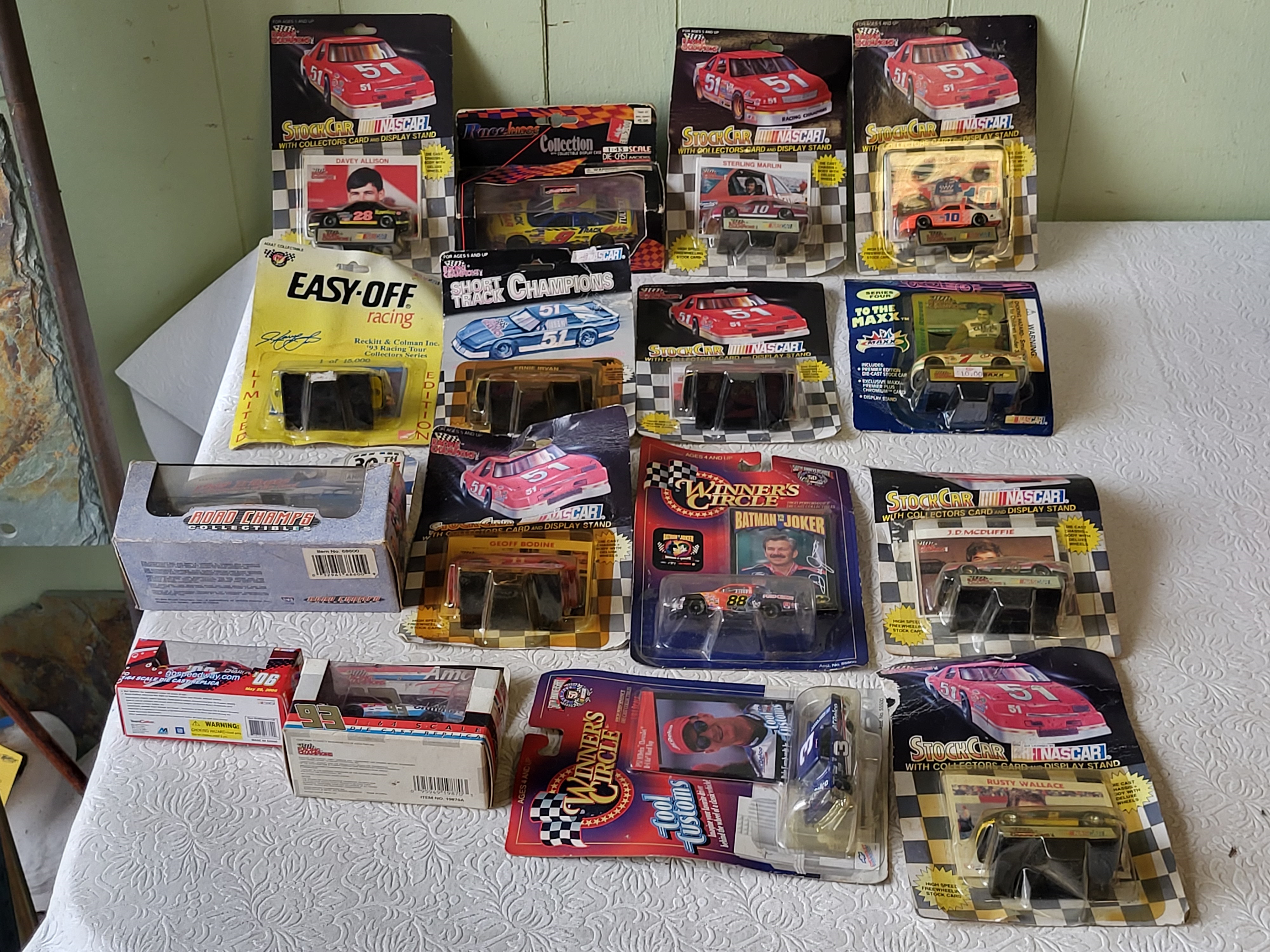 jeff burton, davey allison, dale jarrett, rusty wallace, slevi reeves, geoff bodine, 69 camaro tribute, all in orig pakgs 1:64 and larger too! all 16 forone bid see pic