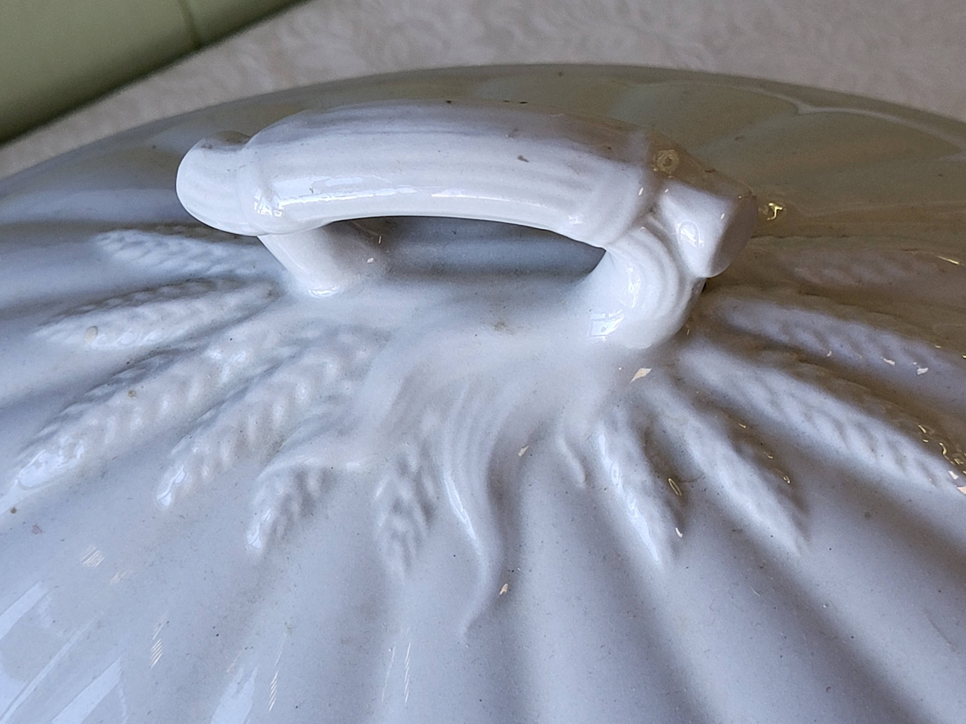 17″ wide tray x 12 1/2″ tall to handle on lid no repairs noted see pics