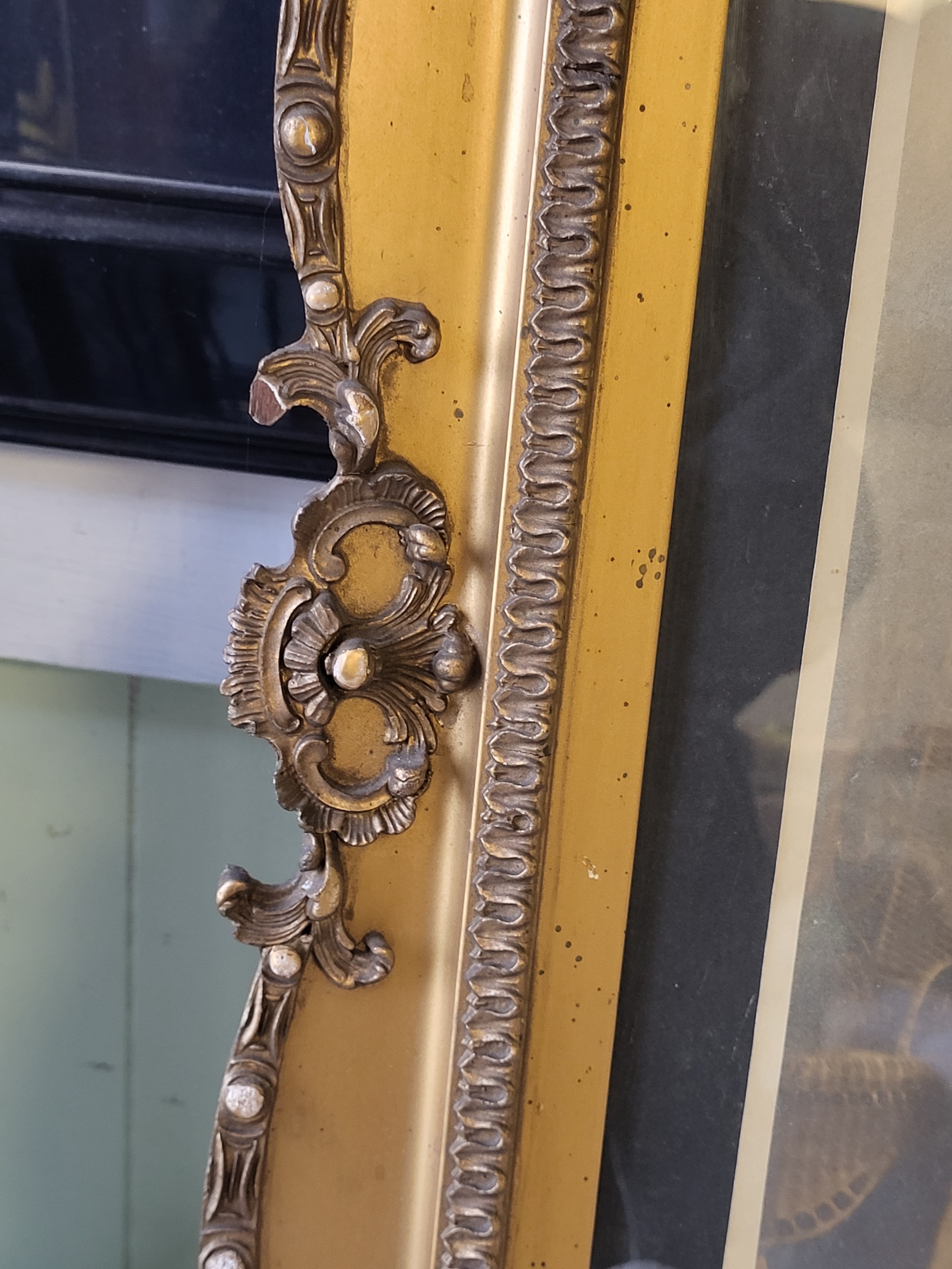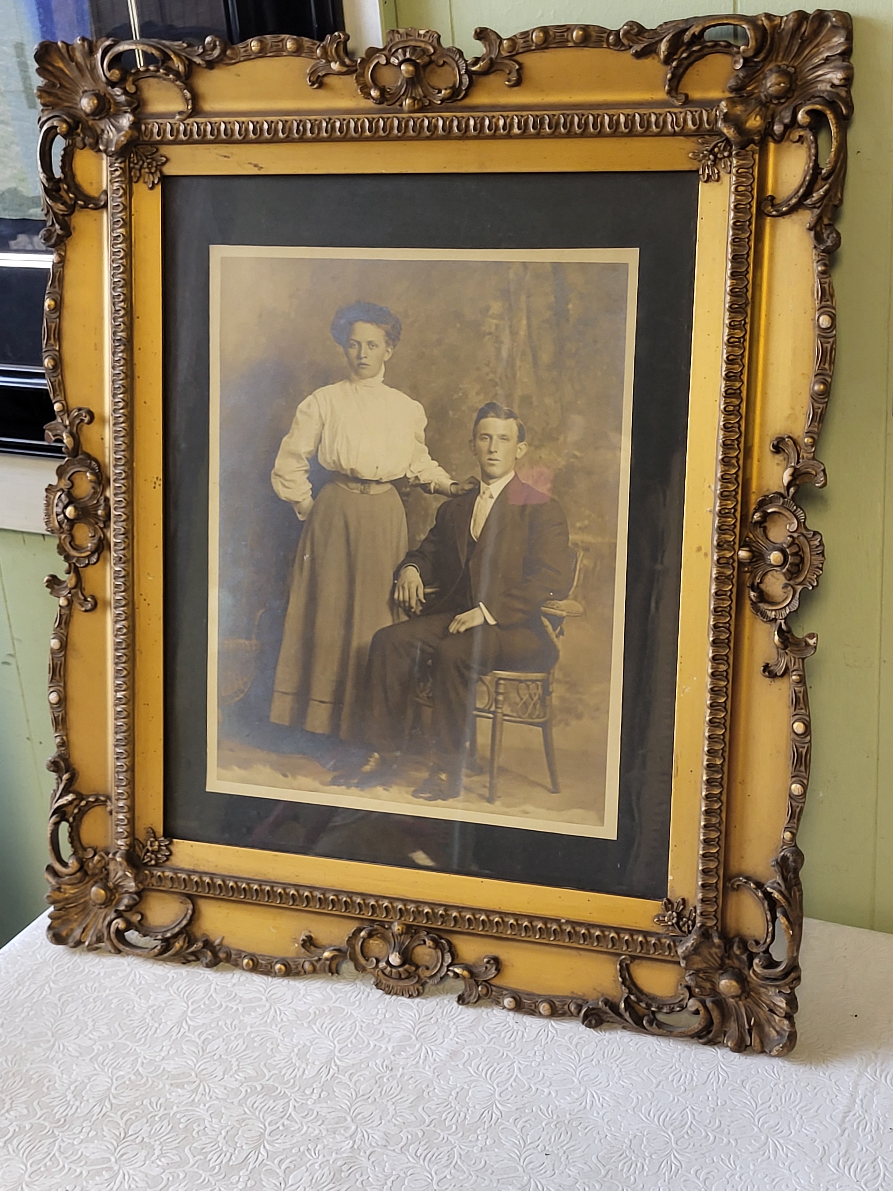 27″ x 23″ frame size and this frame is gorgeous with original rolled glass too see pics