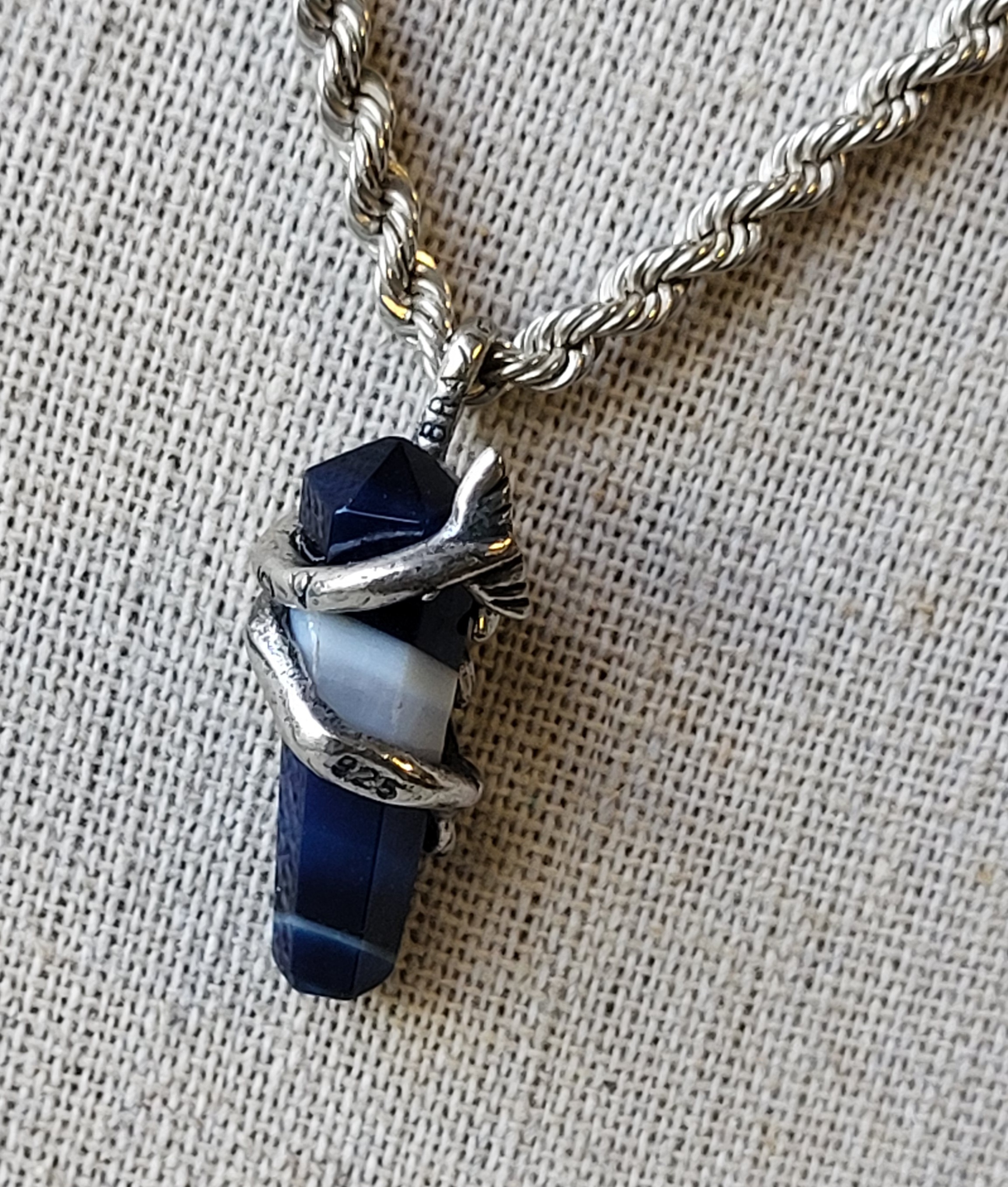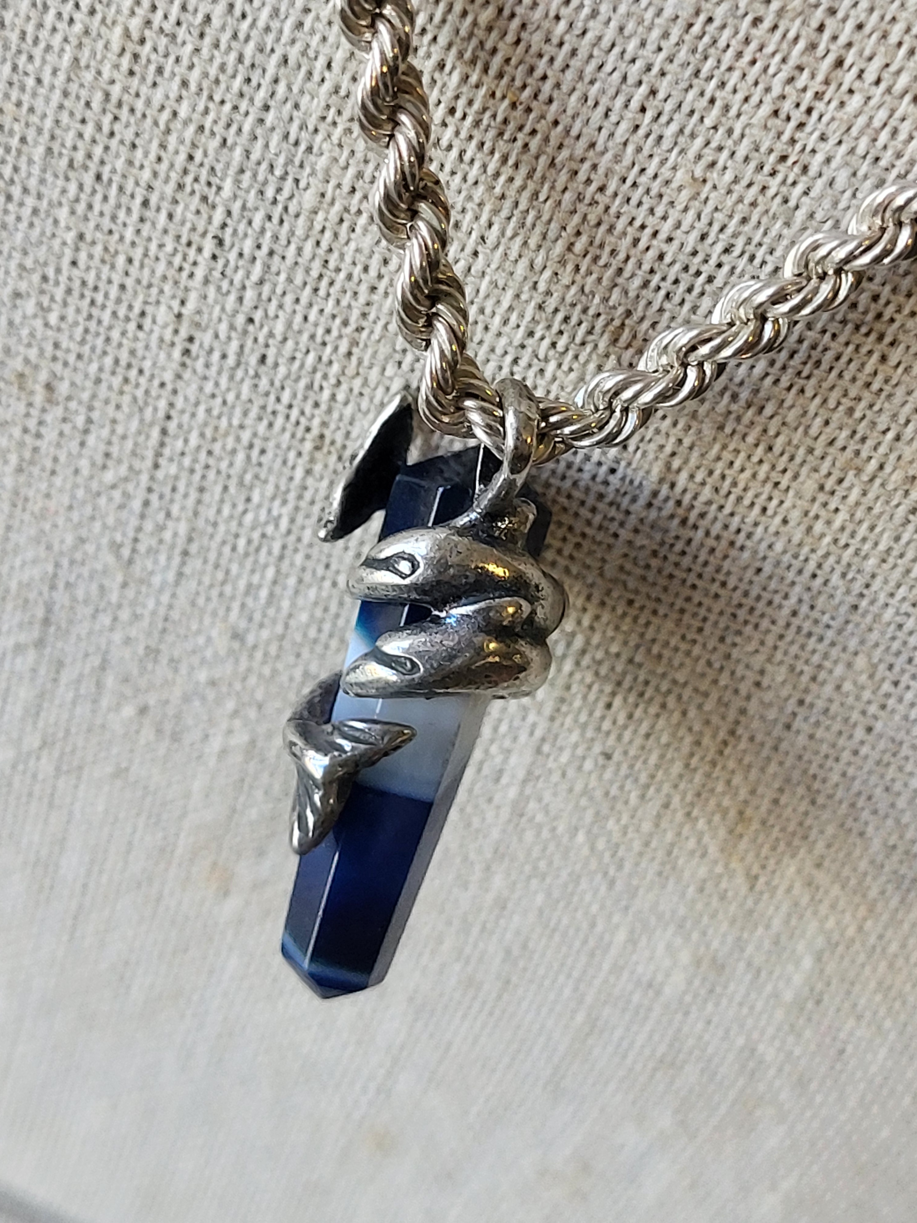 18″ rope twist necklace with sterling & lapis pendant wrapped with sterling dolphin 17.2 grams total very nice see pics