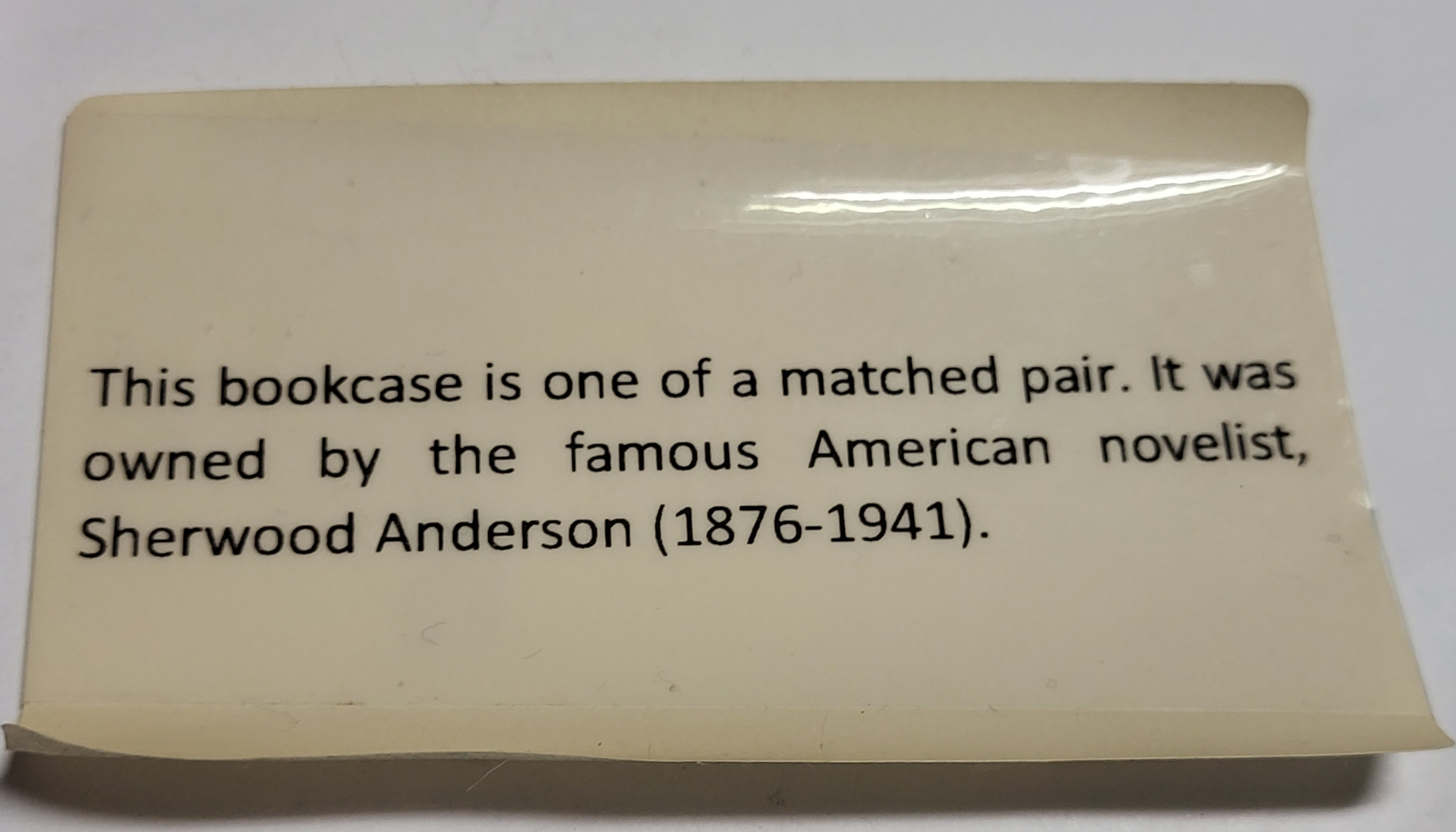 previously owned by sherwood anderson 1876-1941! in vg conditon 41″ tall x 32 1/2″ x 14″ see tag that was on the back we have only 1 bookcase see pics