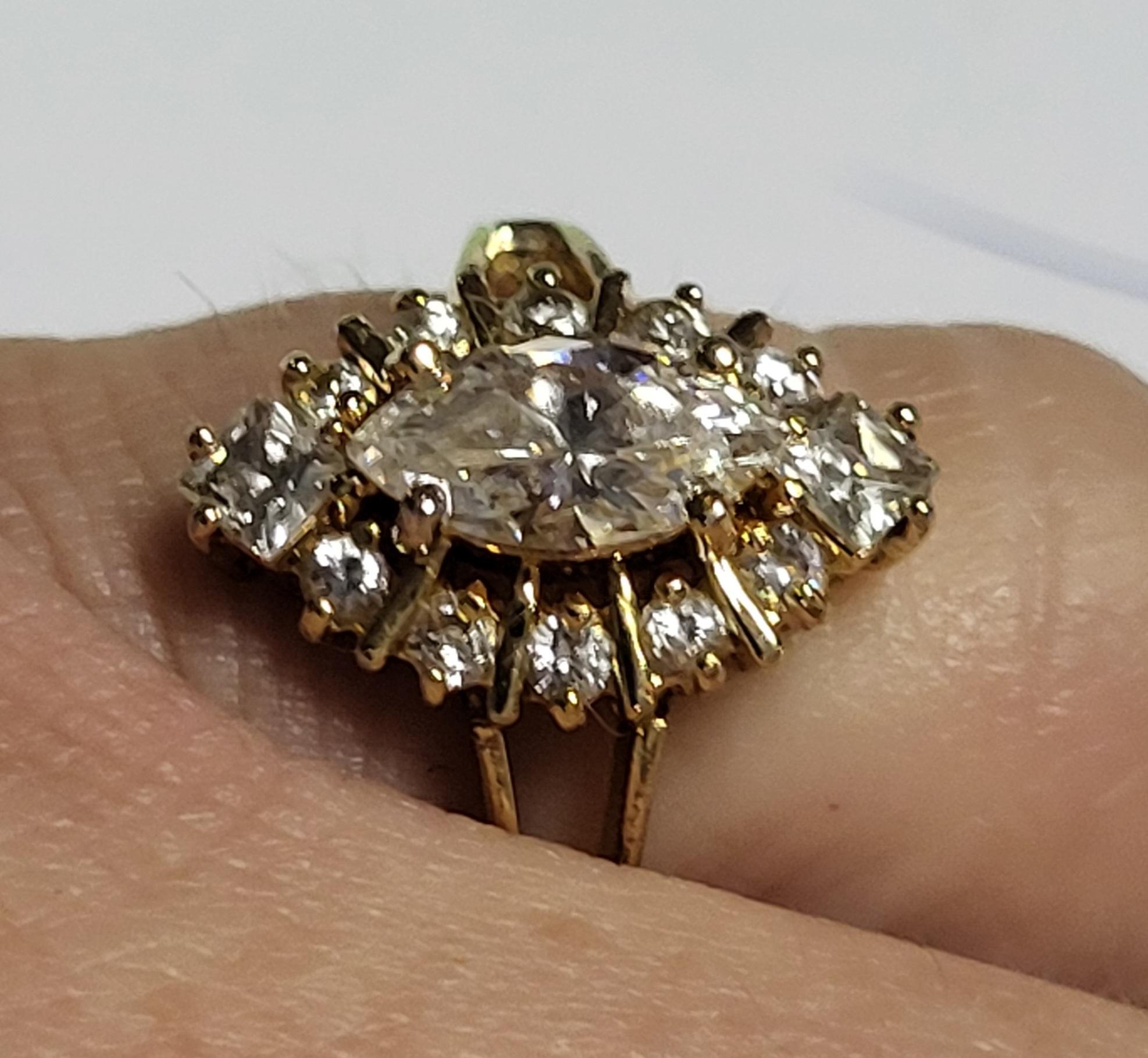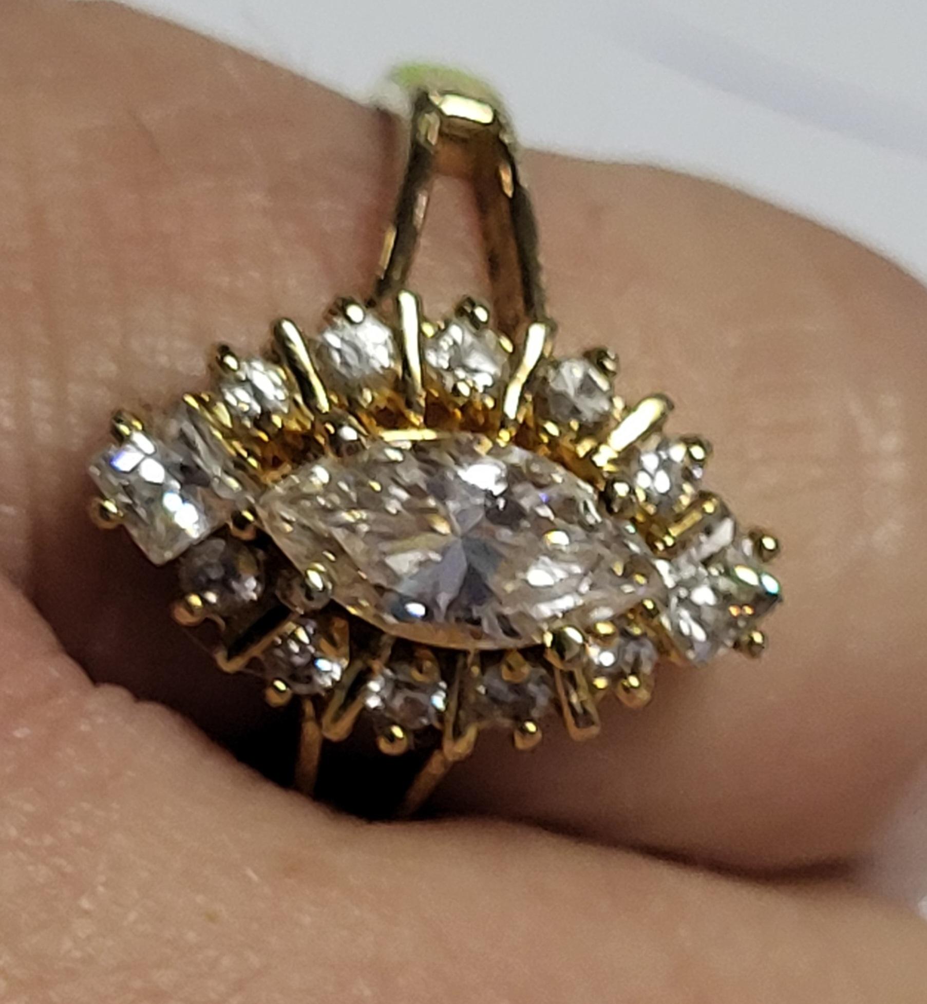 gorgeous vtg estate ring sz 8 round brilliant princess and marquis 18k hg over sterling light loss inside korea see pics
