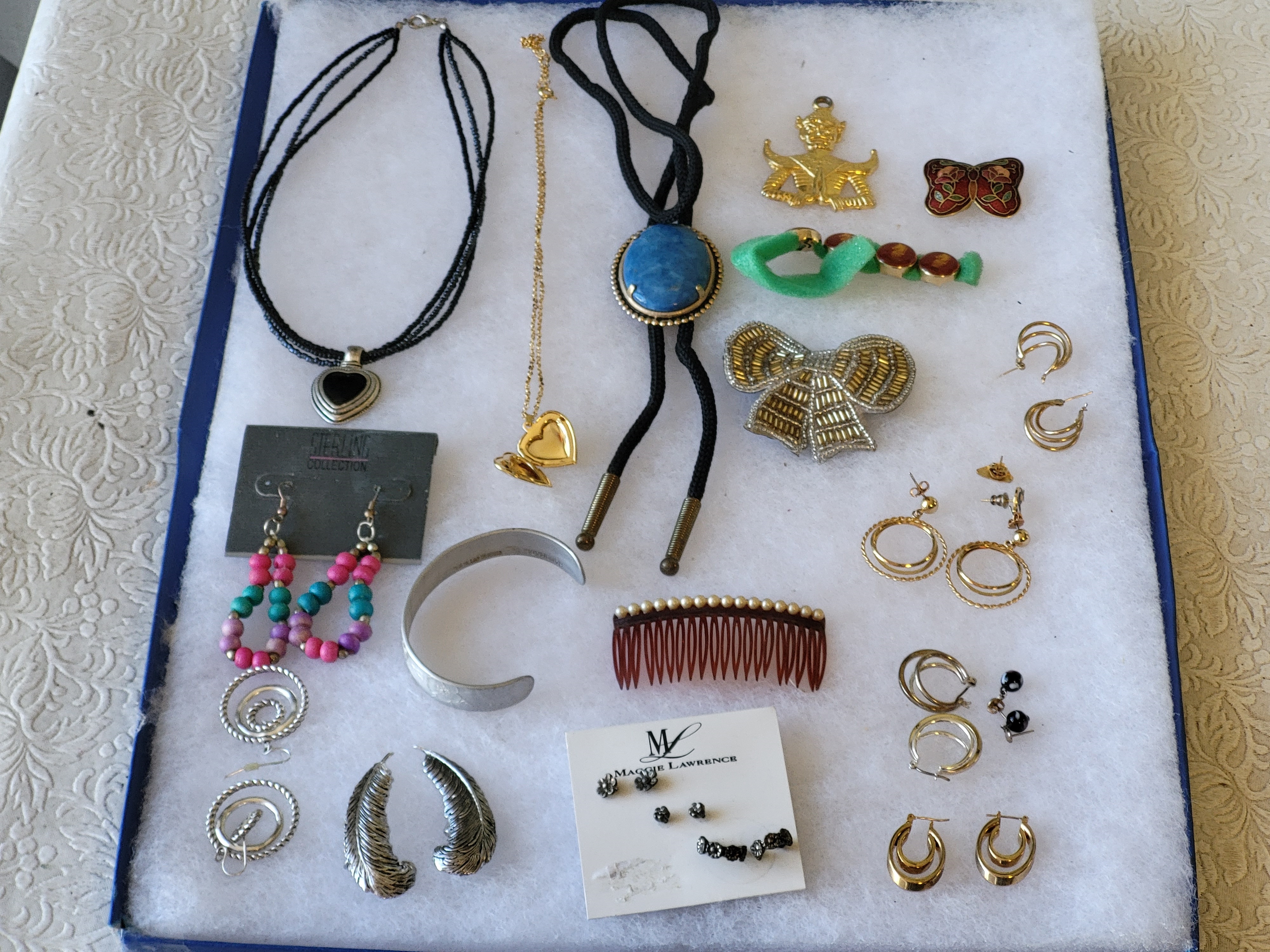 estate jewelry lot turquoise bolo, earrings, bracelet, deity prince sterling too