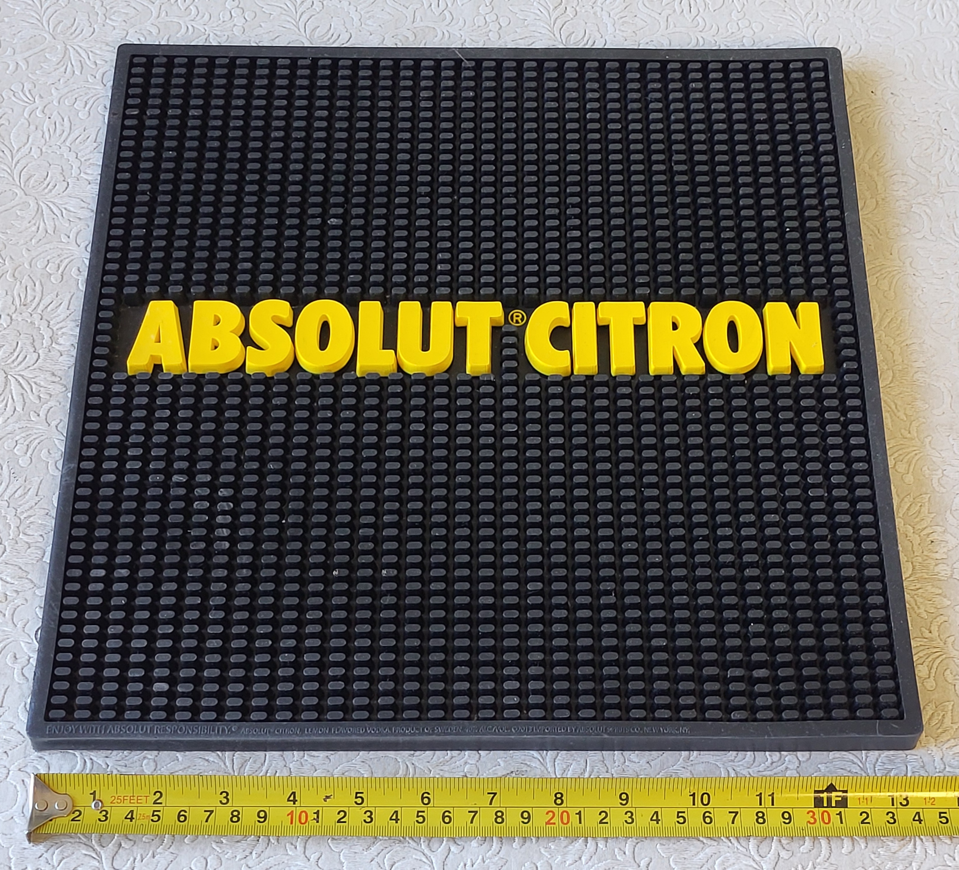 13 1/2″ x 13 1/2″ x 1/2″ thick looks new! absolut vodka citron mat see pics