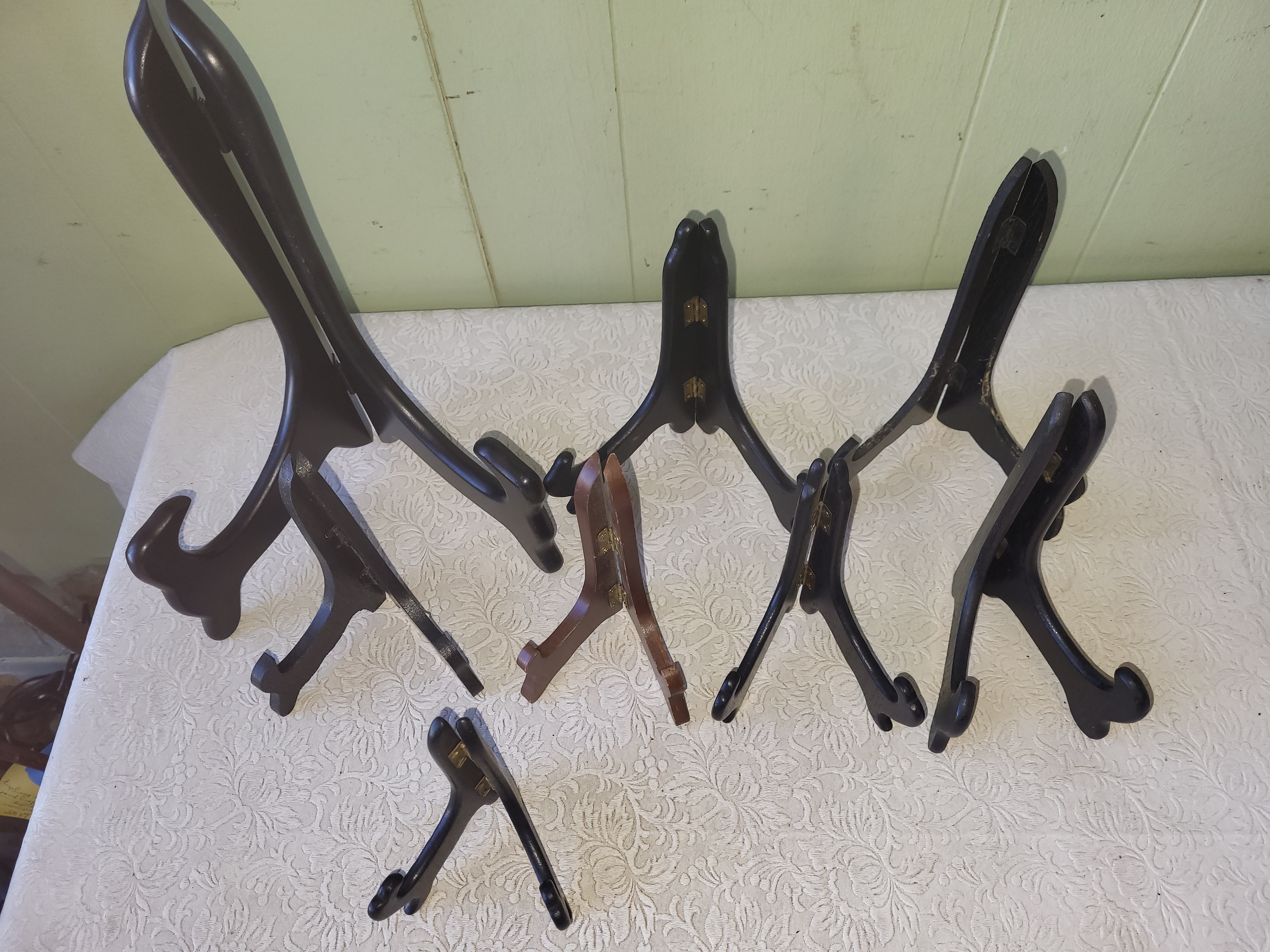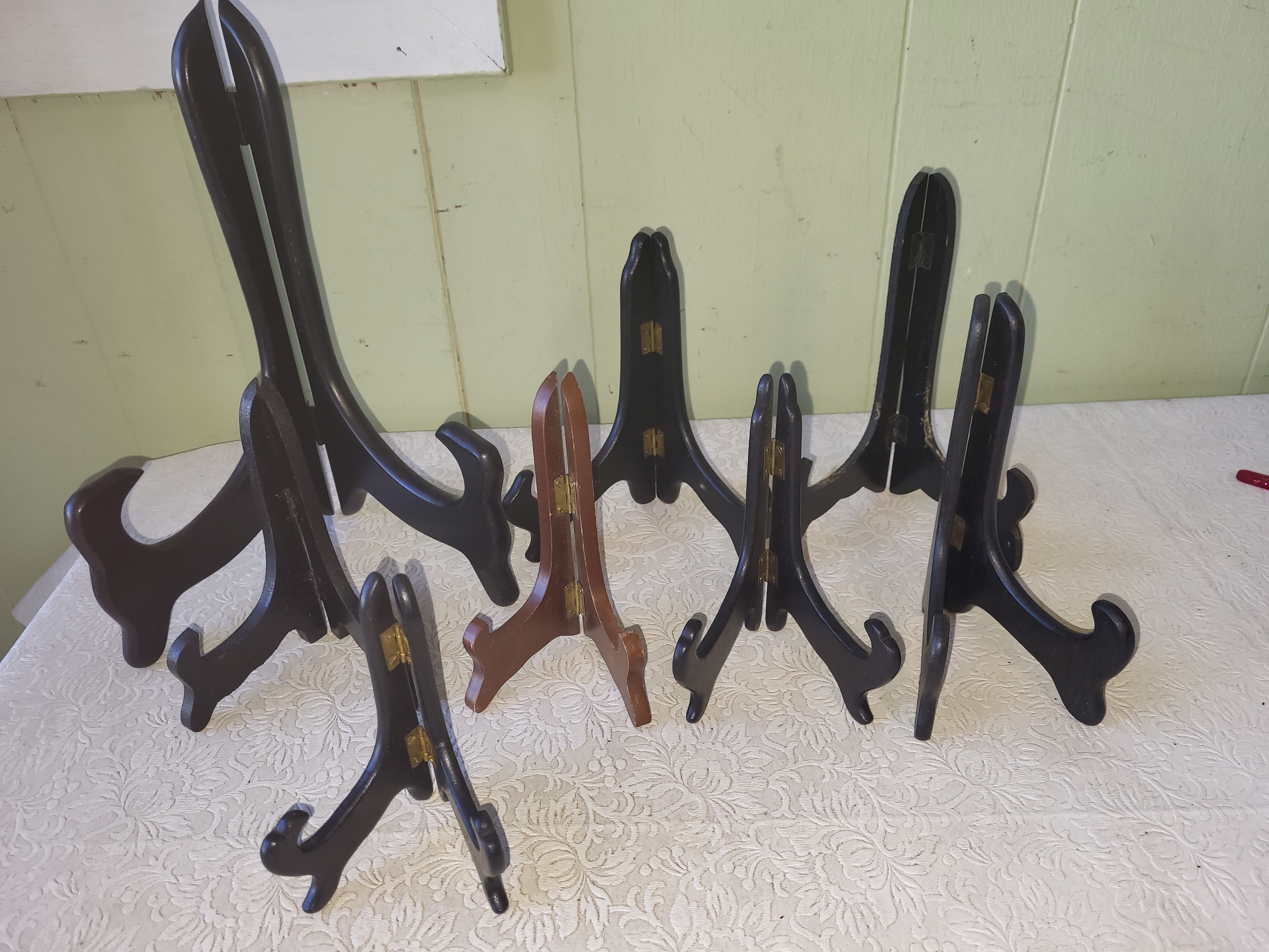 lot of 8 easels, plates stands all different sizes from estate seepics
