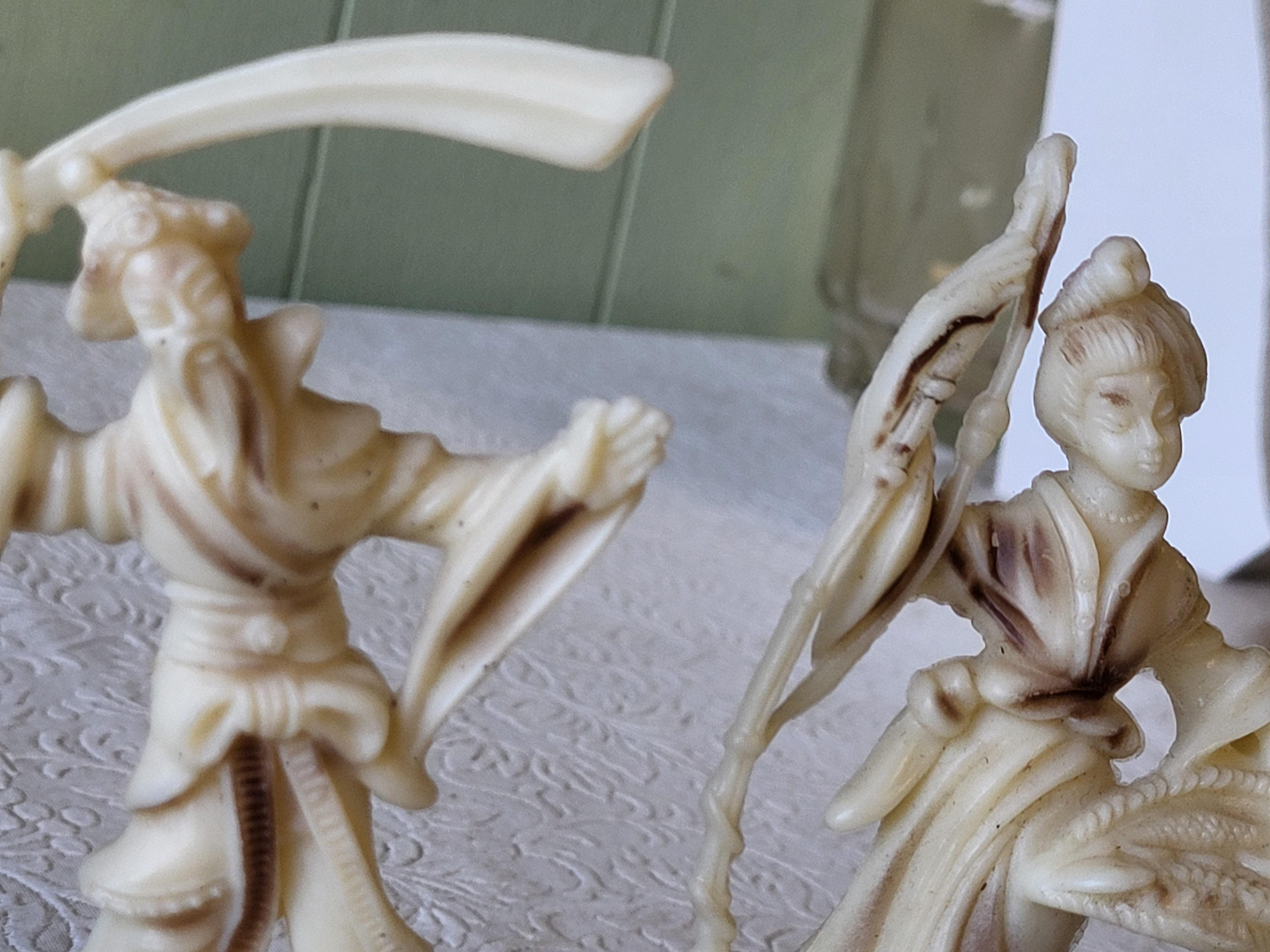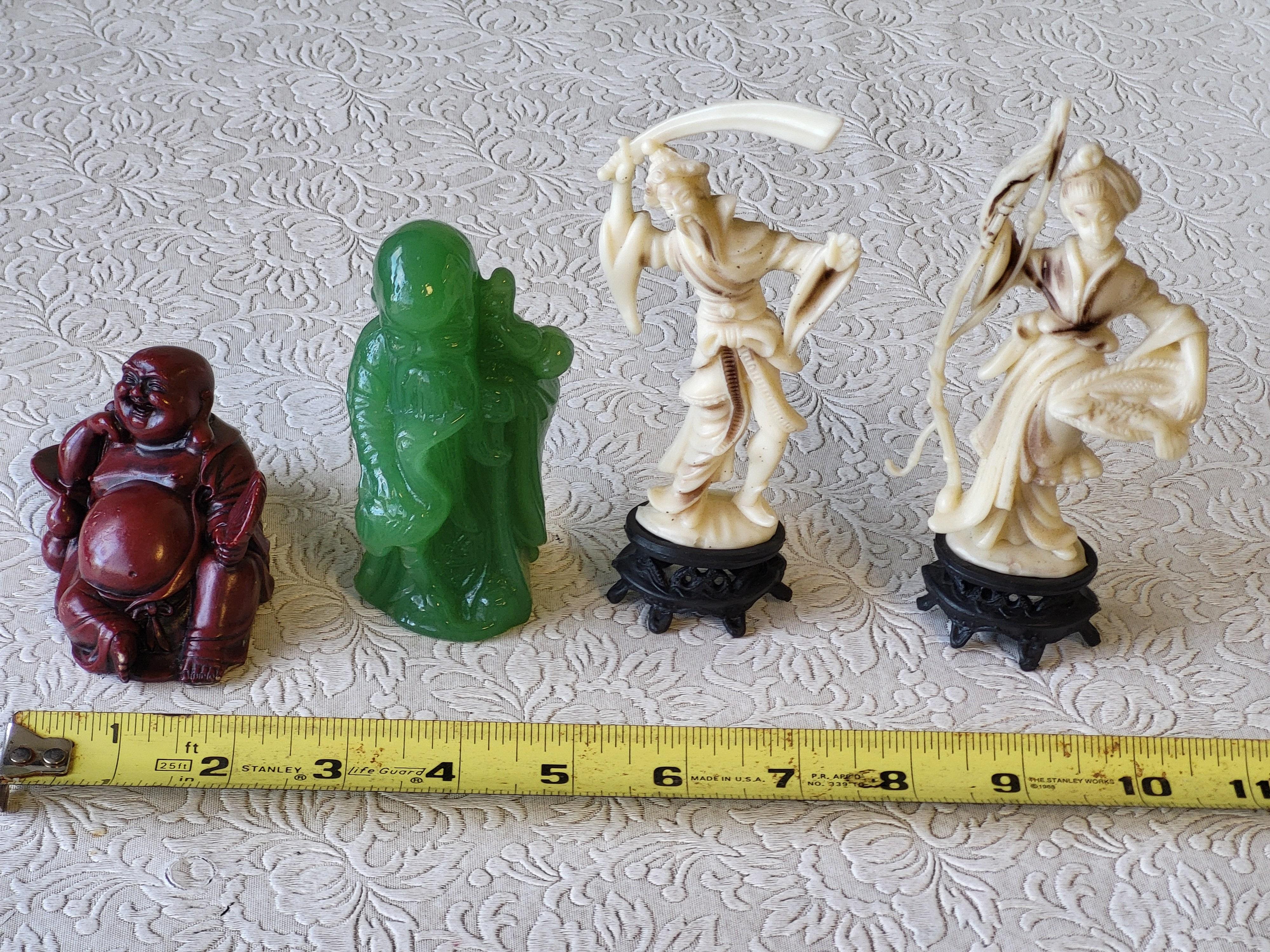 green glass fukurokuju lucky god, buddha and 2 celluloid? figurines all 4 for one bid! see pics