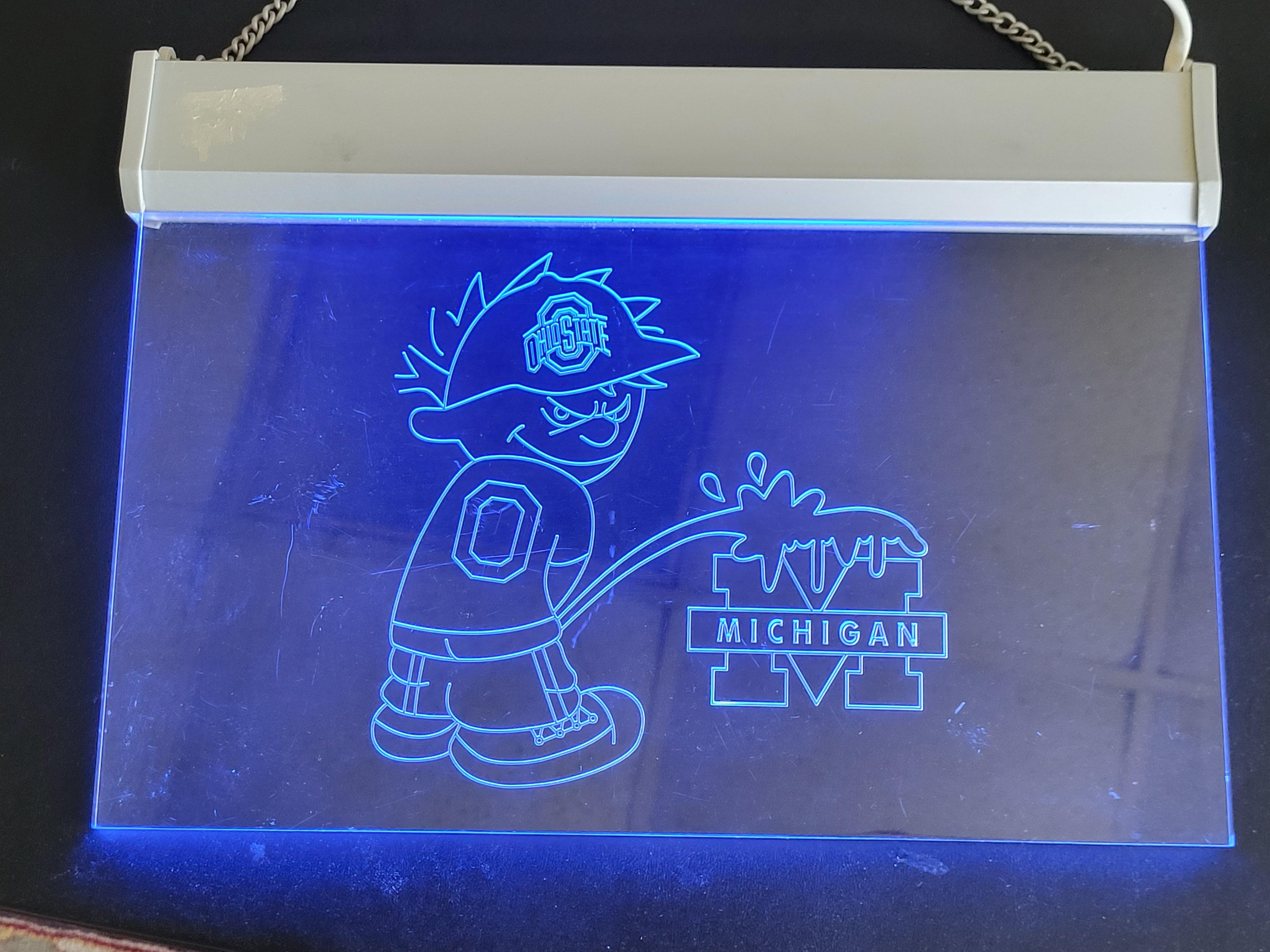 great for ohio state fan, or addition to your bar signs 12″ x 8 1/2″ plugs in 110 volt works great! seepics