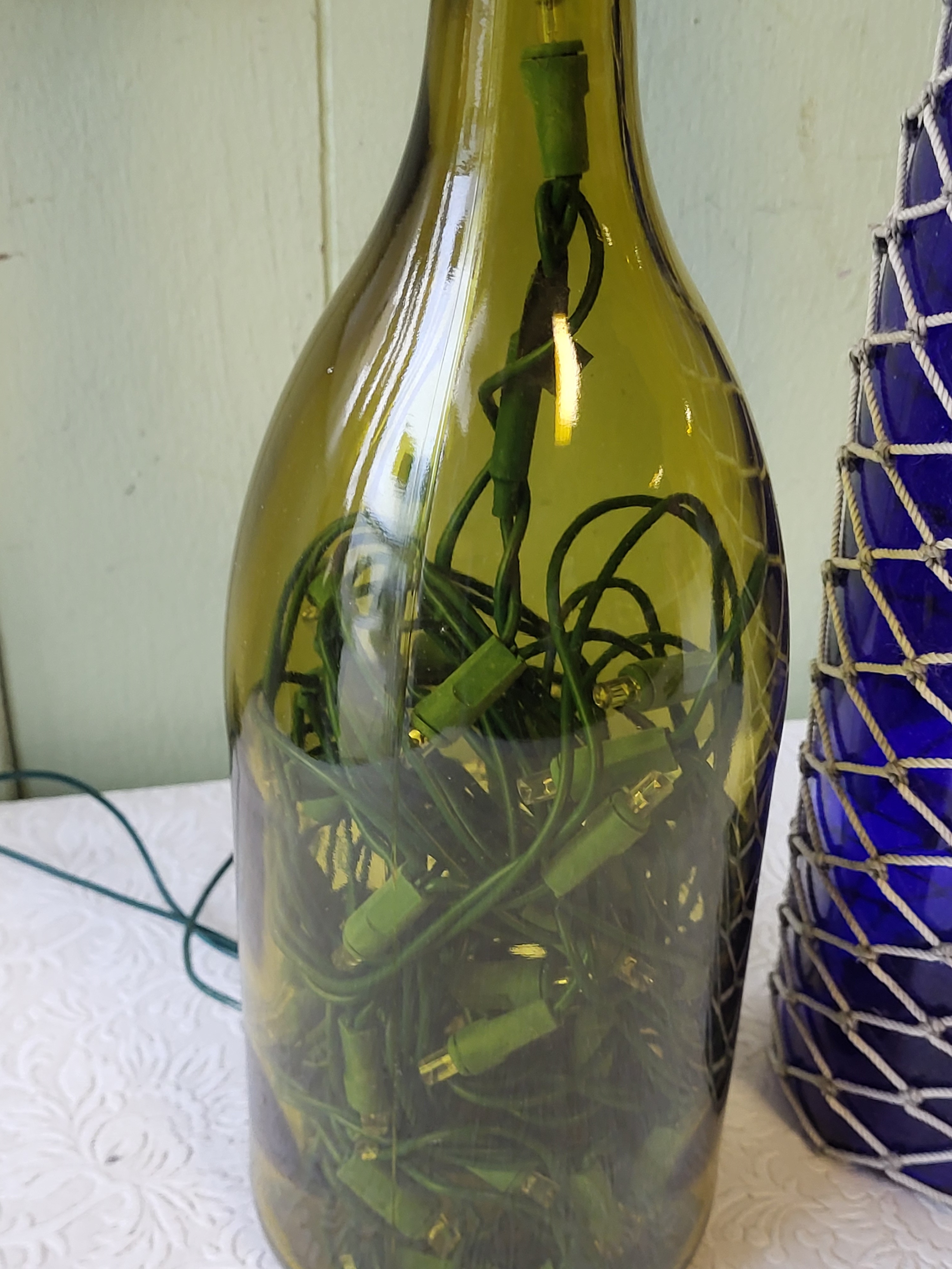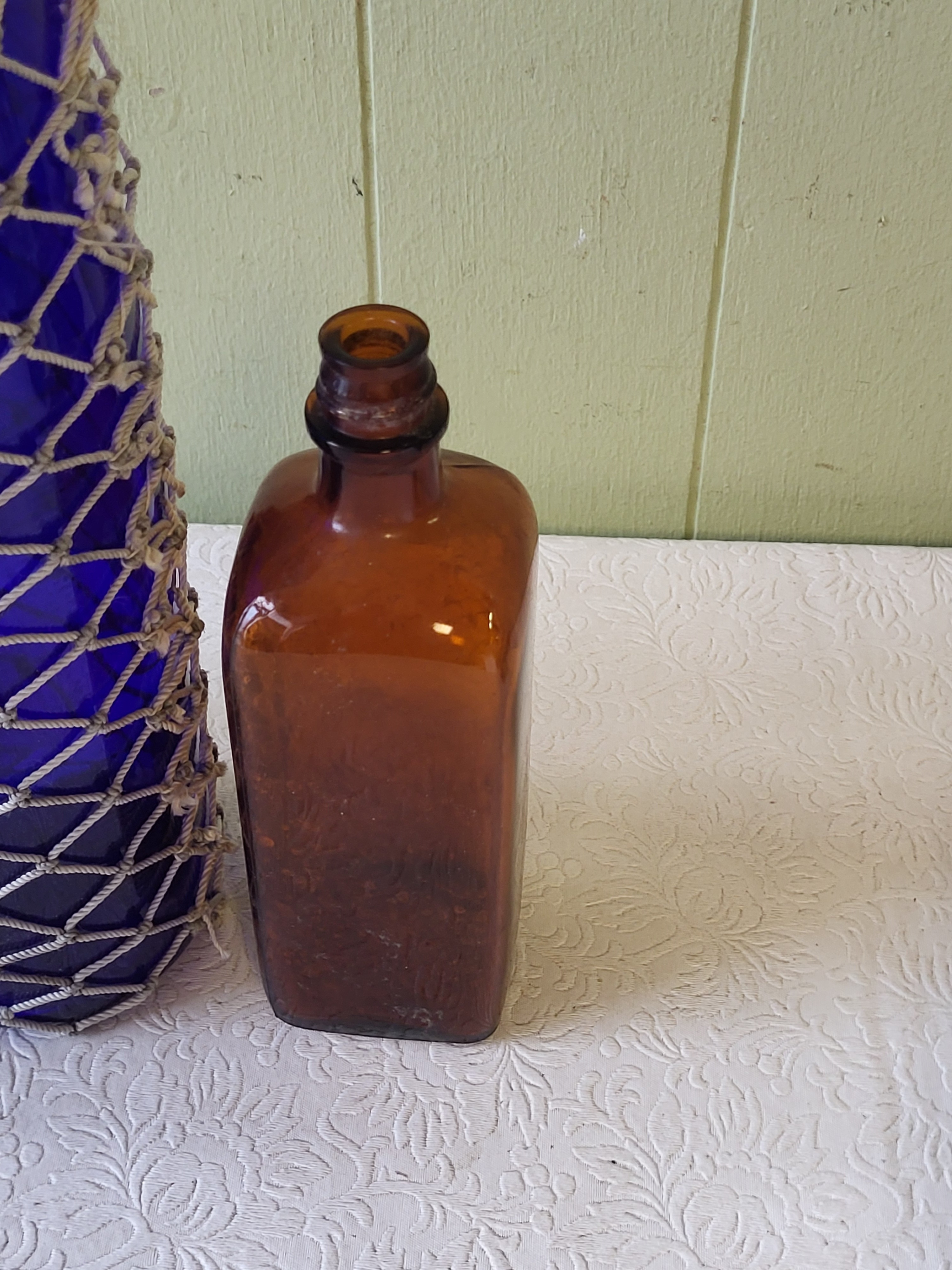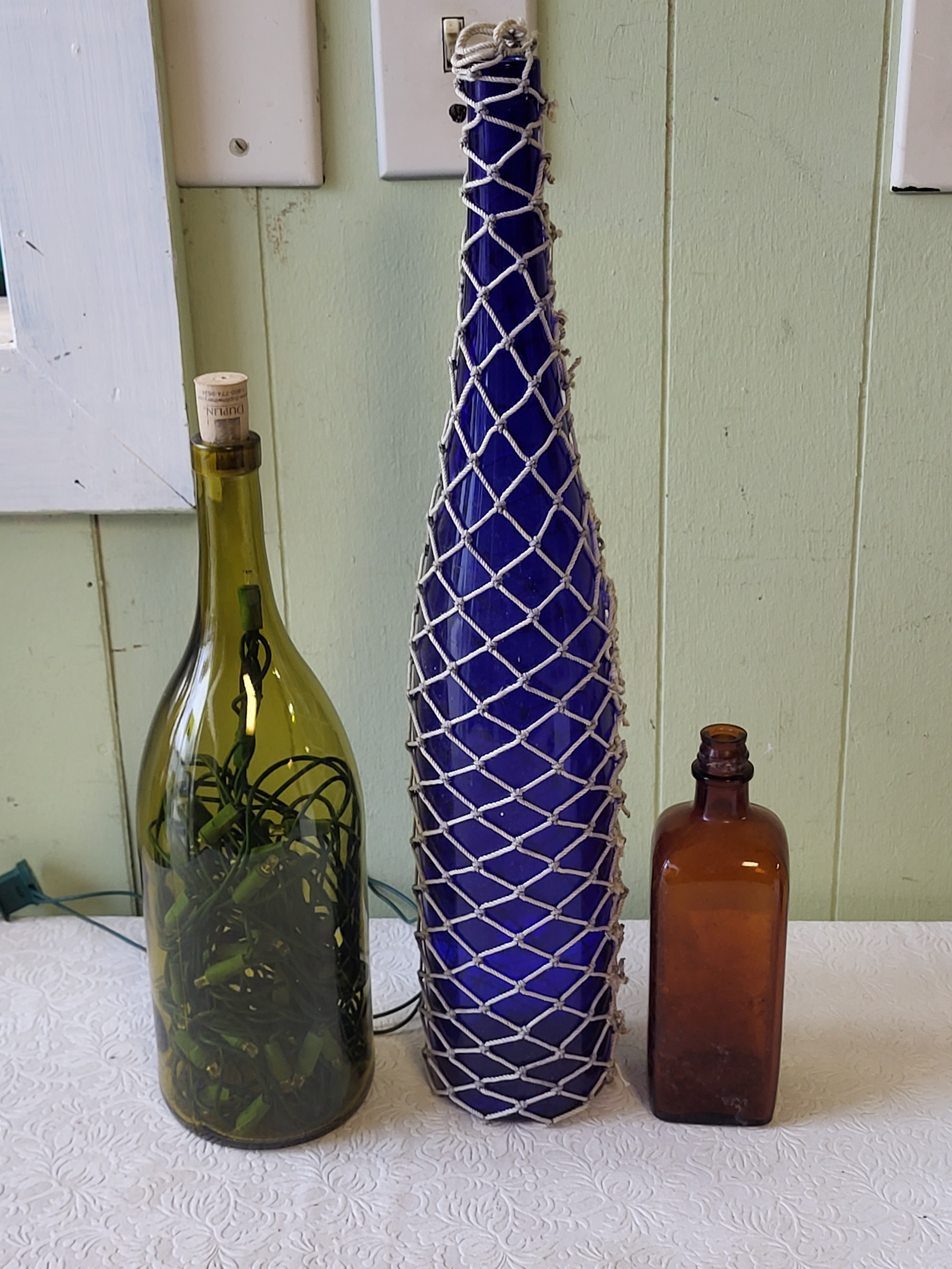 bottle lot collection cobalt, 19" old brown & ligt up one also