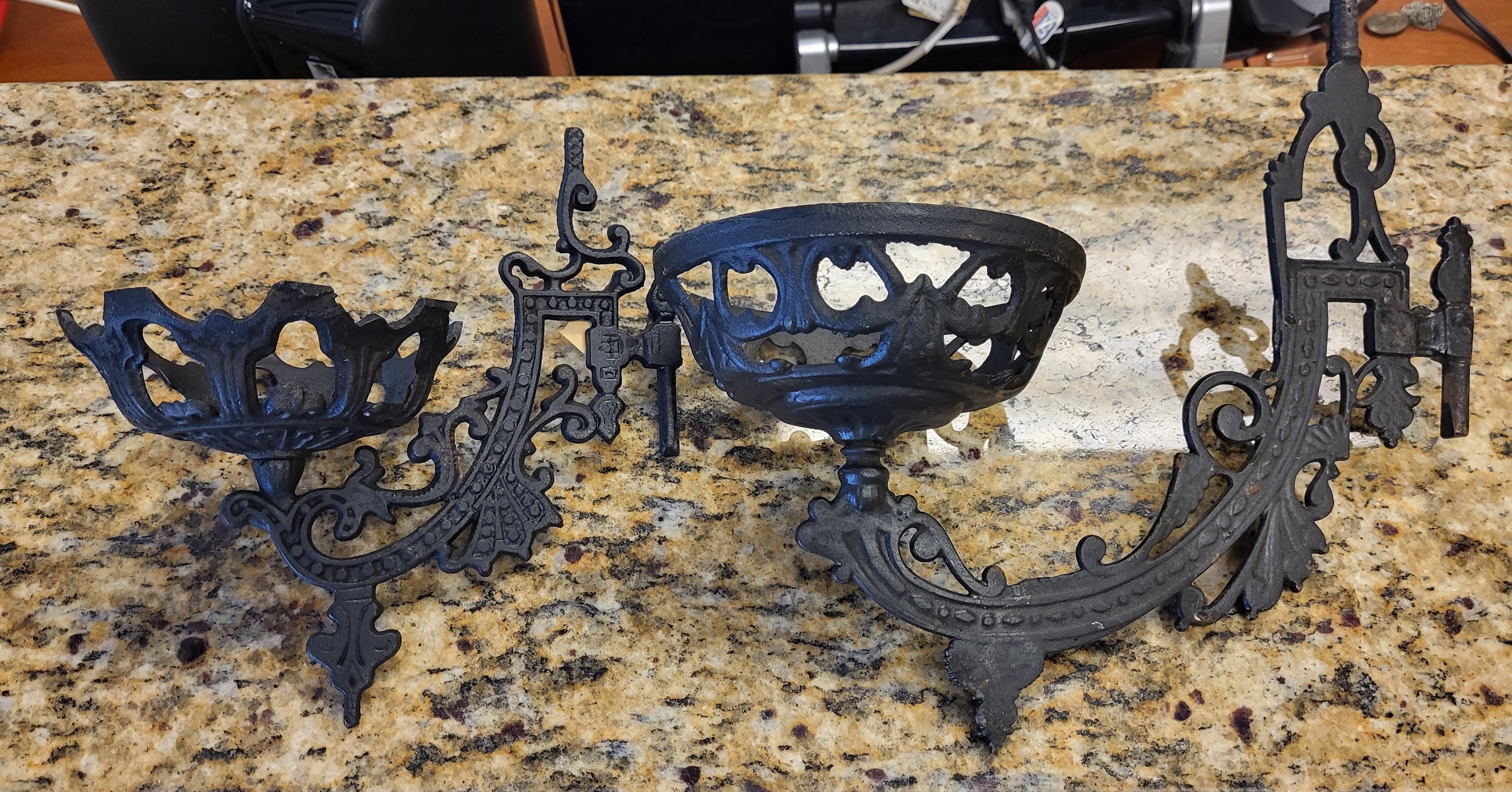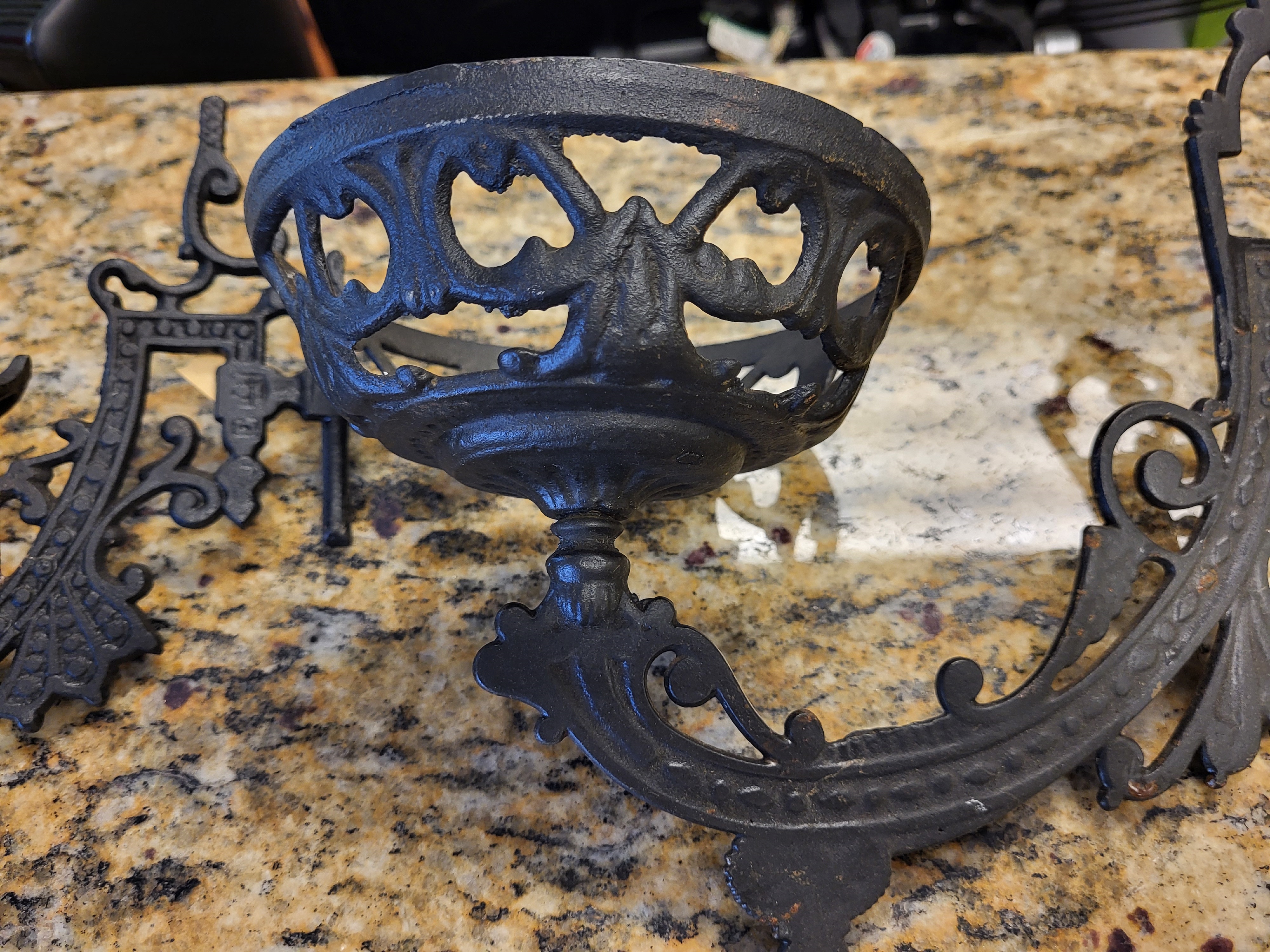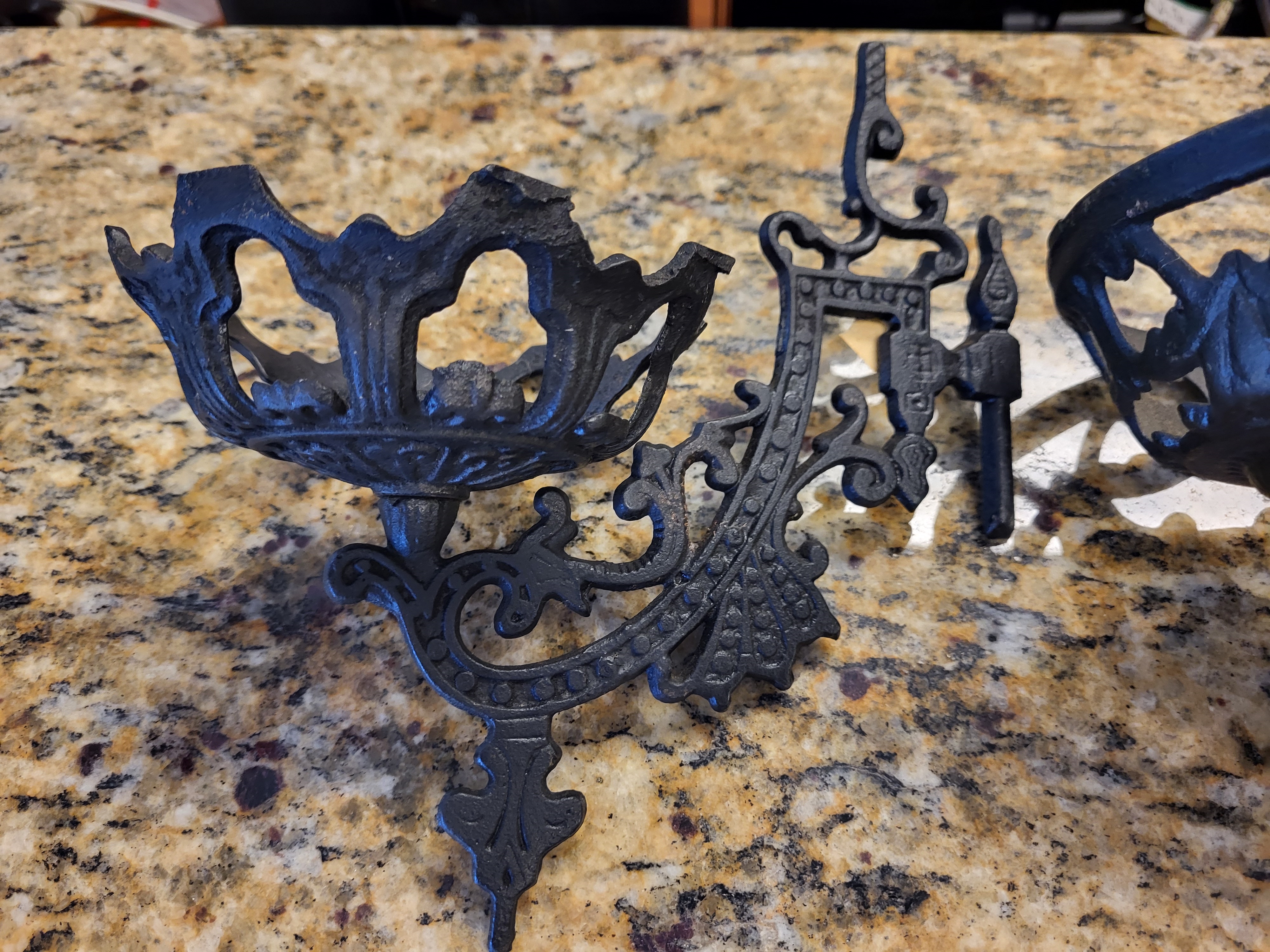antique lot of 2 Victorian ornate cast iron oil lamp holder wall sconce no mount circa 1880