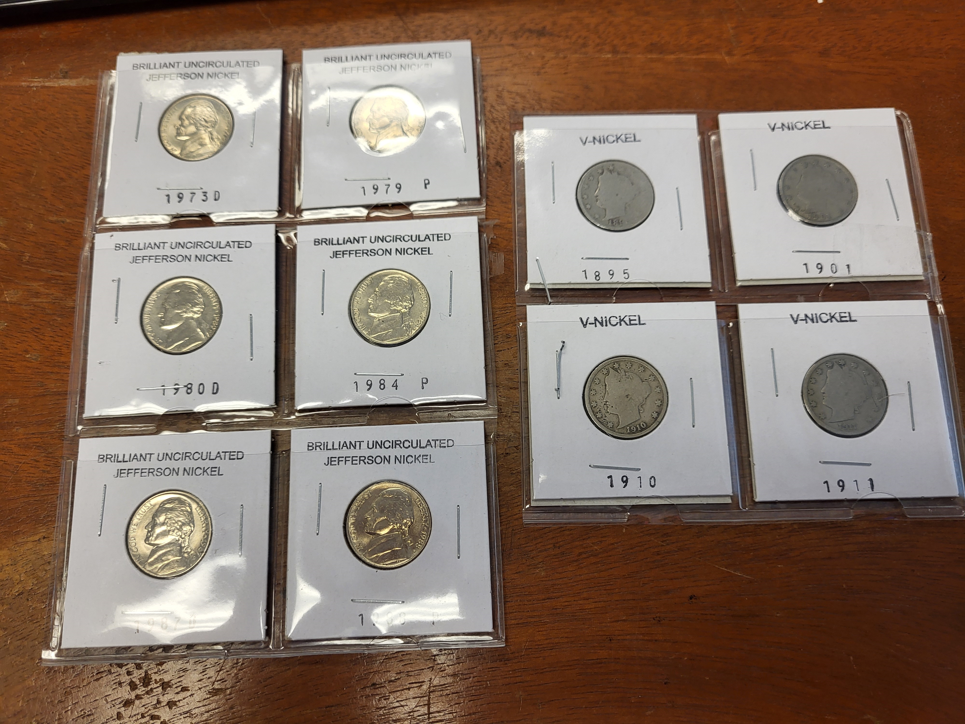brilliant uncir jefferson nickels & V nickels lot of 10