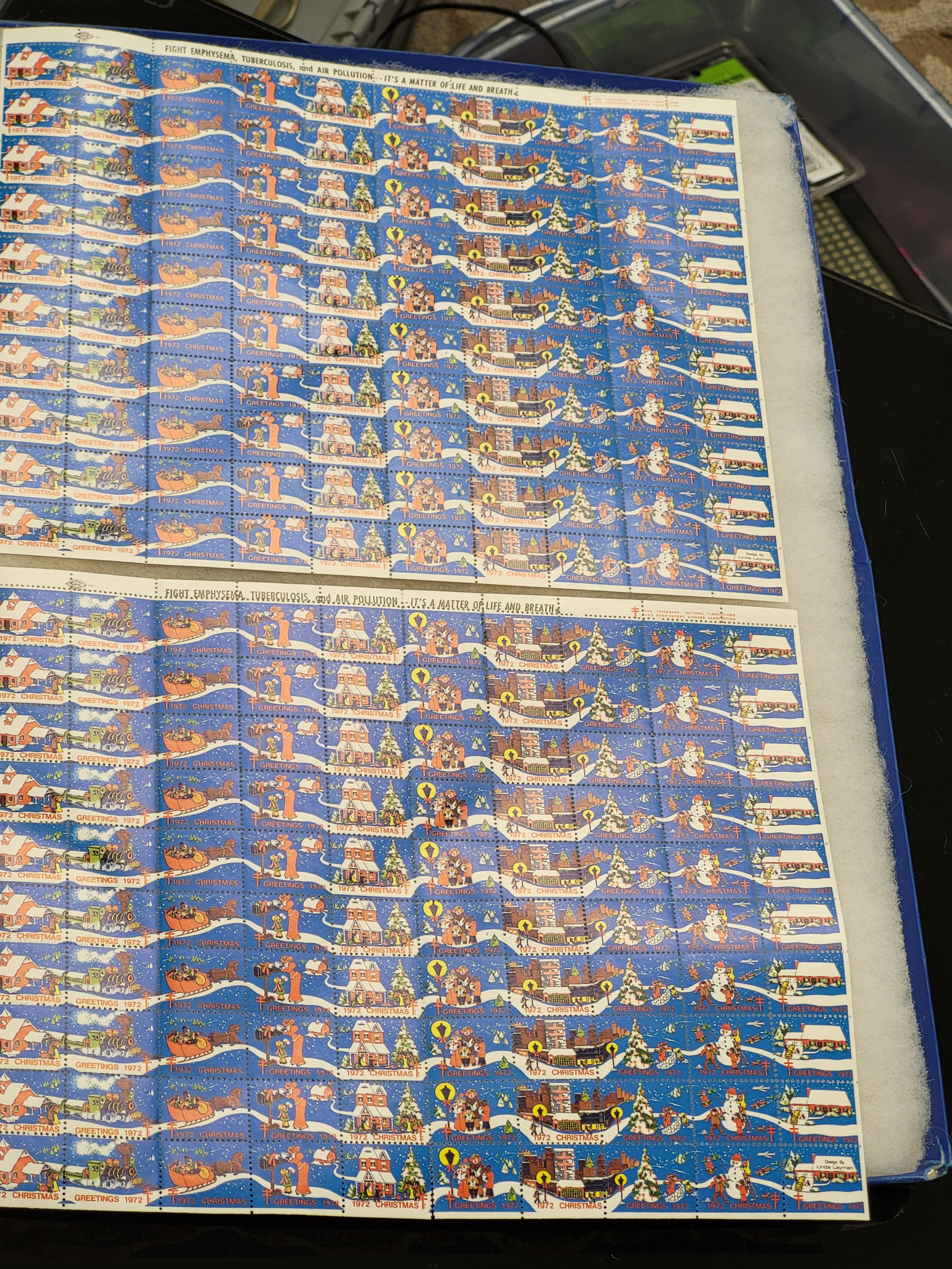 2 full sheets of 100 mint original glue sheets of us stamps 1972 Christmas fight emphysema from estate collection these are nice! seepics