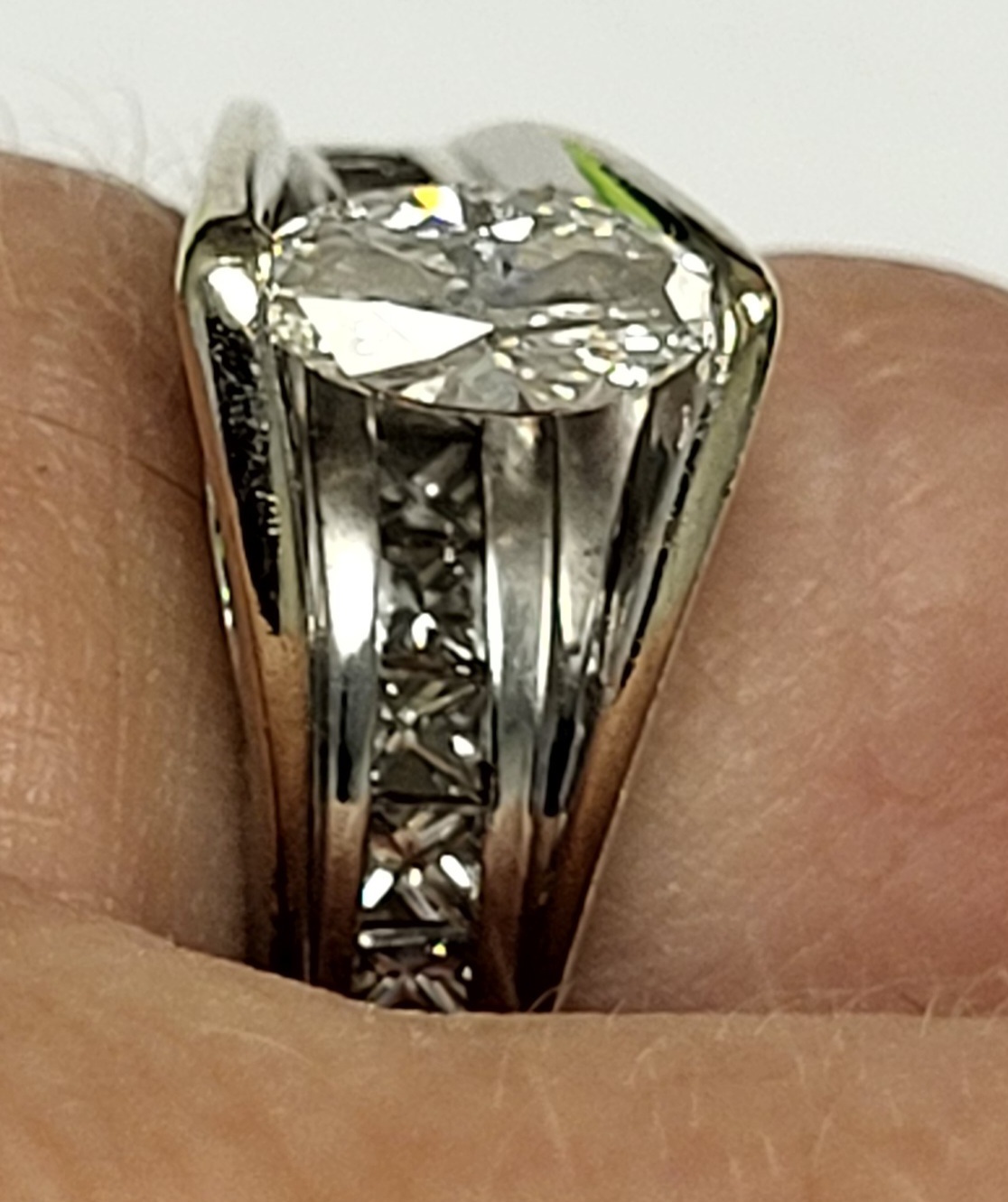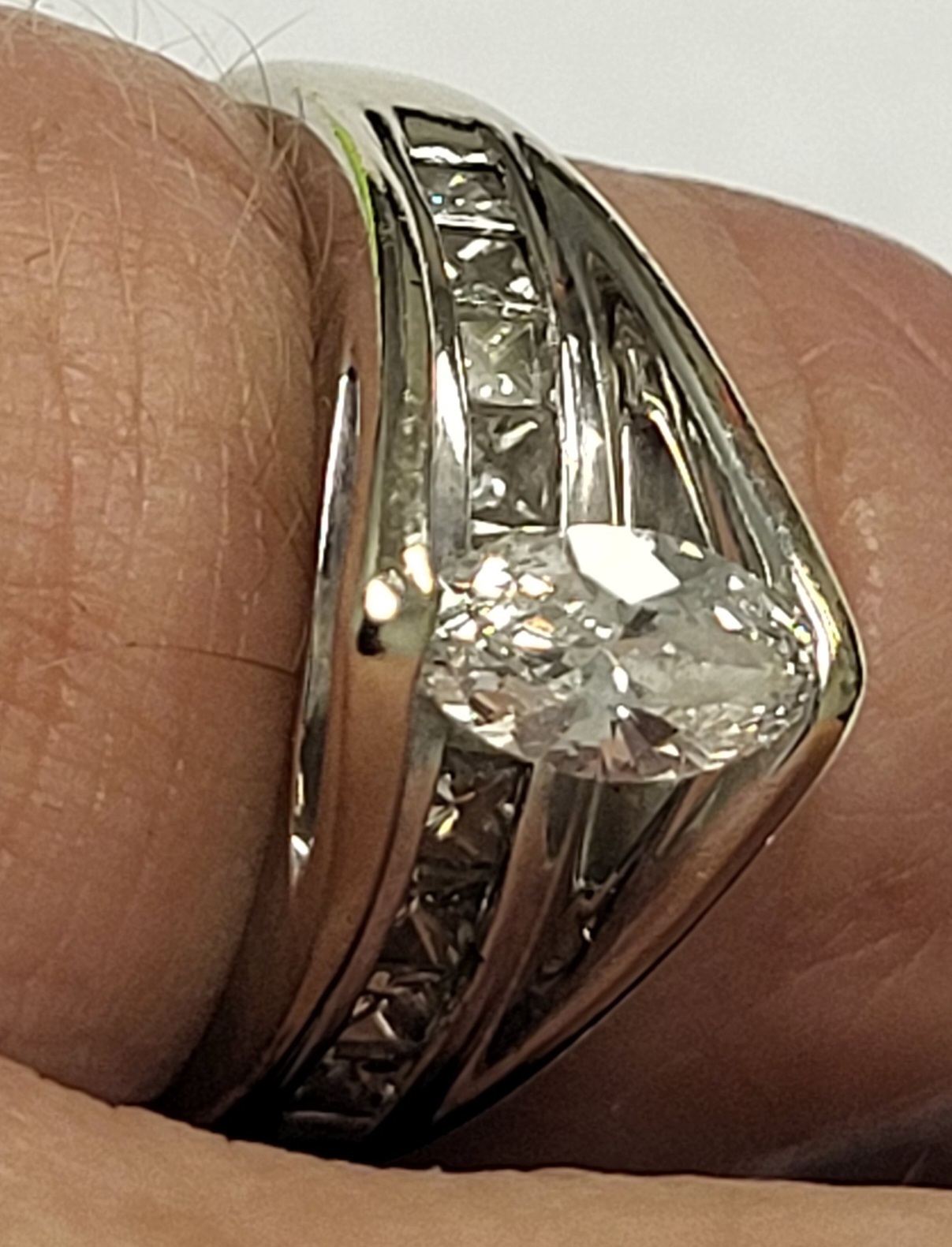 center marquis cut diamond appx 1/2 carat and lots of channel set diamonds by ODI Jewelers very high quality see pics