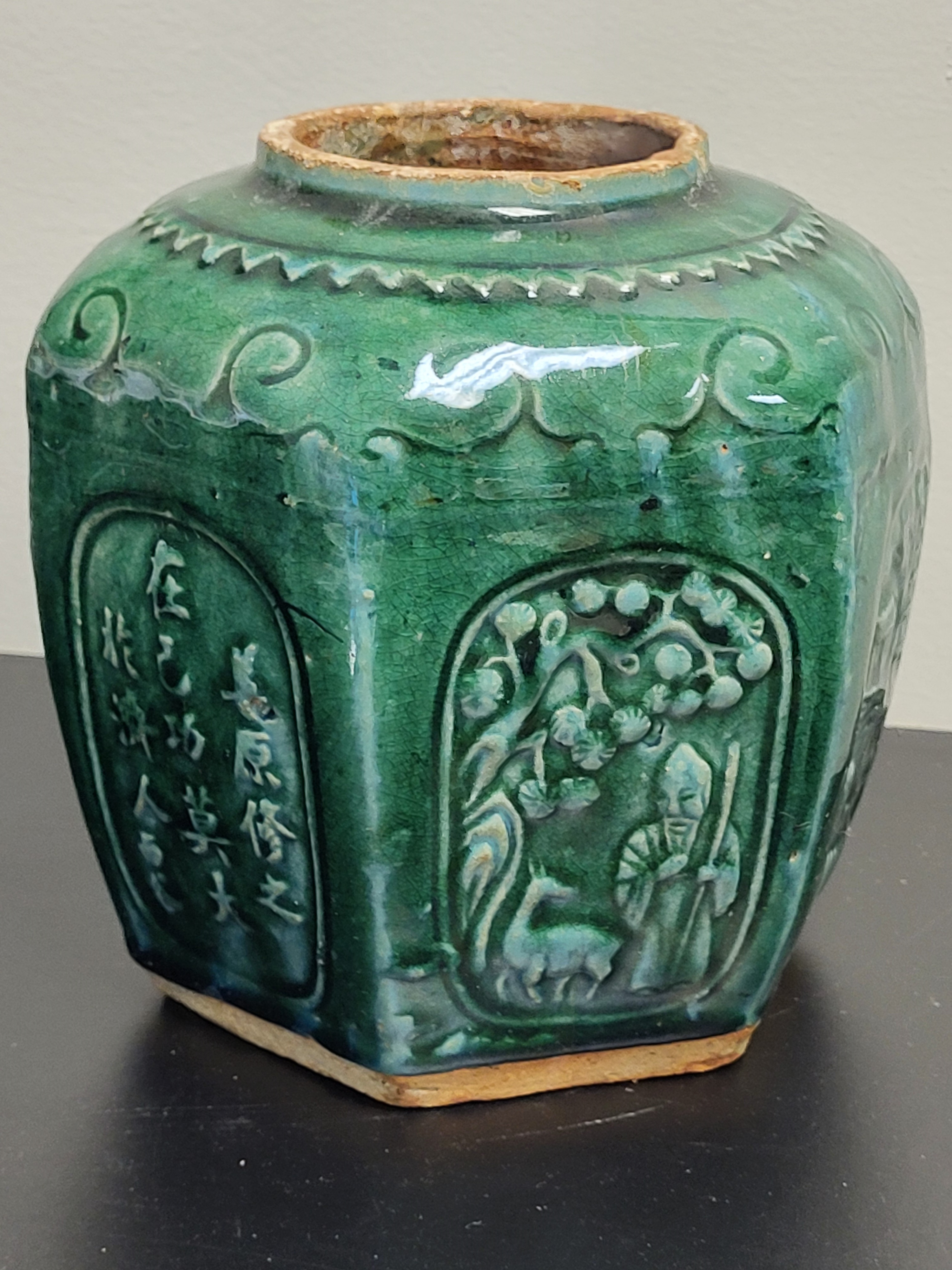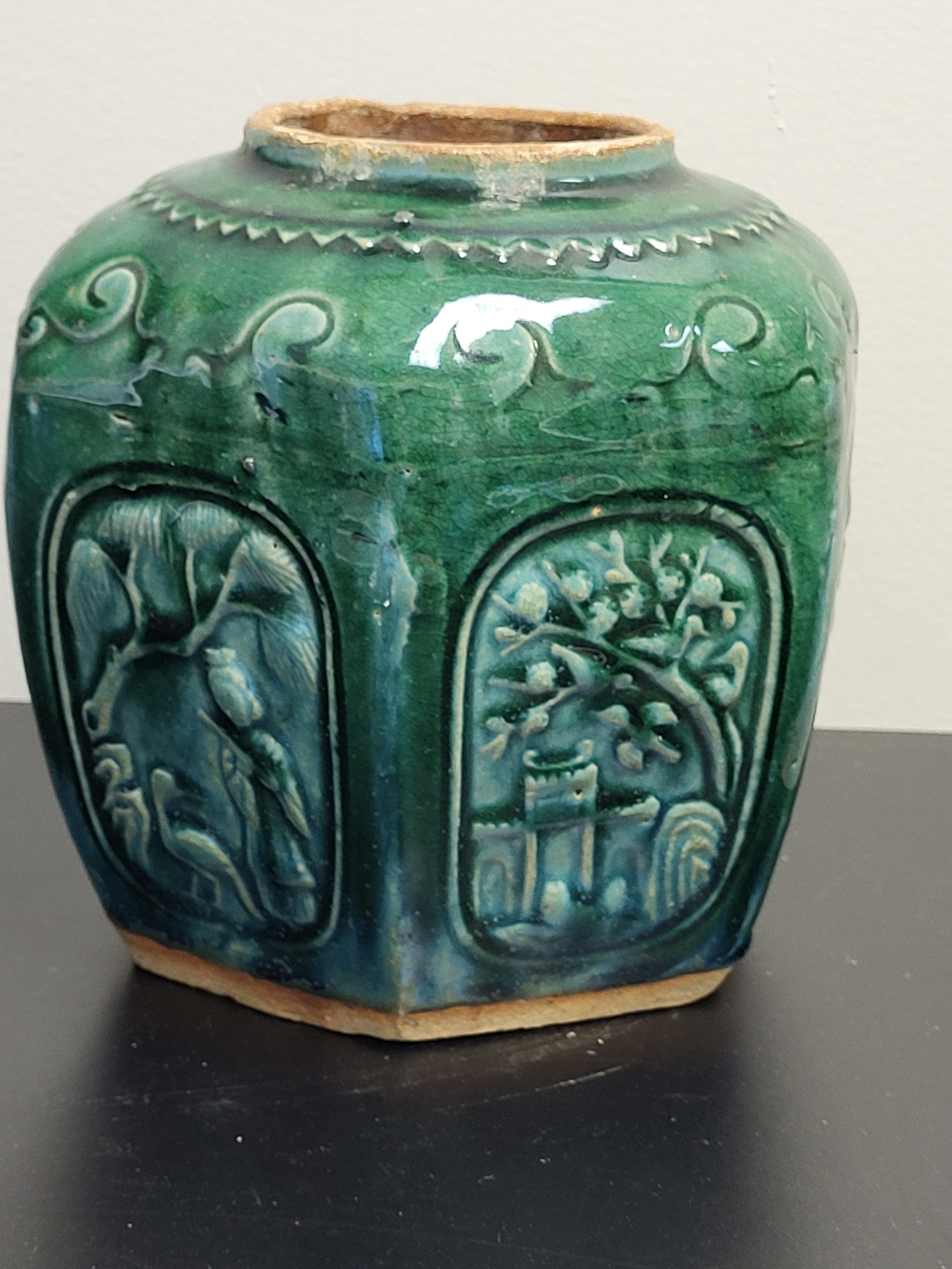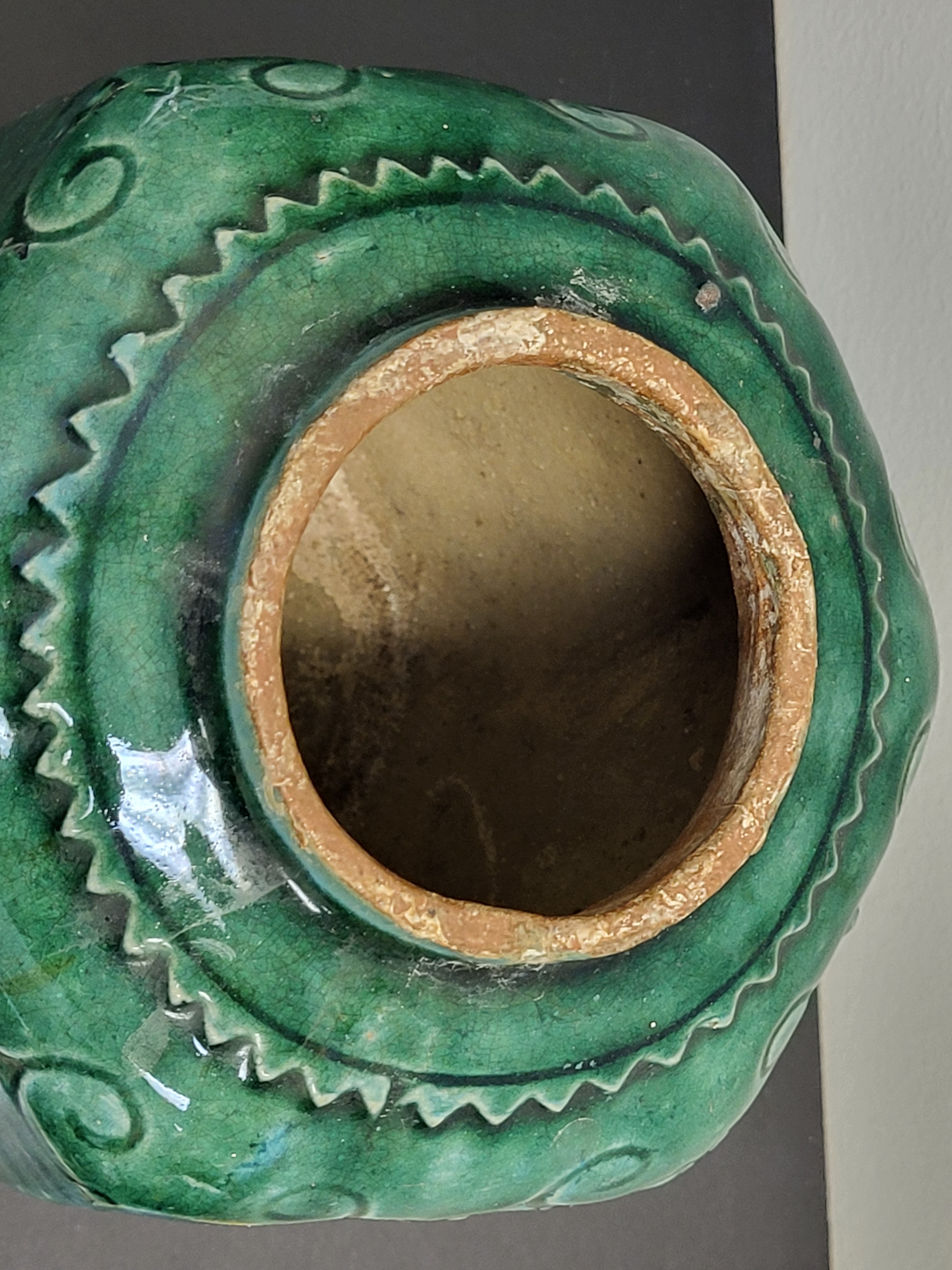 gorgeous mixed colors in the glaze in this one artist stamp on bottom 6 1/4″ tall x 6″ wide see pics don’t miss this one