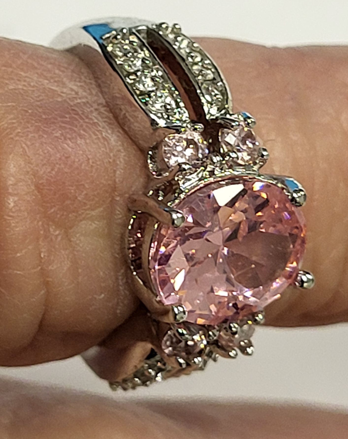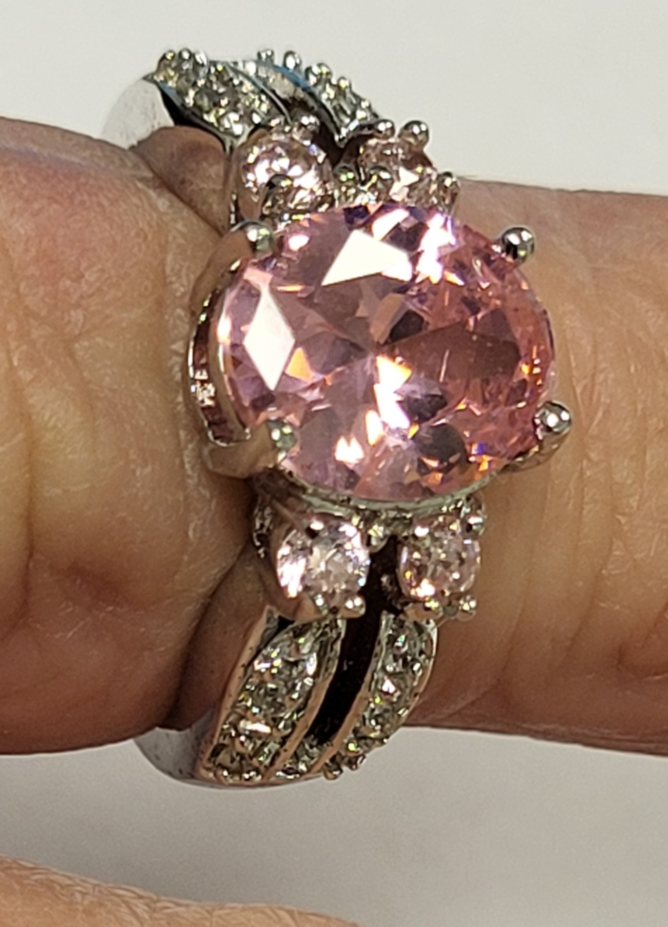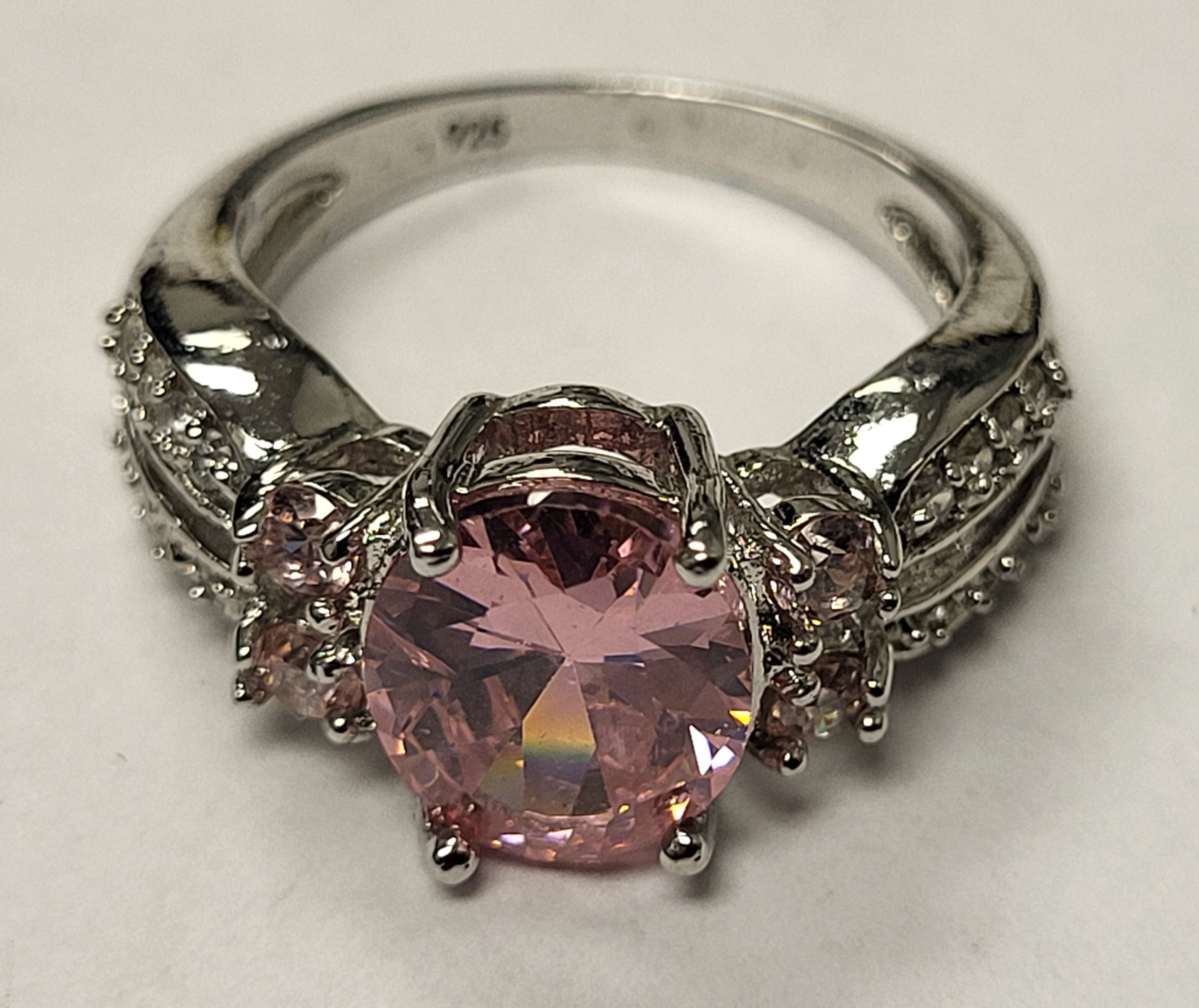 sterling silver w/pink sapphire & white sapphires ring sz 6